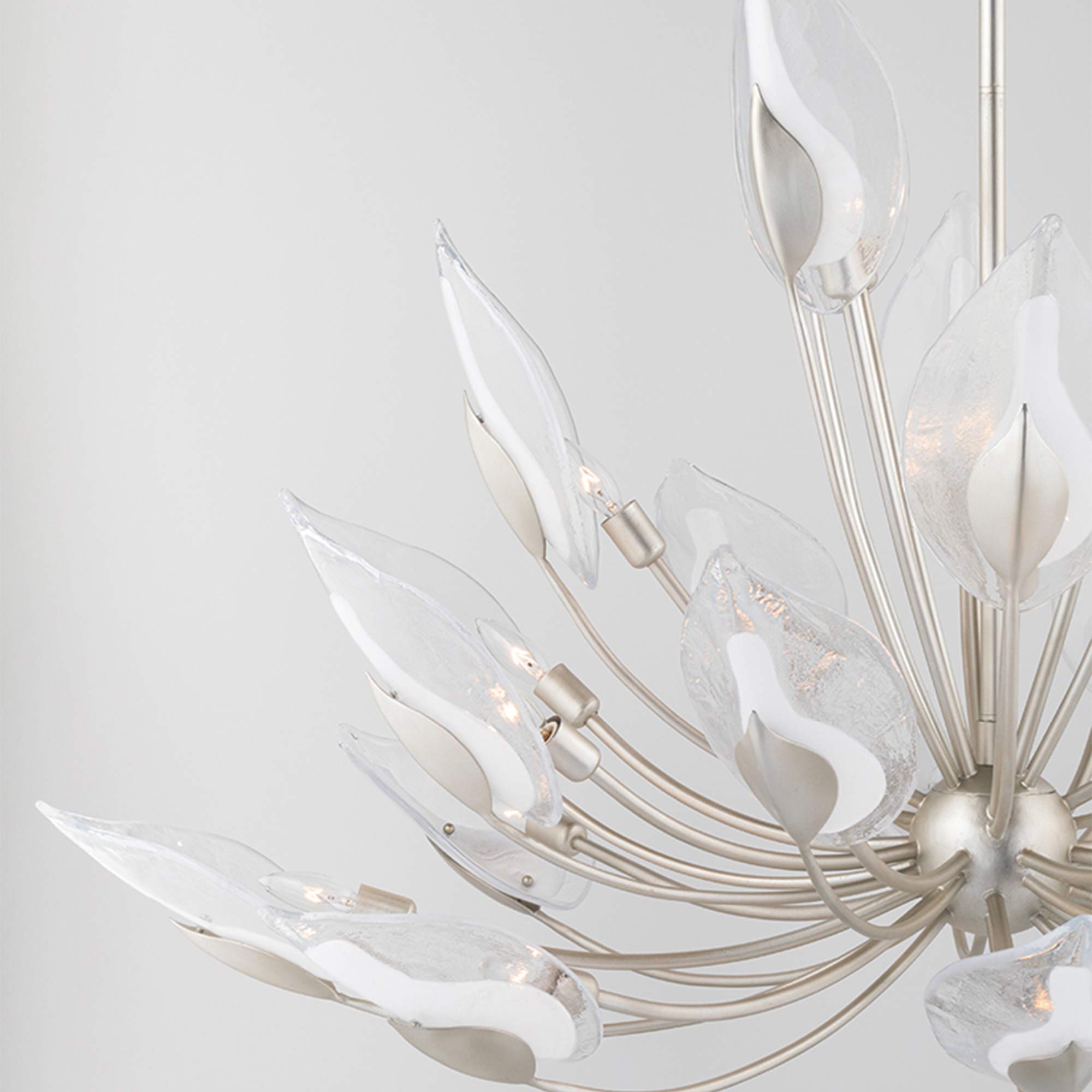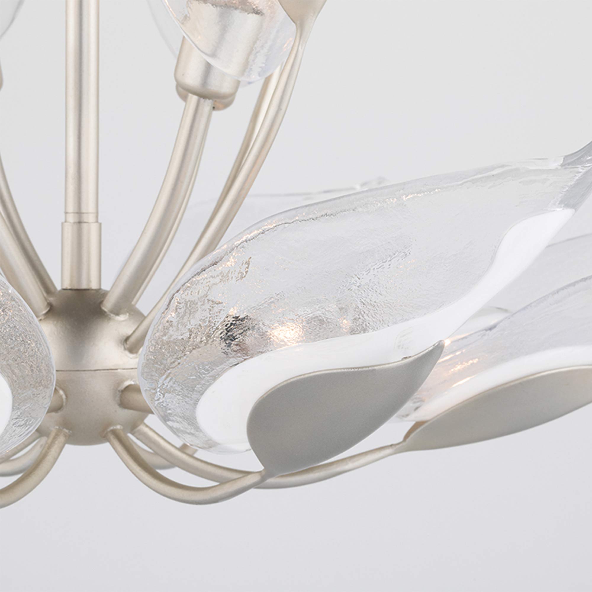 Artisanal Piastra glass is hand-crafted to bring exceptional elegance and sparkling sophistication to the Blossom Chandelier from Hudson Valley Lighting.