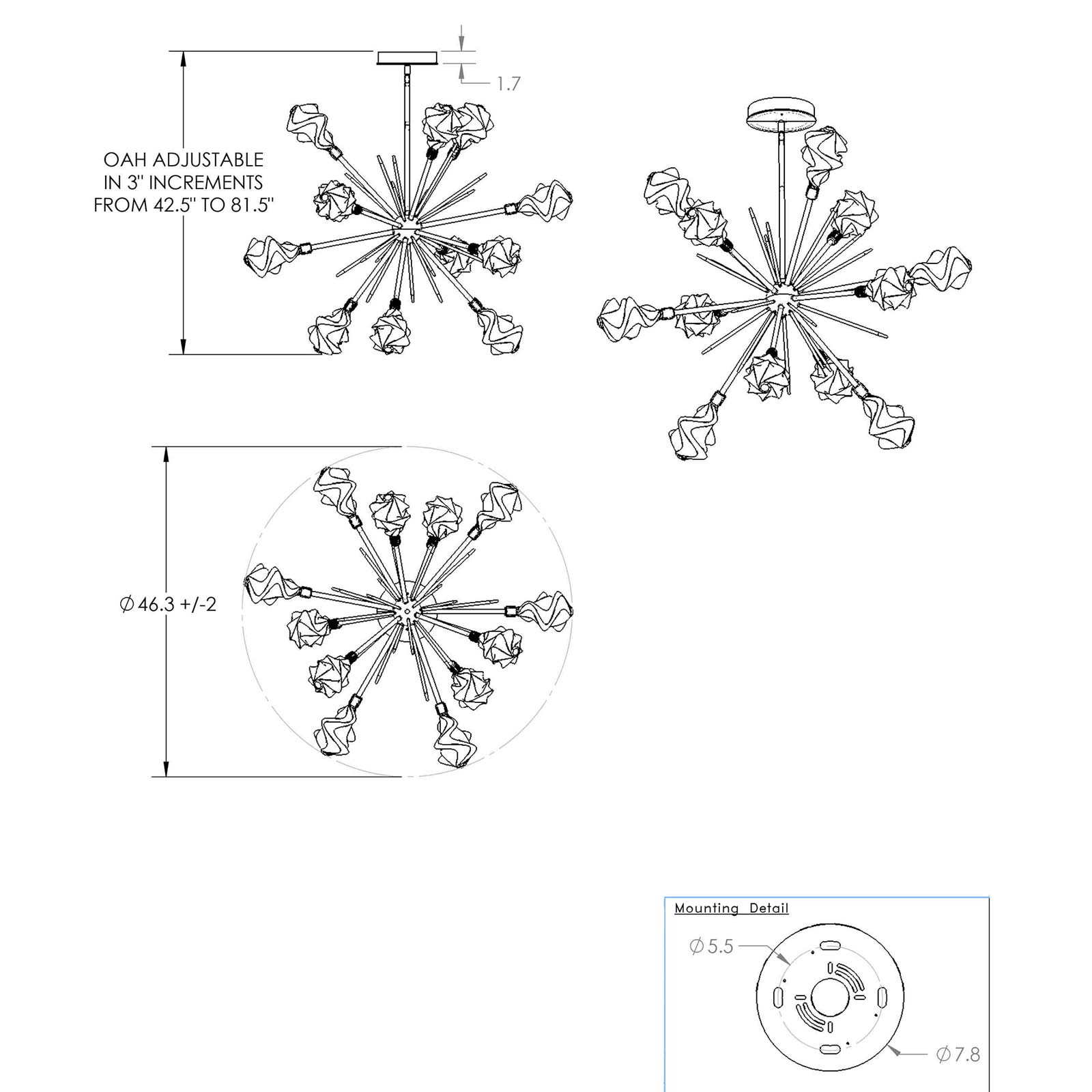 With a dynamic energy and space-inspired design, the Blossom Starburst LED Chandelier from Hammerton Studio inspires through a mix of motifs. This exquisite fixture offers an abstract silhouette of clear hand-blown glass shades and a Sputnik-style metal frame that delivers a delightful attitude to a modern space.