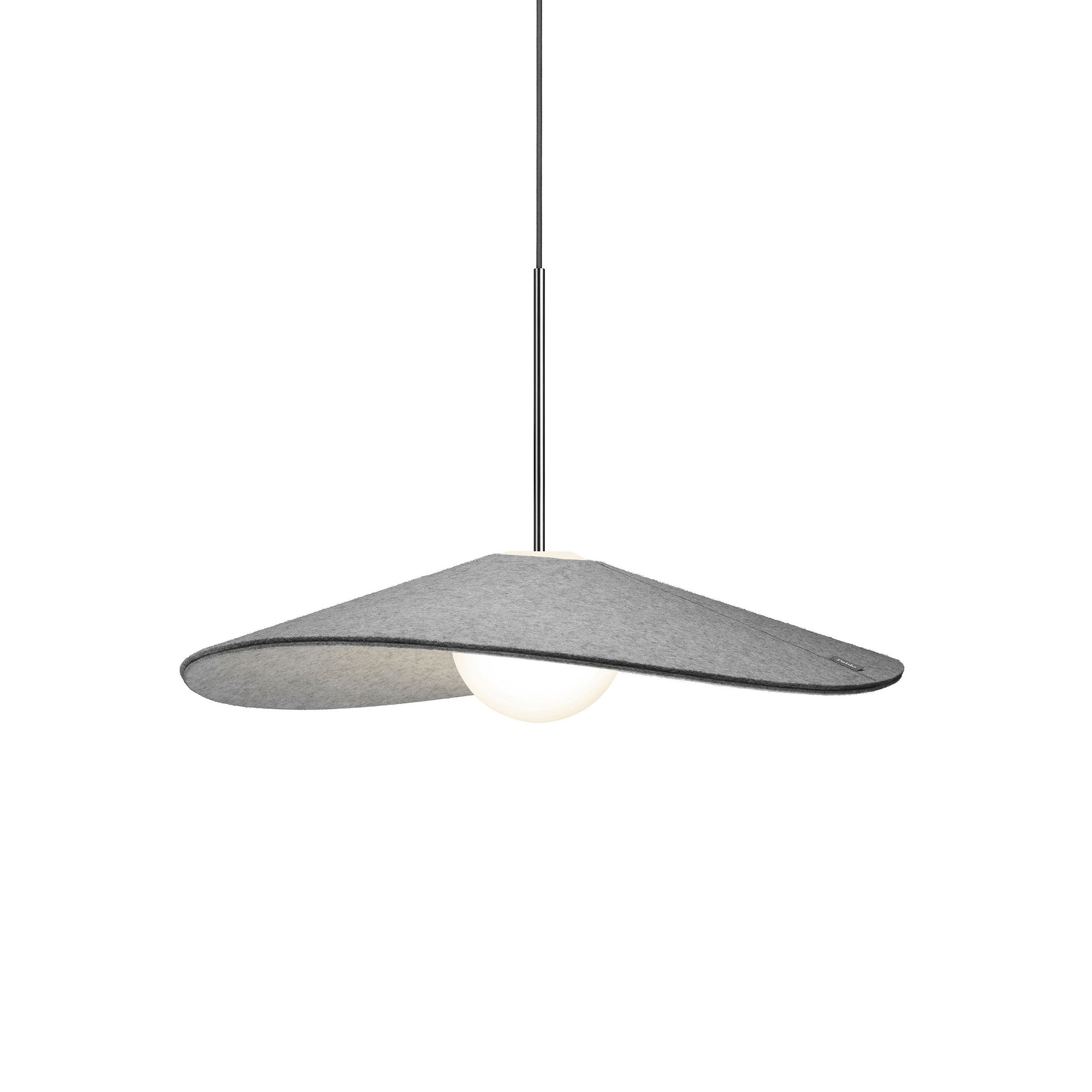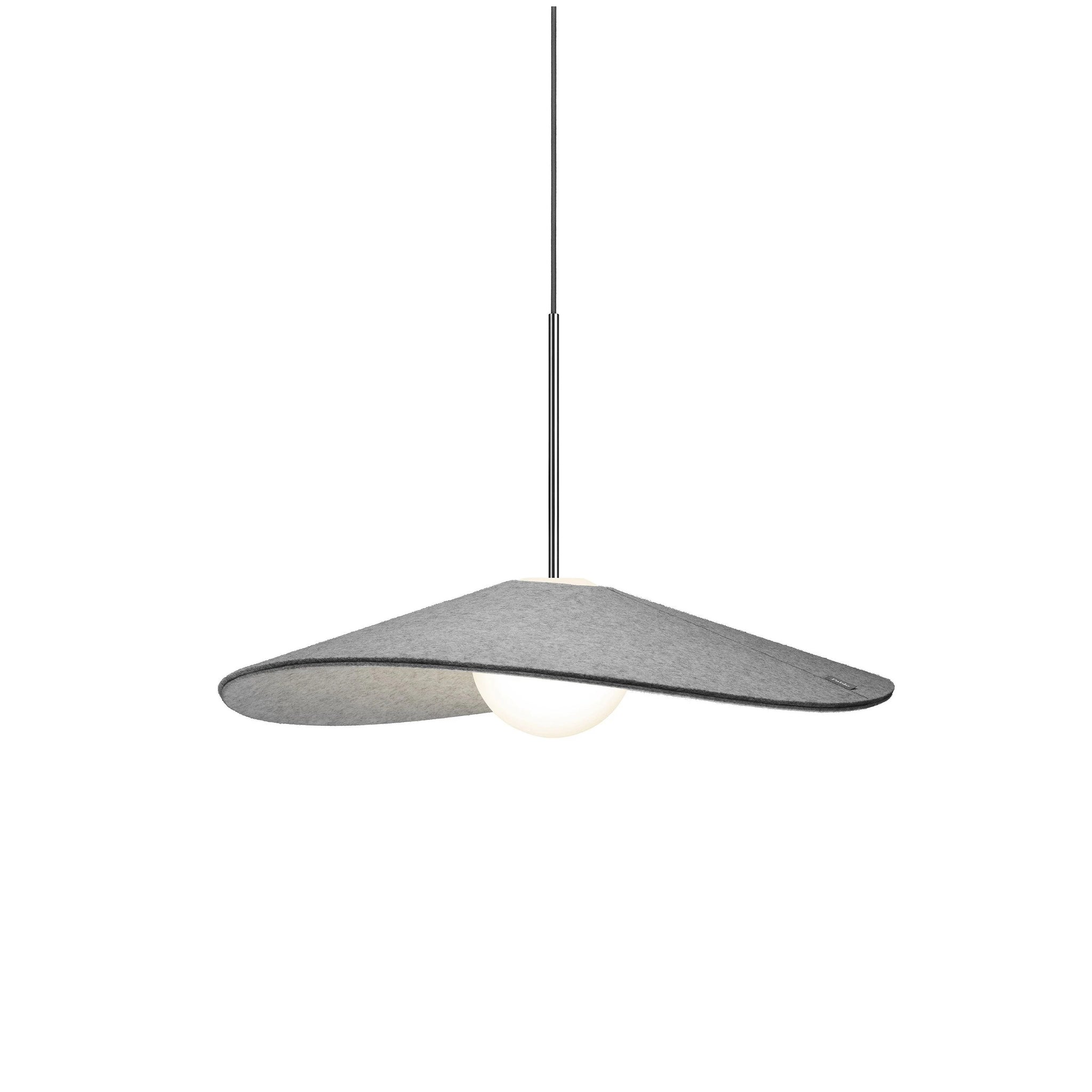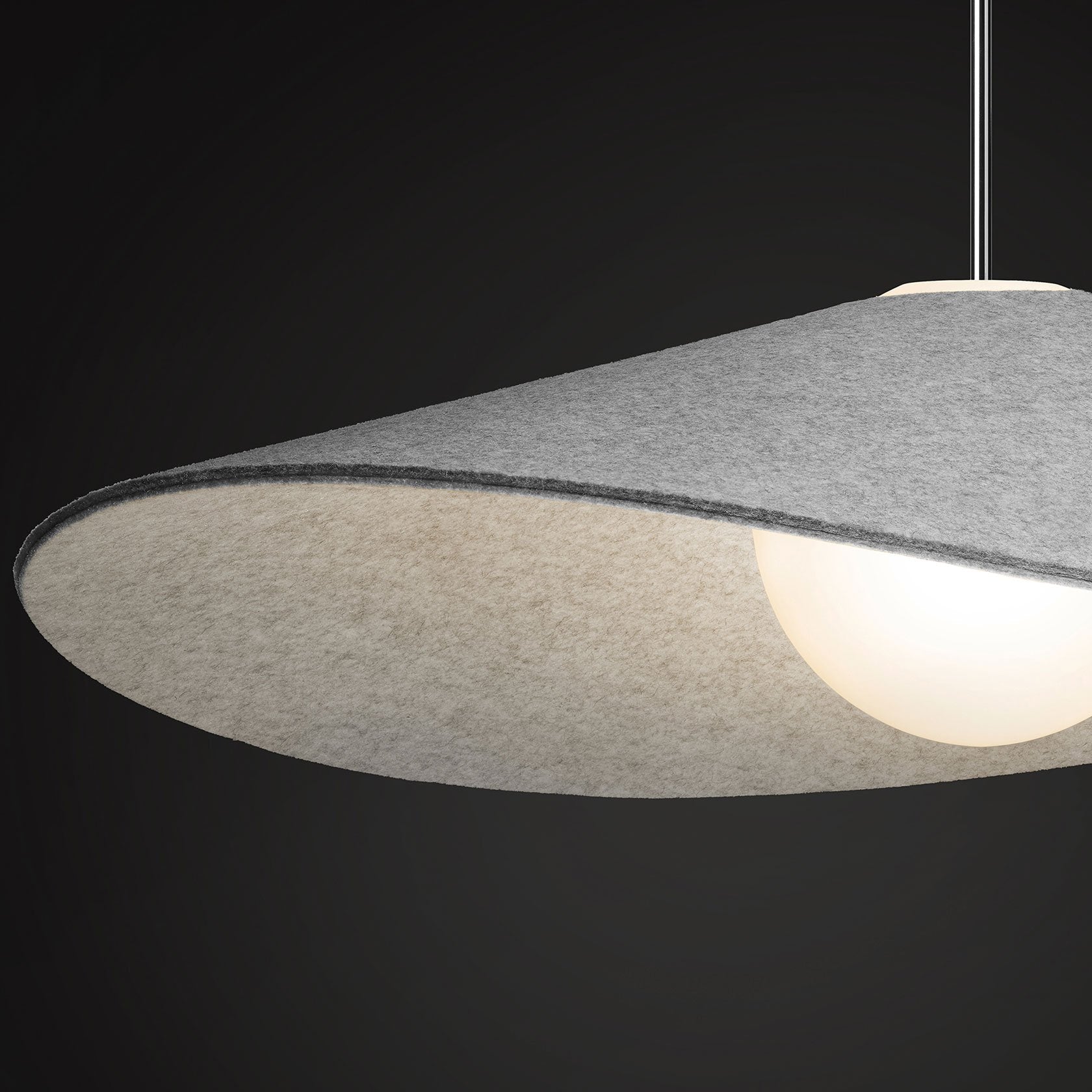 Bola LED Felt Pendant Light from Pablo borrows from a charming Art Deco inspiration to deliver a whimsical design. LED technology offers warm and energy-saving lighting in a fixture with a gallery-influenced design. A contoured felt shade earns apt attention and creates a fresh, stylish aesthetic in a dining or living space.