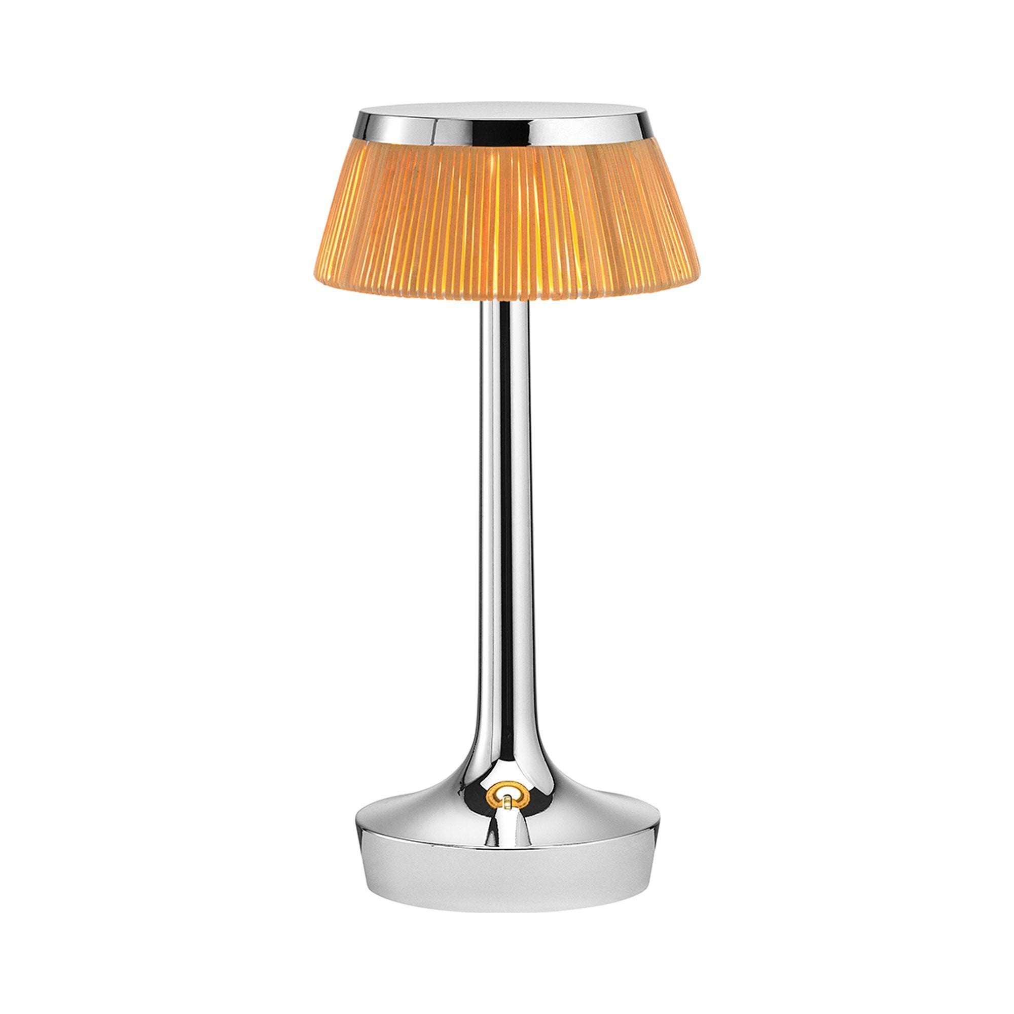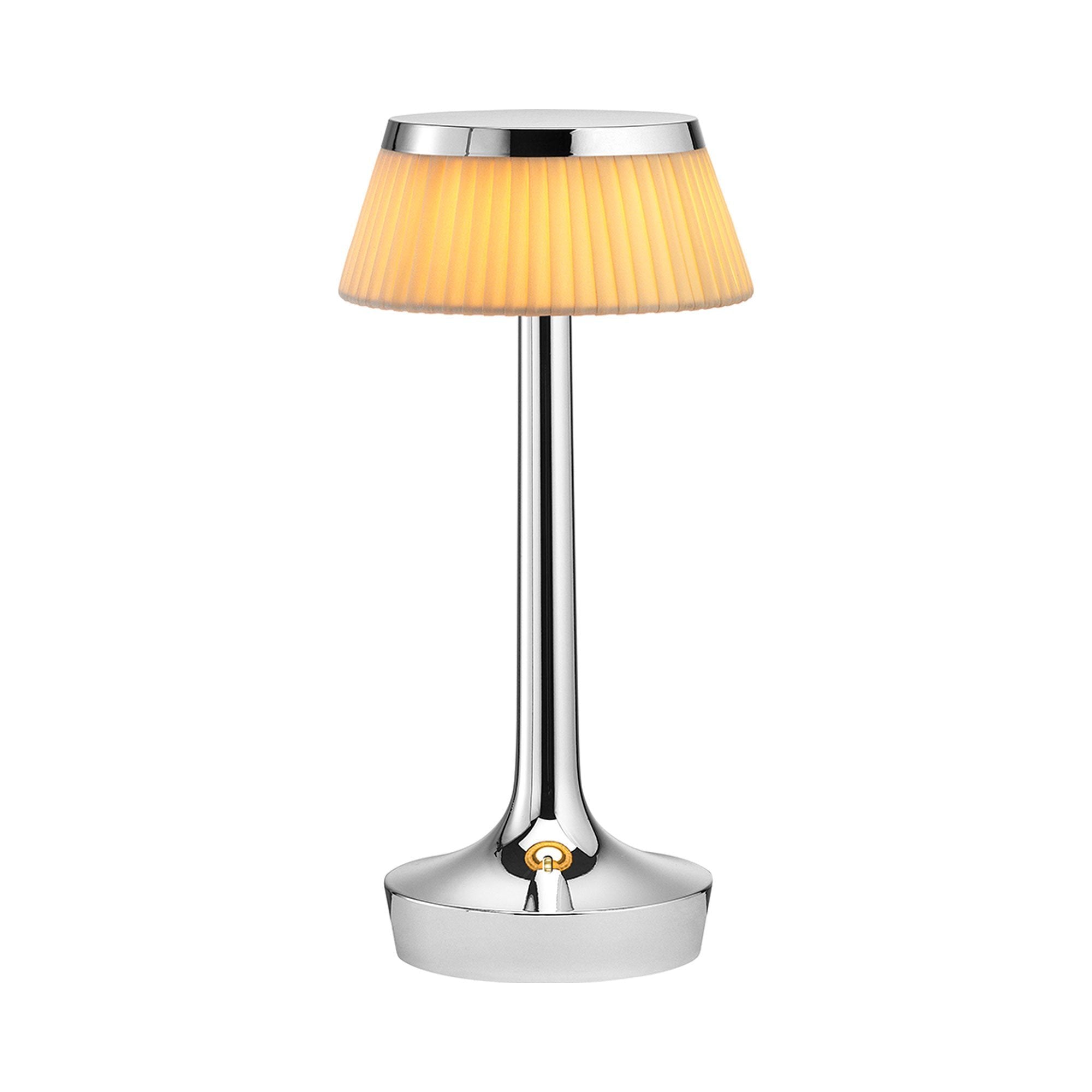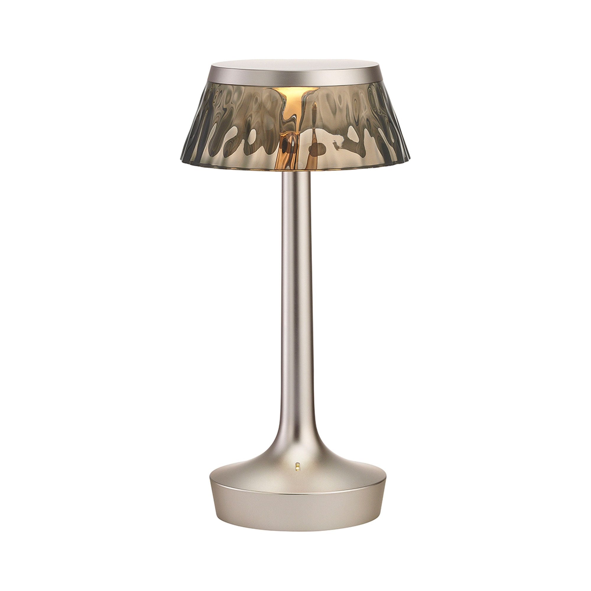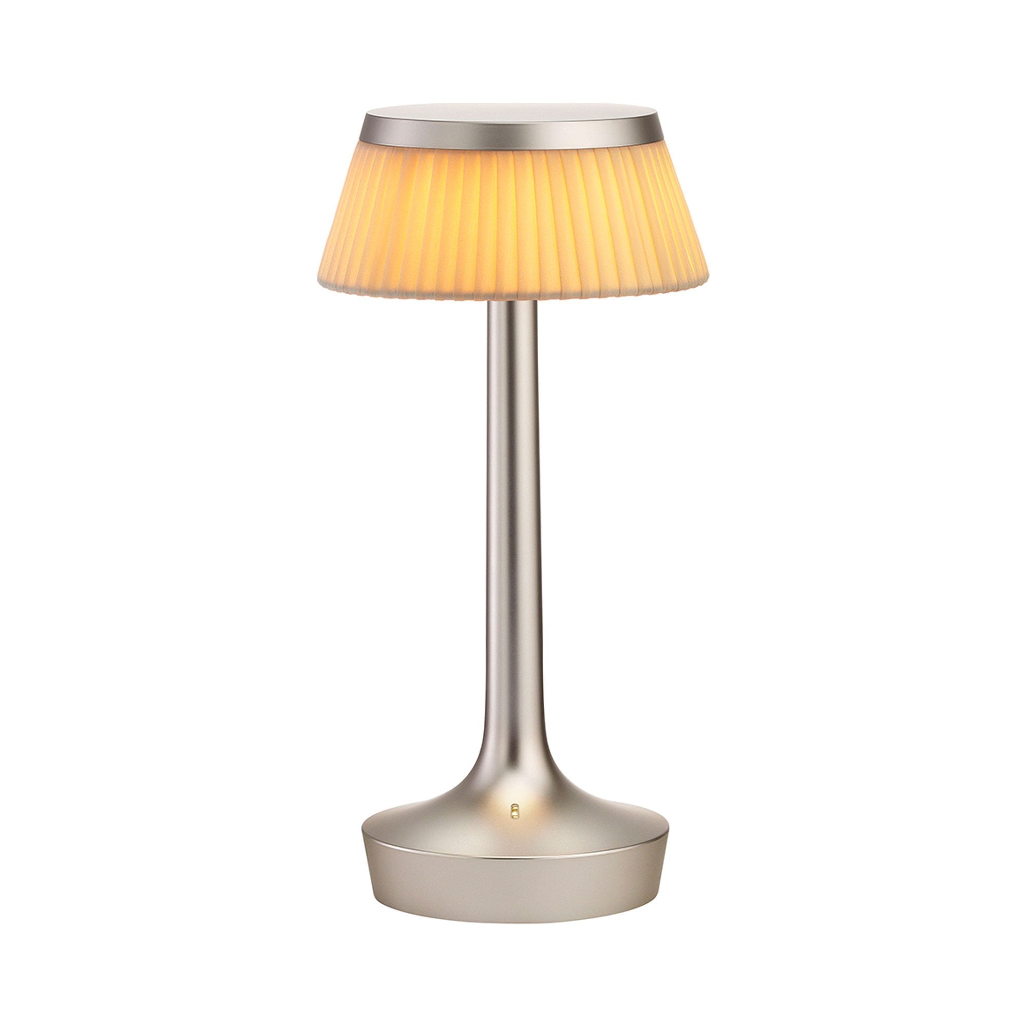 Blending elegant texturing with a brilliant, polished shine, the Bon Jour Unplugged Wireless LED Table Lamp from FLOS elegantly emboldens the modern home interior.