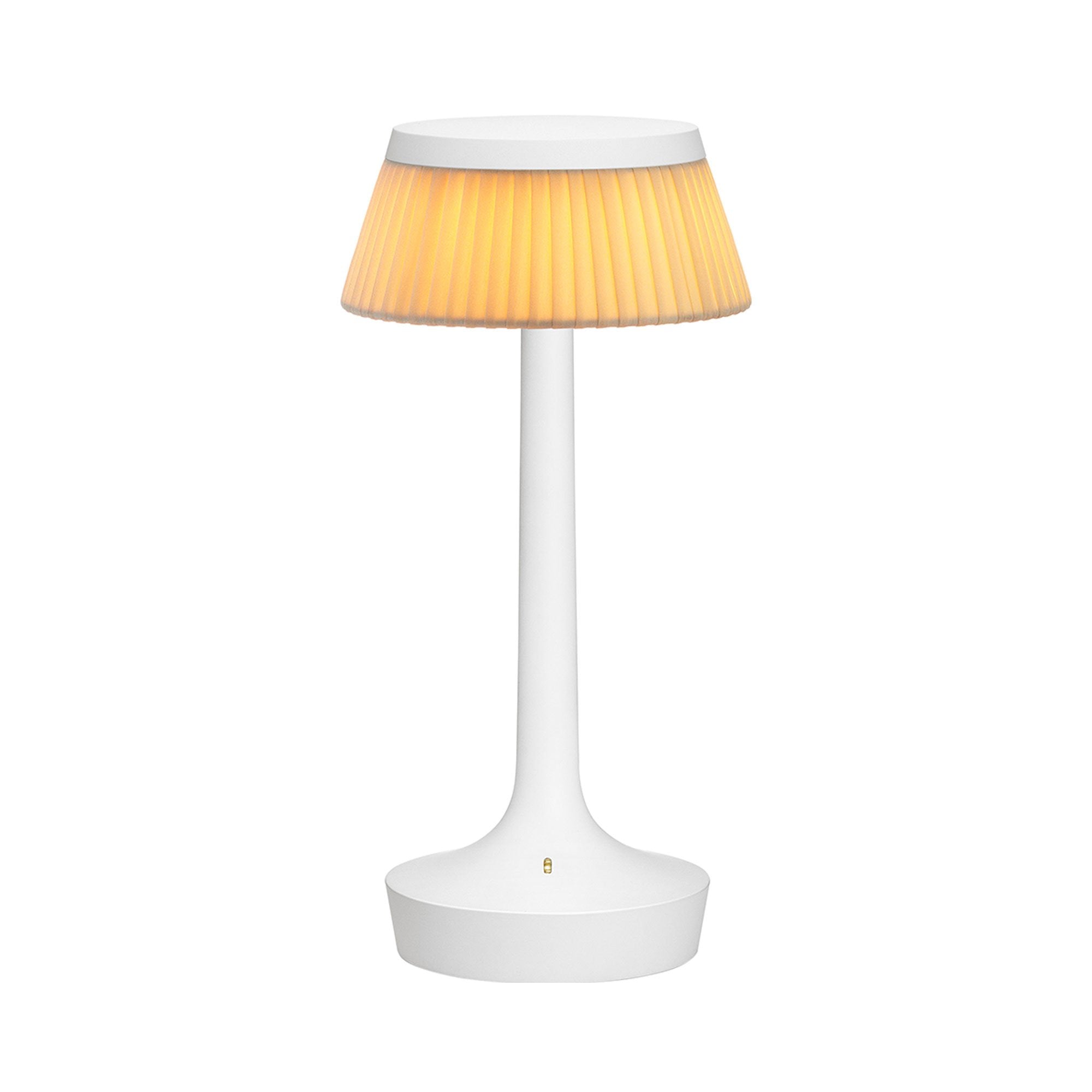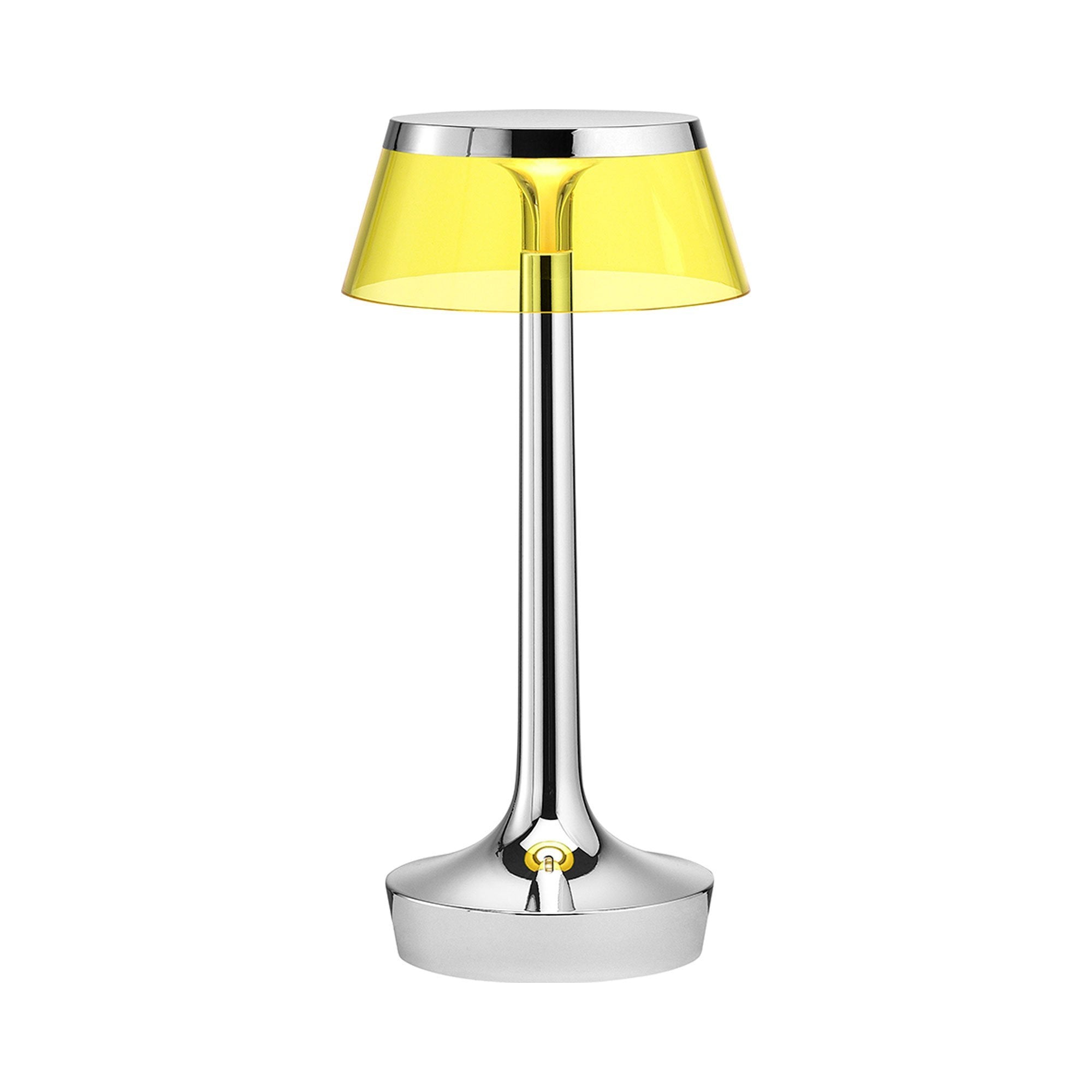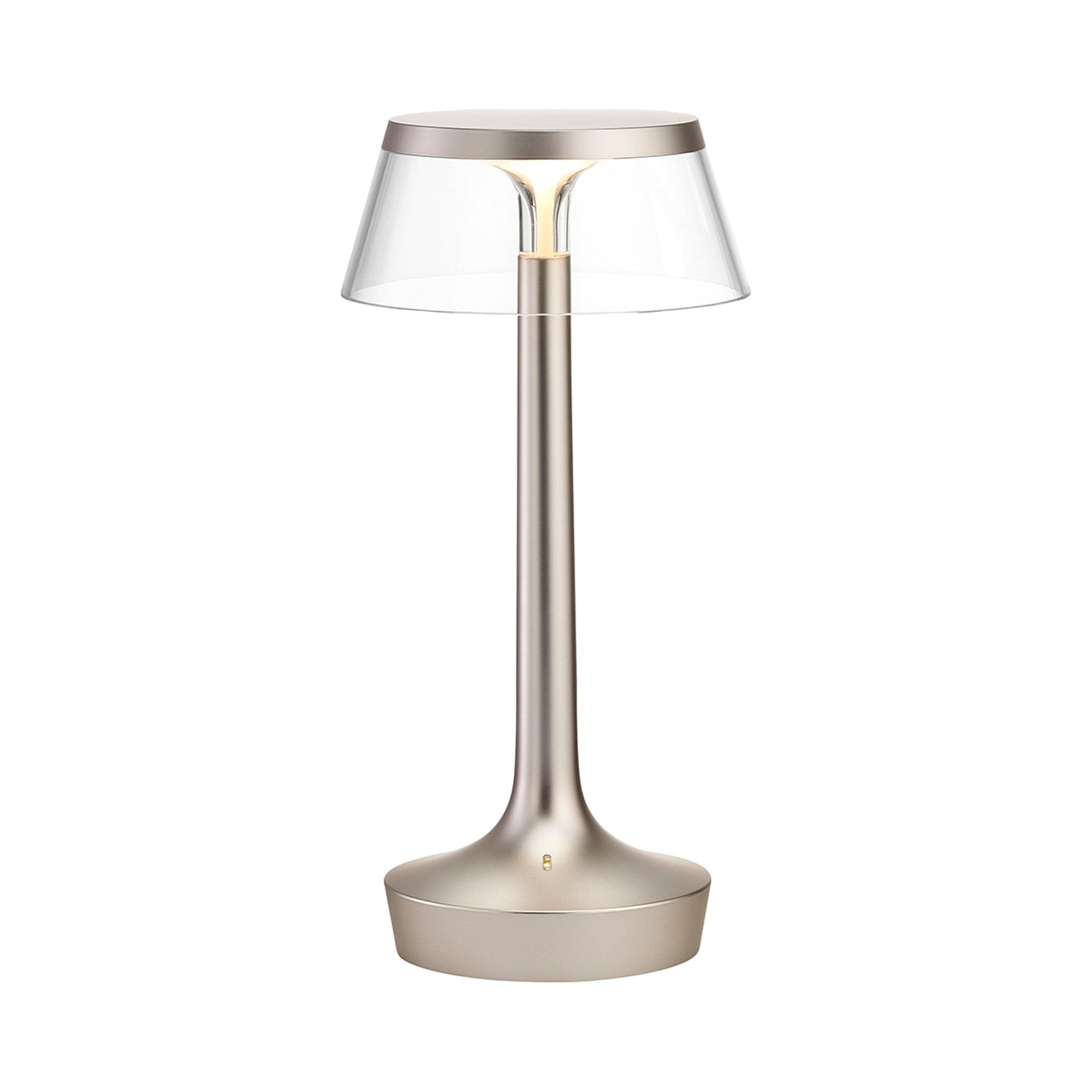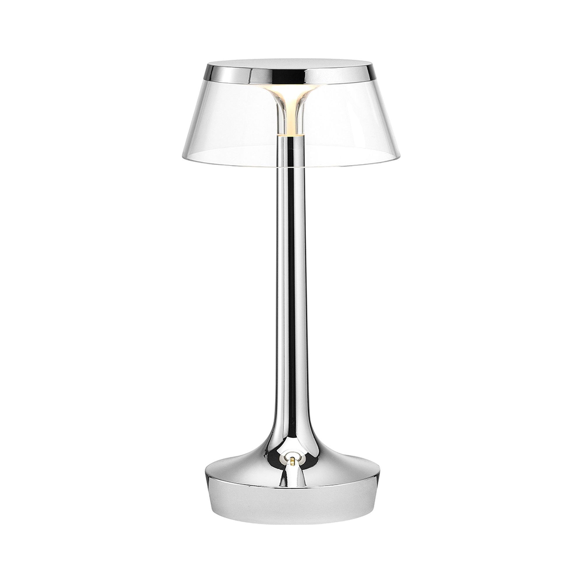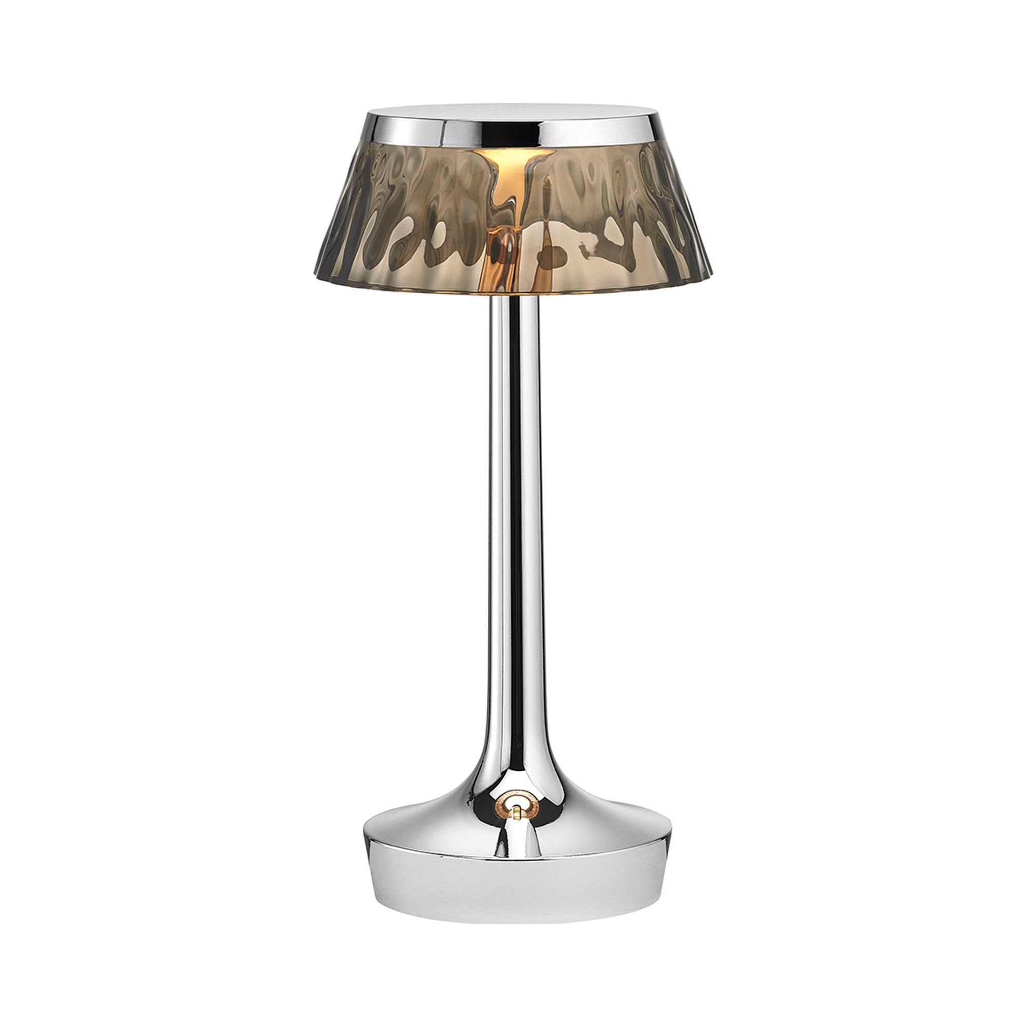 Blending elegant texturing with a brilliant, polished shine, the Bon Jour Unplugged Wireless LED Table Lamp from FLOS elegantly emboldens the modern home interior.