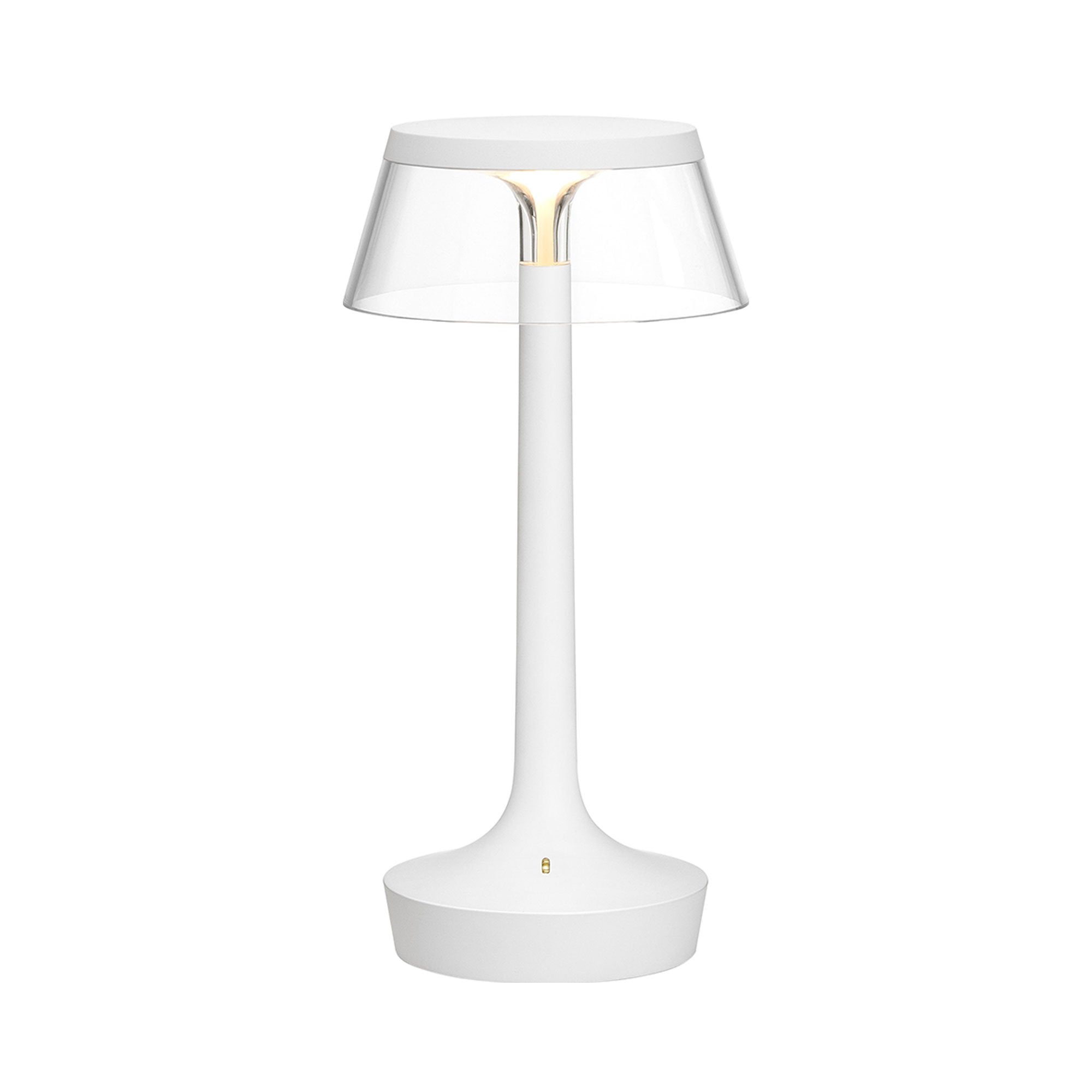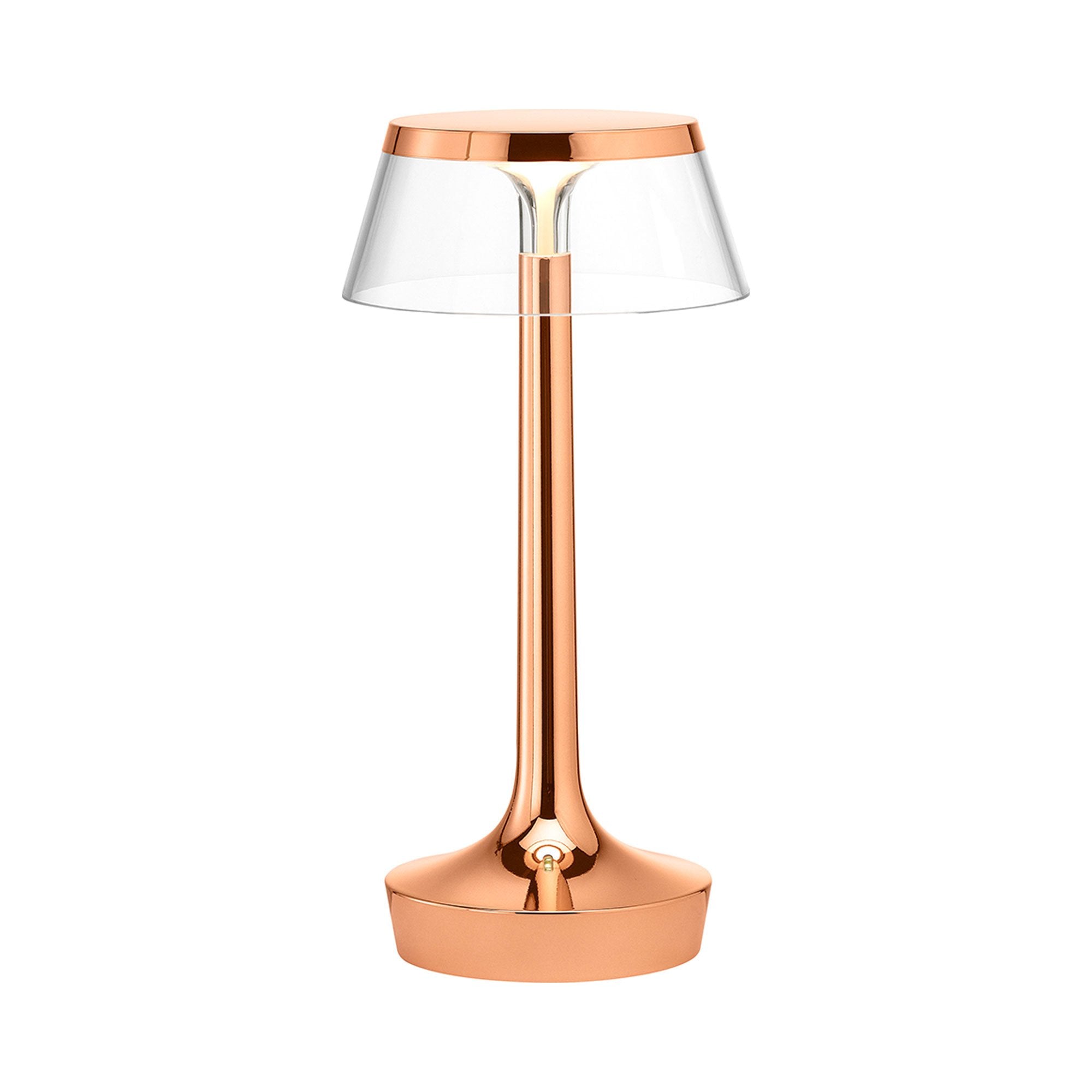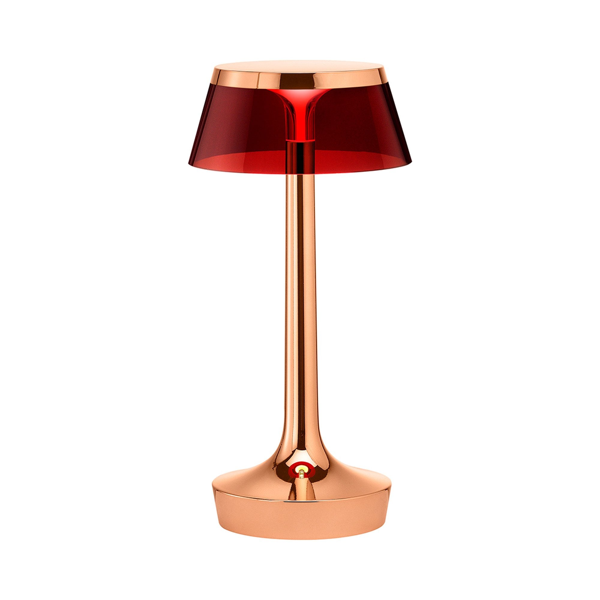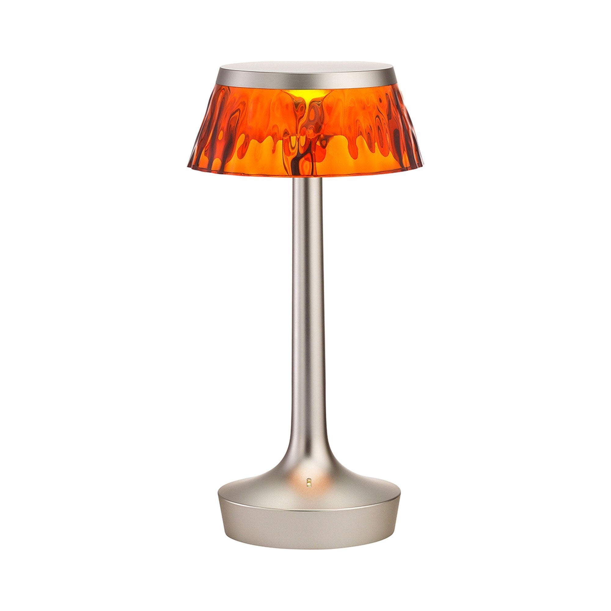 Blending elegant texturing with a brilliant, polished shine, the Bon Jour Unplugged Wireless LED Table Lamp from FLOS elegantly emboldens the modern home interior.