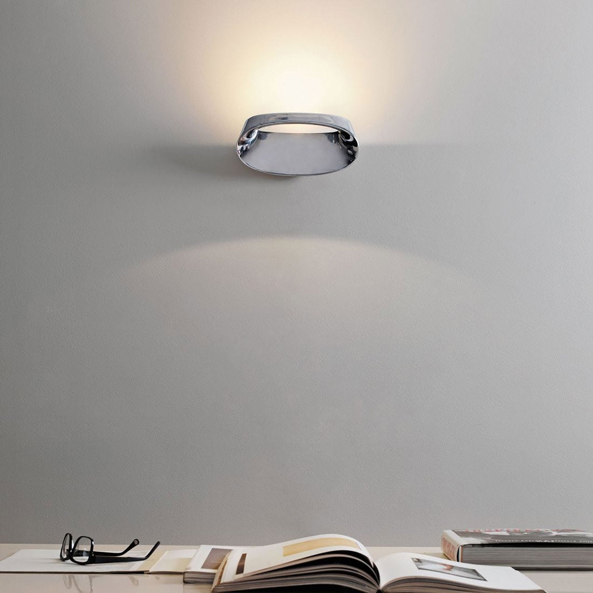 With its elegant sinuous shape, Bonnet is the new LED lamp that reworks the concept of indirect lighting. The top part conceals a small yet very powerful LED source whose ray of light is mainly directly upwards onto the wall and ceiling. The designer also wanted to play with the parasite light that is normally lost, recuperating it with a lens and directing it downwards. In this way, Bonnet not only lights itself up but also produces a downwards glow.