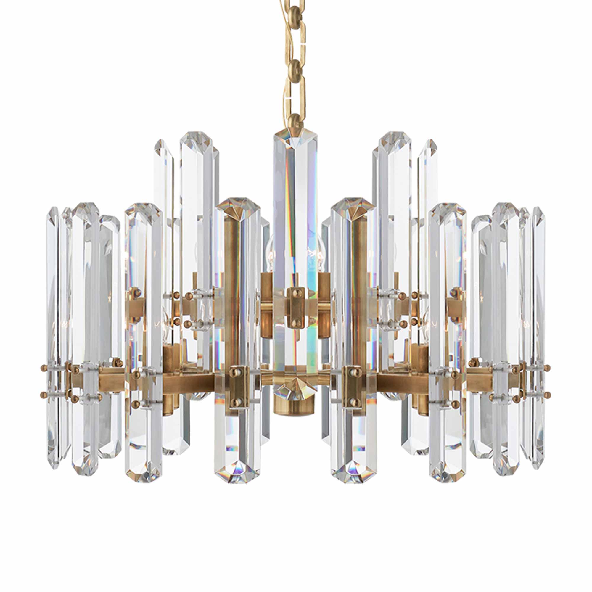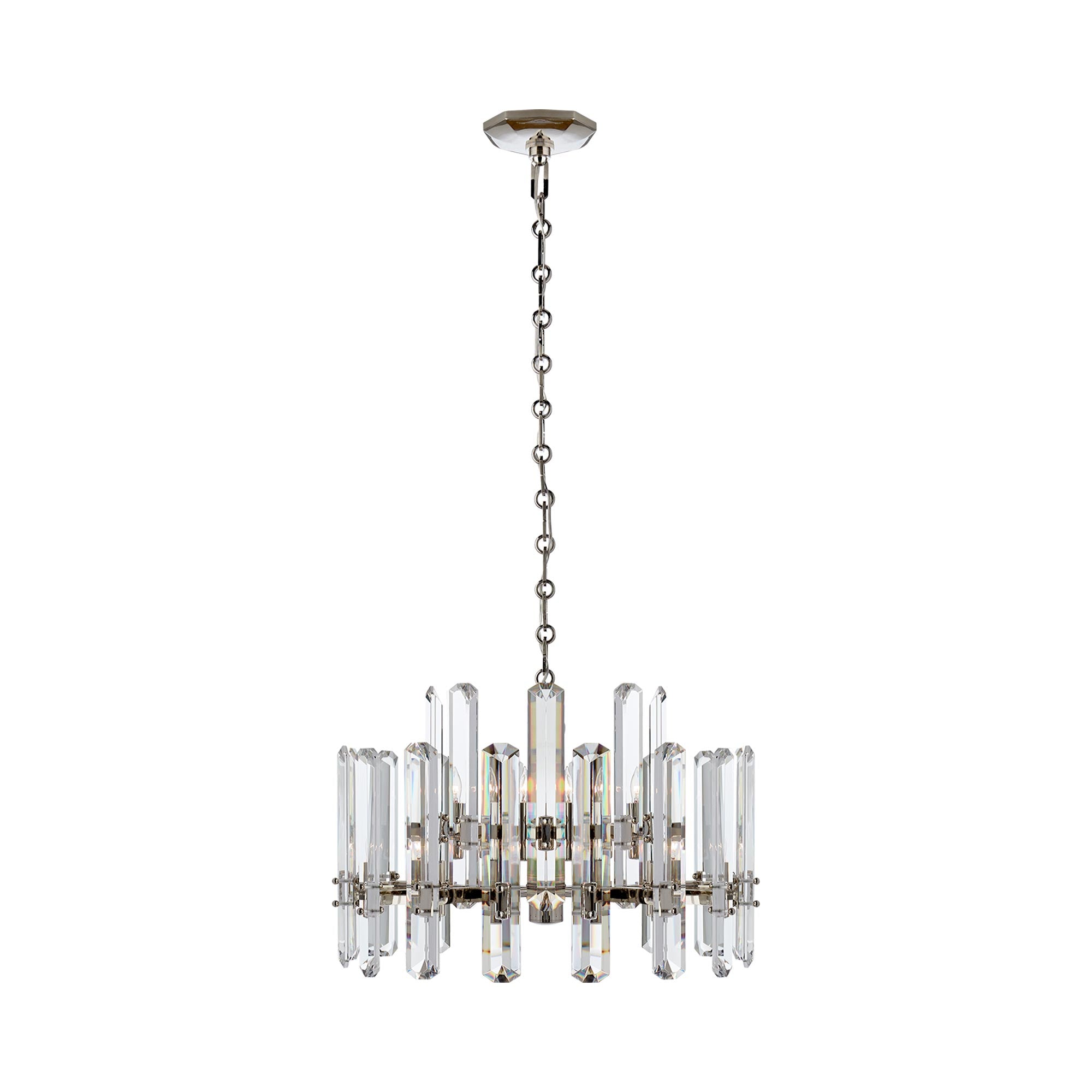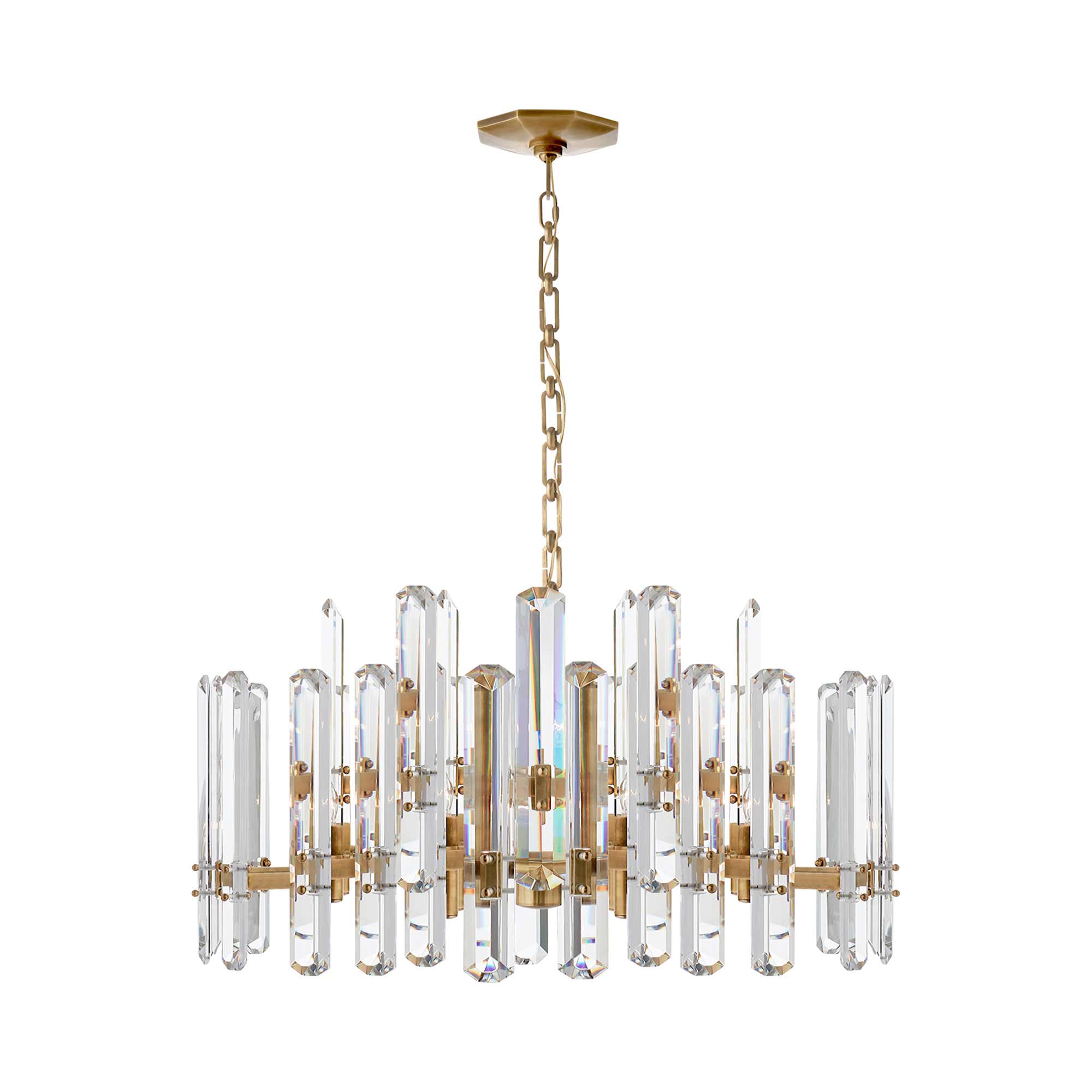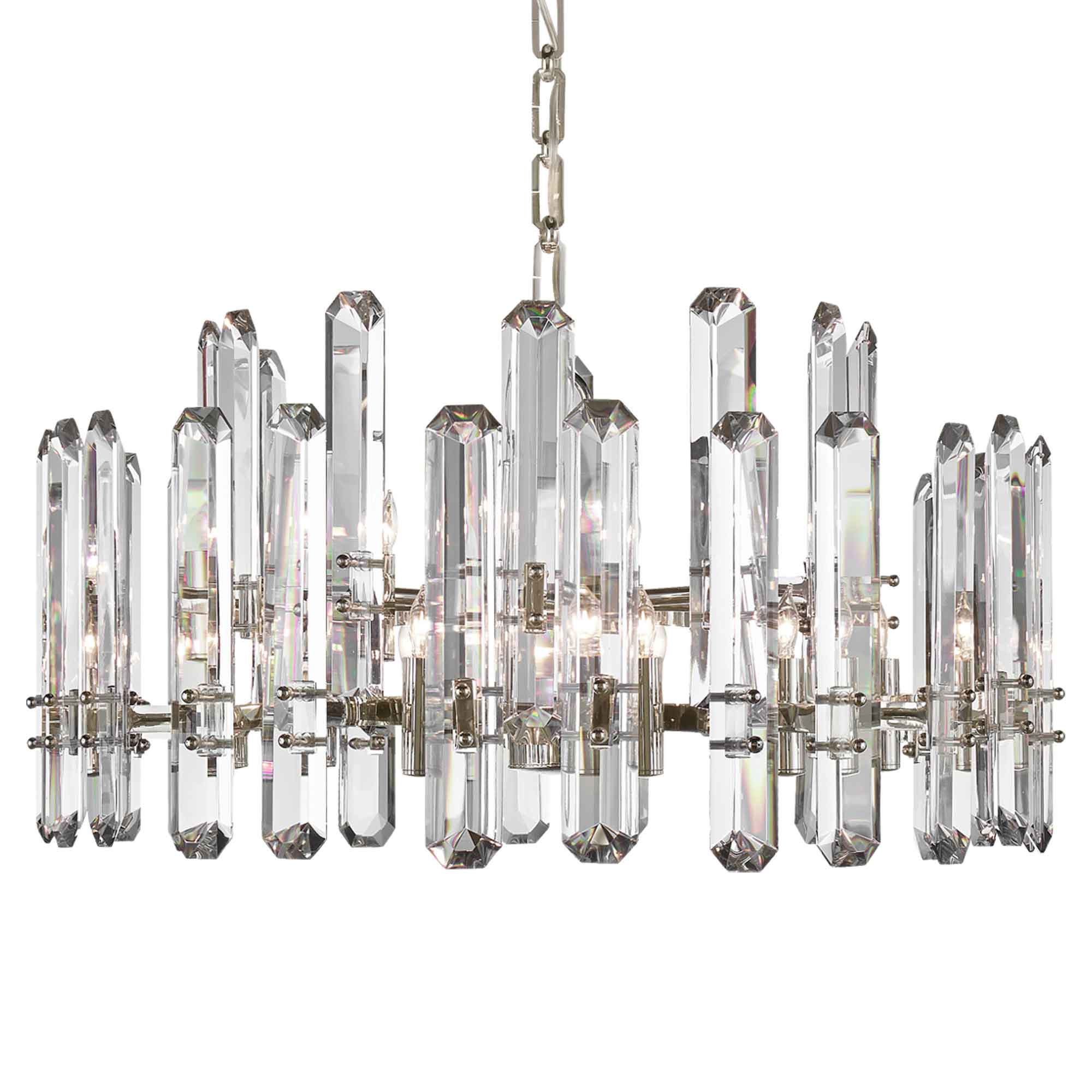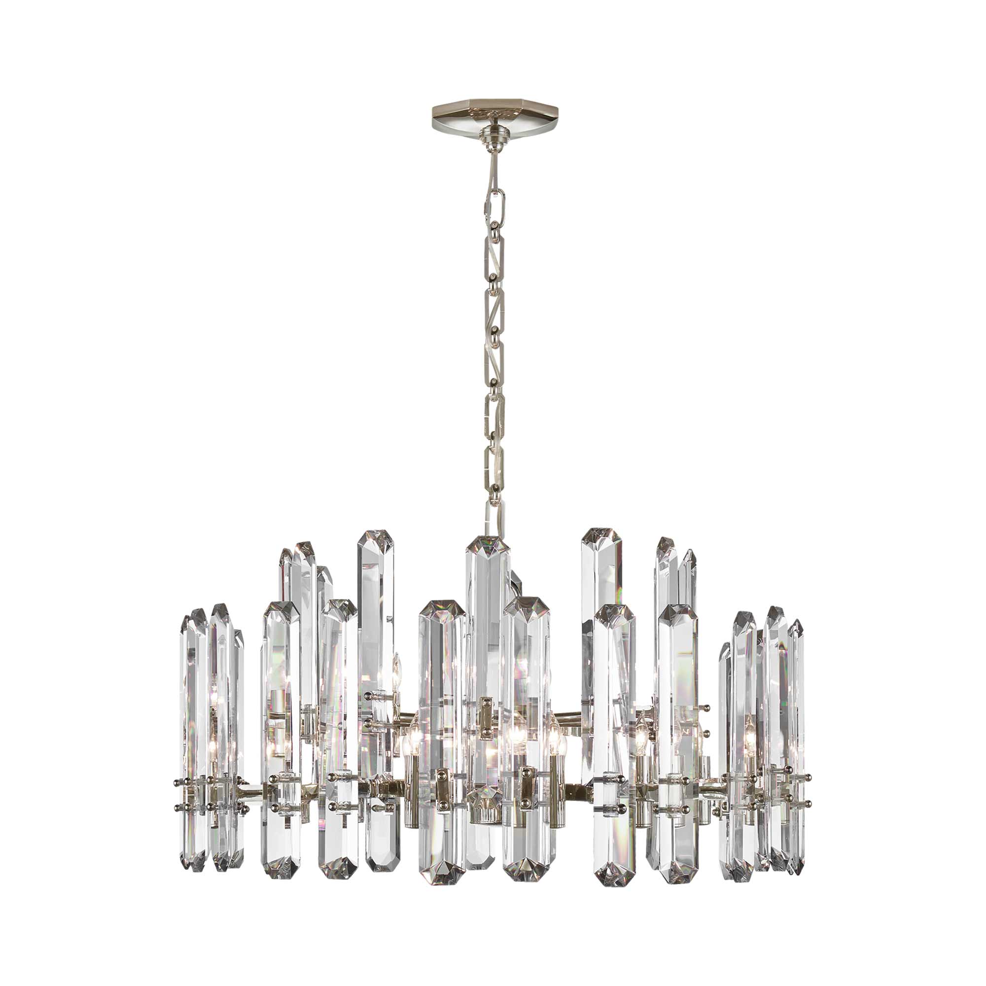 Oblong crystals offer an awe-inspiring display on the Bonnington Chandelier from Visual Comfort Signature. Hang this piece in a grand entryway or extravagant dining space for an unforgettable impression.