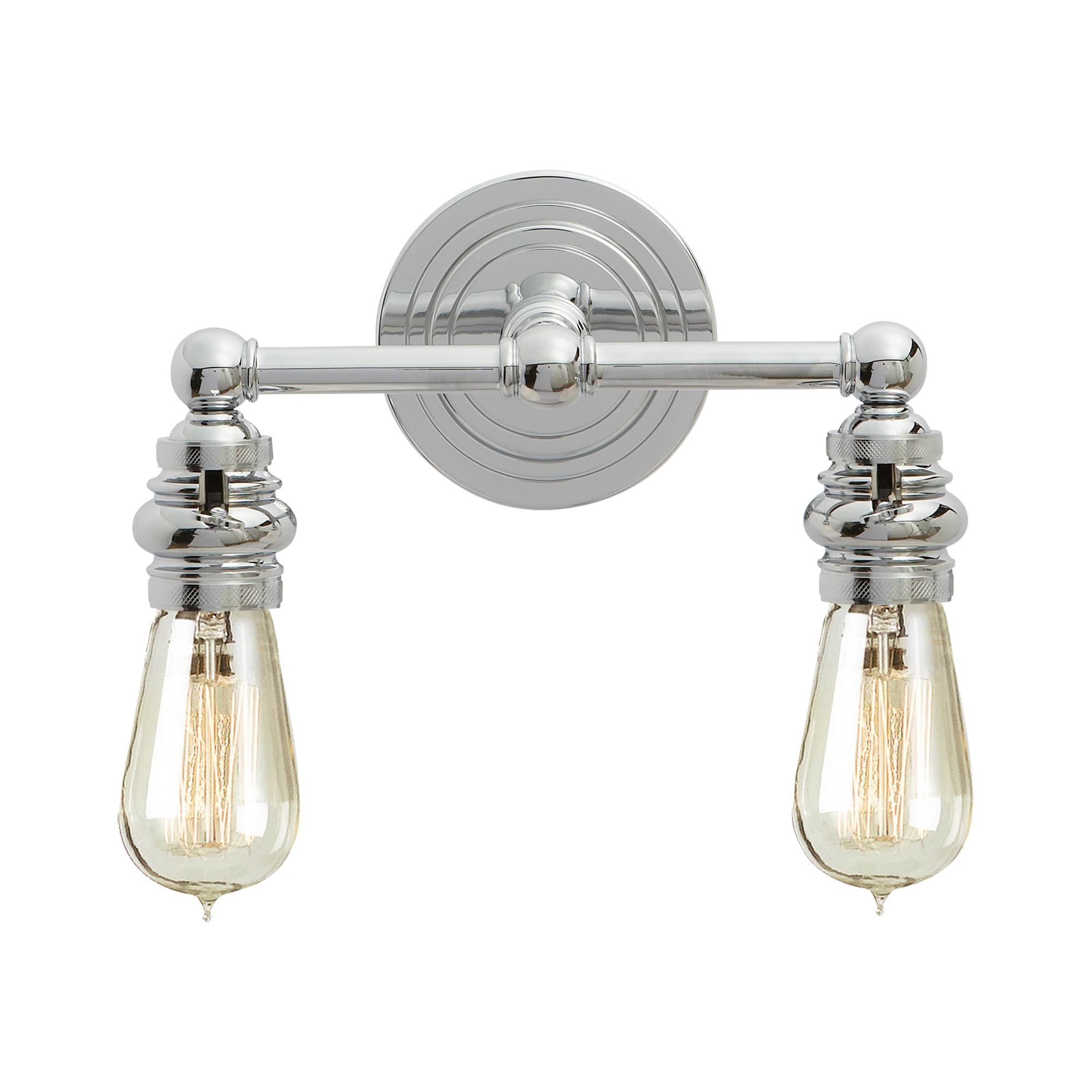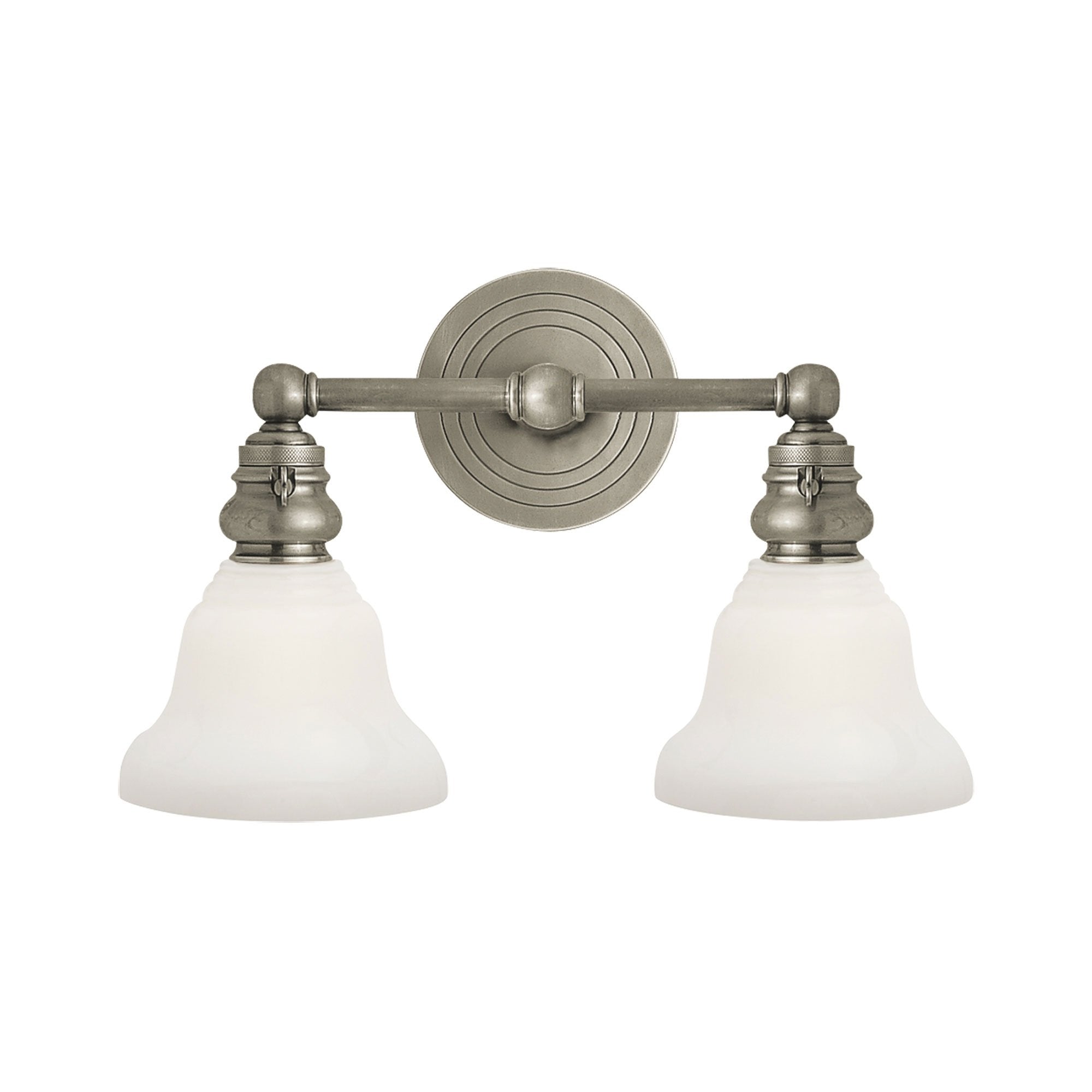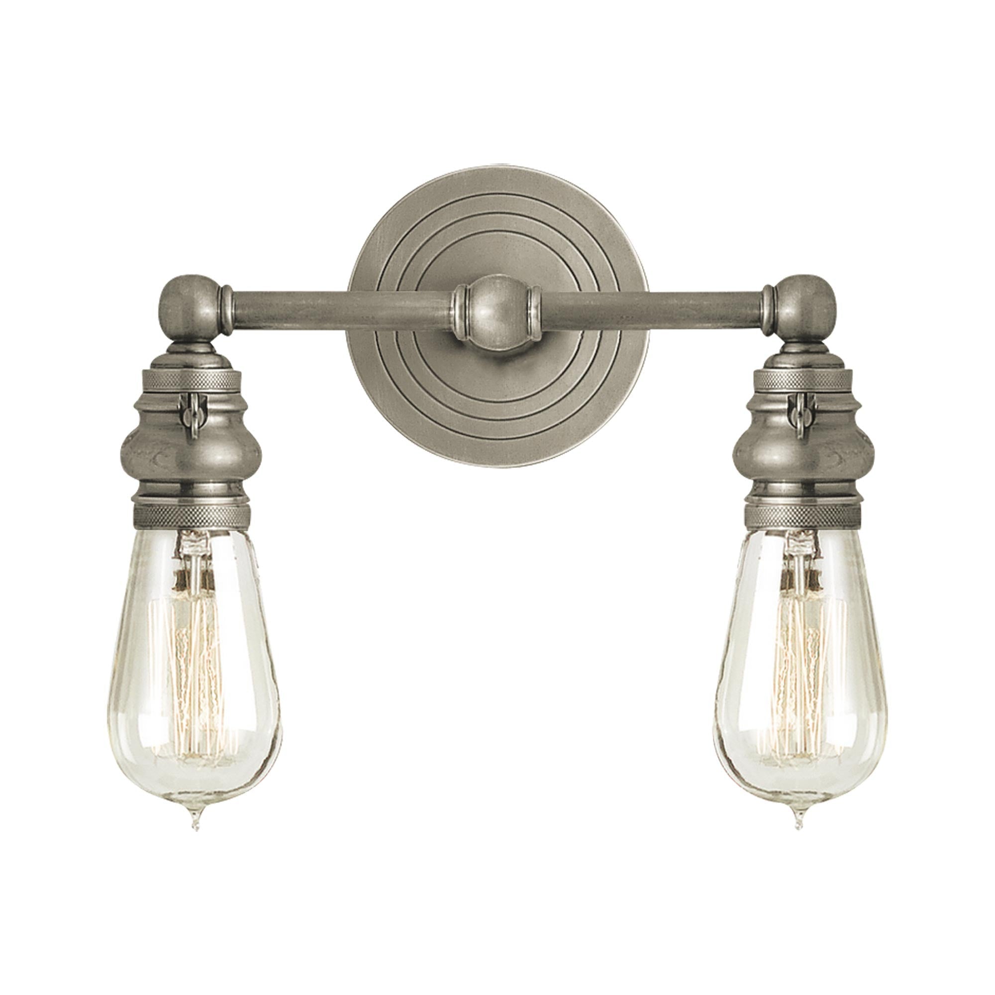 The Boston Double Wall Light from Visual Comfort Signature harkens back to a village-inspired theme and changes the ambiance in any space. Follow intricate detailing on a round metal wall plate and mounting elements, and an assortment of chic finishes and shade options.