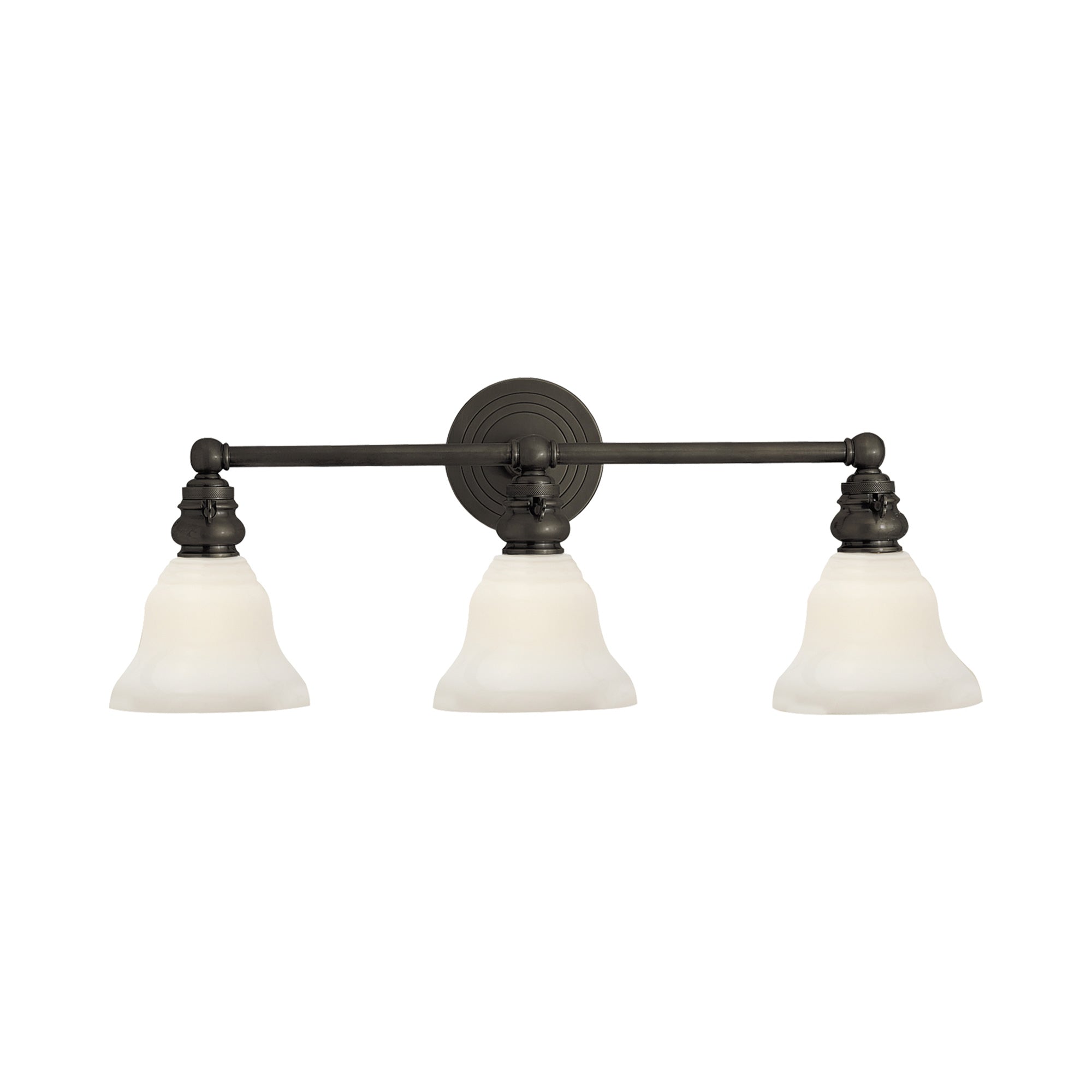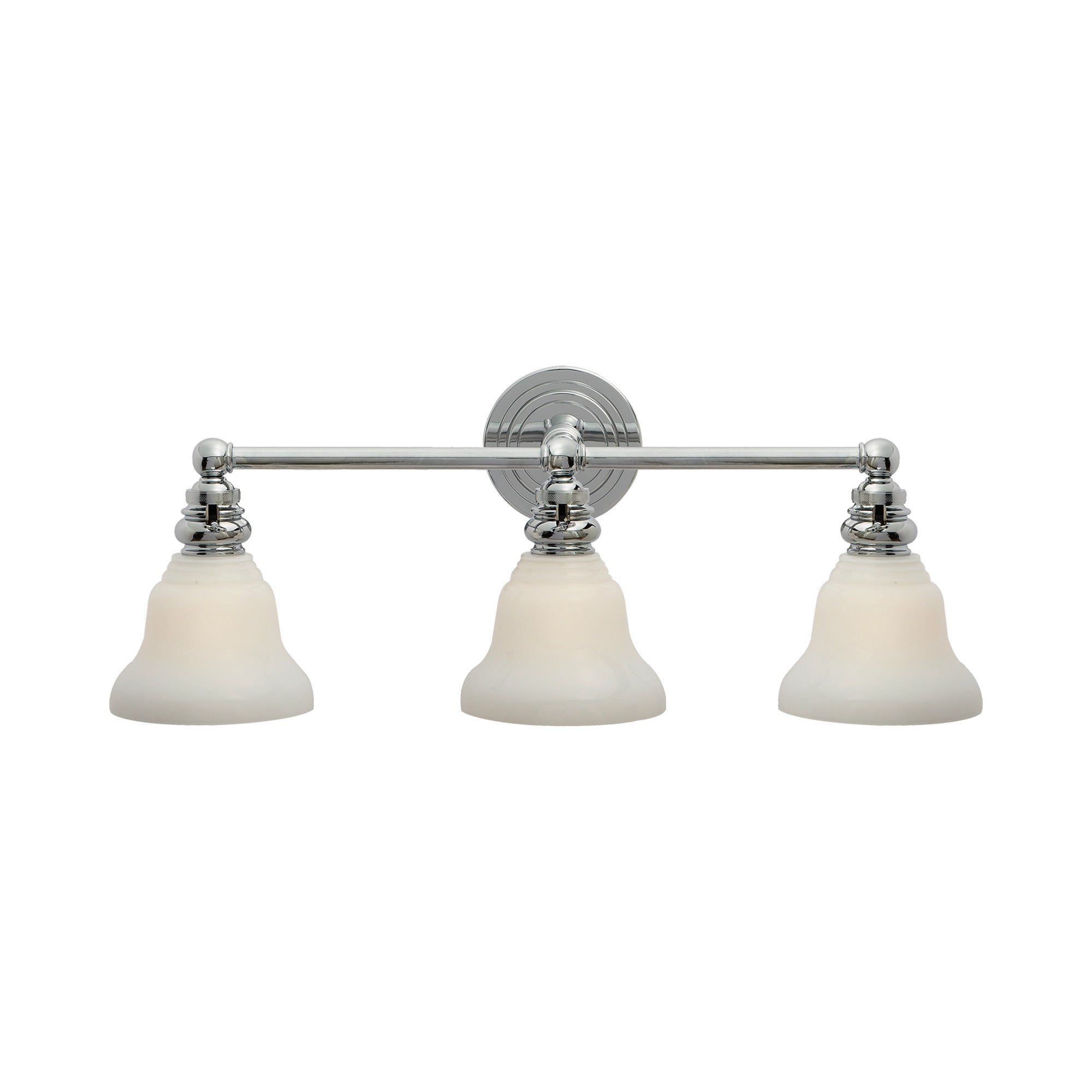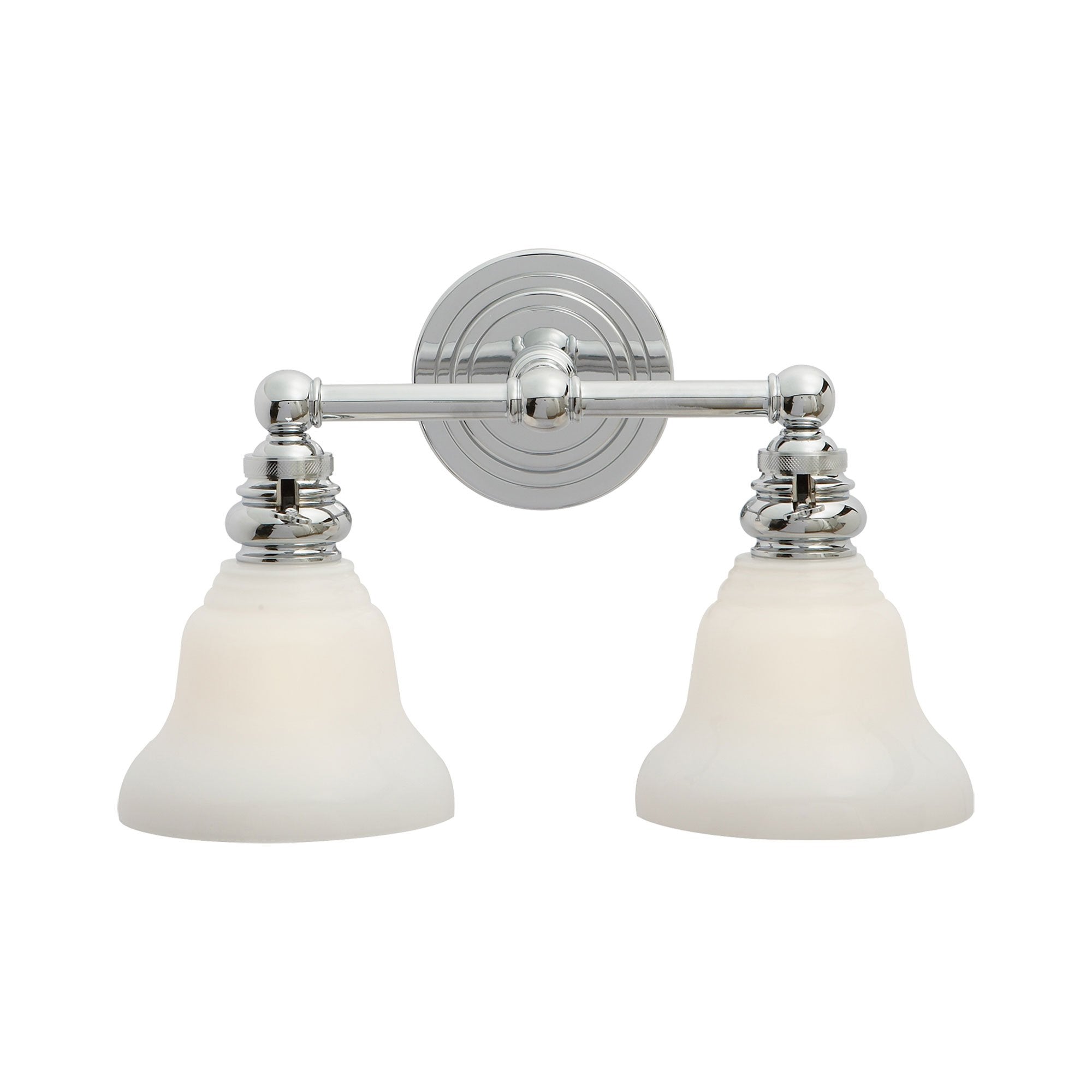 The Boston Double Wall Light from Visual Comfort Signature harkens back to a village-inspired theme and changes the ambiance in any space. Follow intricate detailing on a round metal wall plate and mounting elements, and an assortment of chic finishes and shade options.