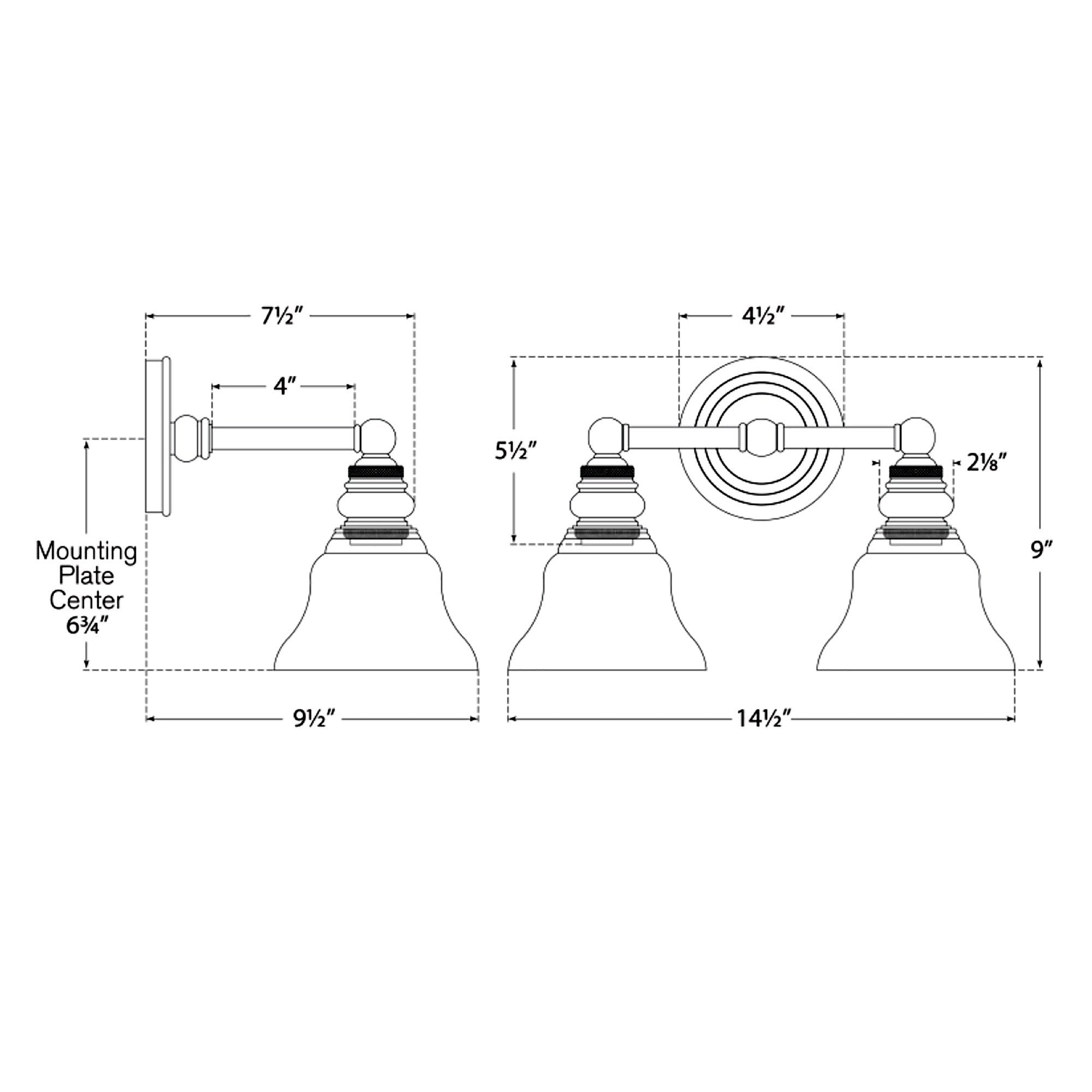 - 2-Light: 2 X 60W 120V E26(medium base) Type B incandescent lamps (not included)