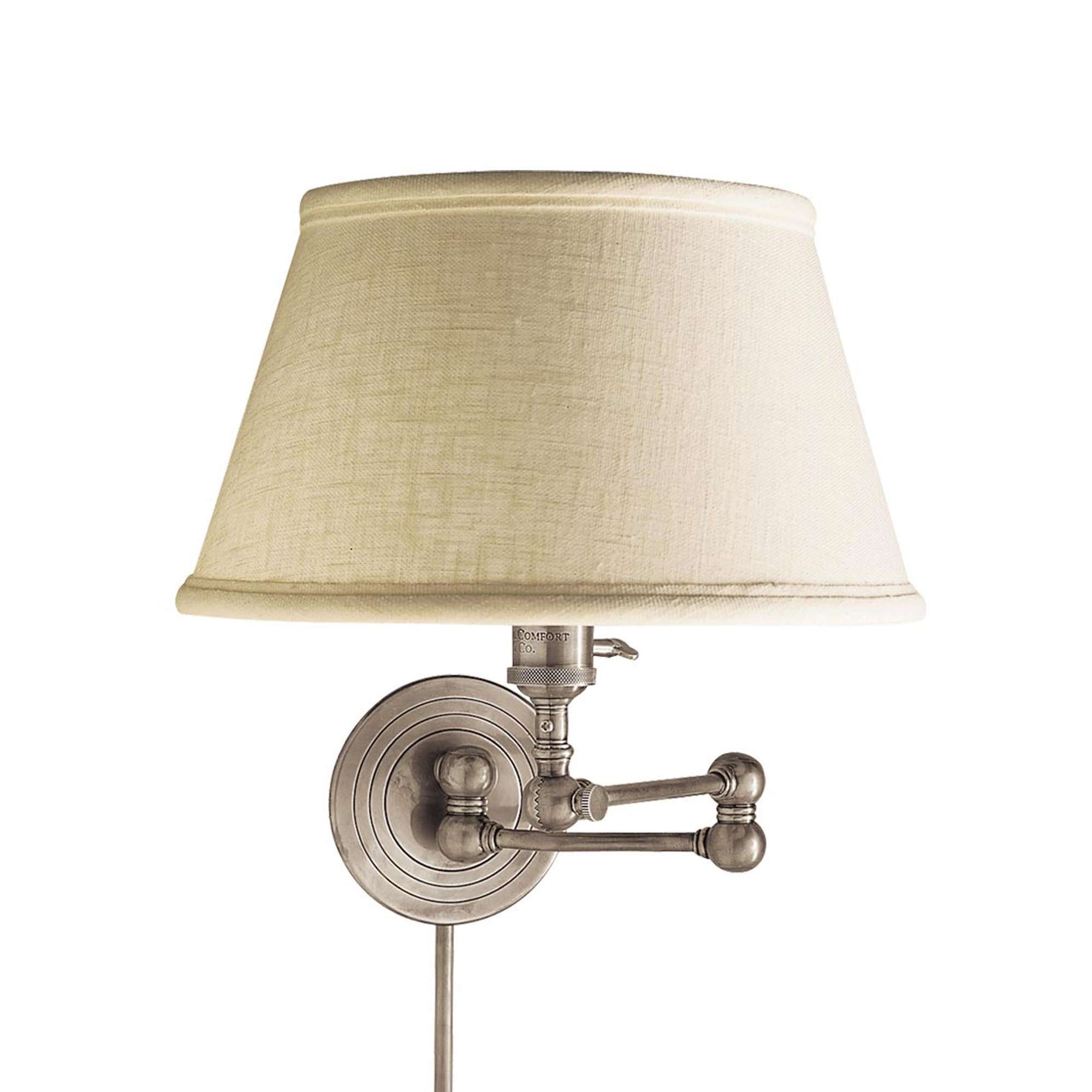 Perfectly suitable for bedsides and reading nooks, the traditional Boston Swing Arm Linen Shade Wall Light from Visual Comfort Signature is as versatile as it is elegantly designed. Rotate the adjustable swing arm over reading material, casting light where desired, as the knob elbows and slender metallic arms offer a classical glam look and feel.