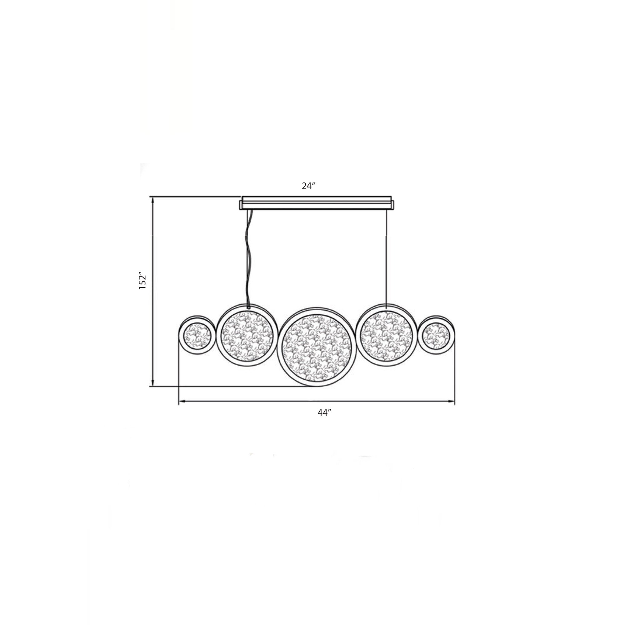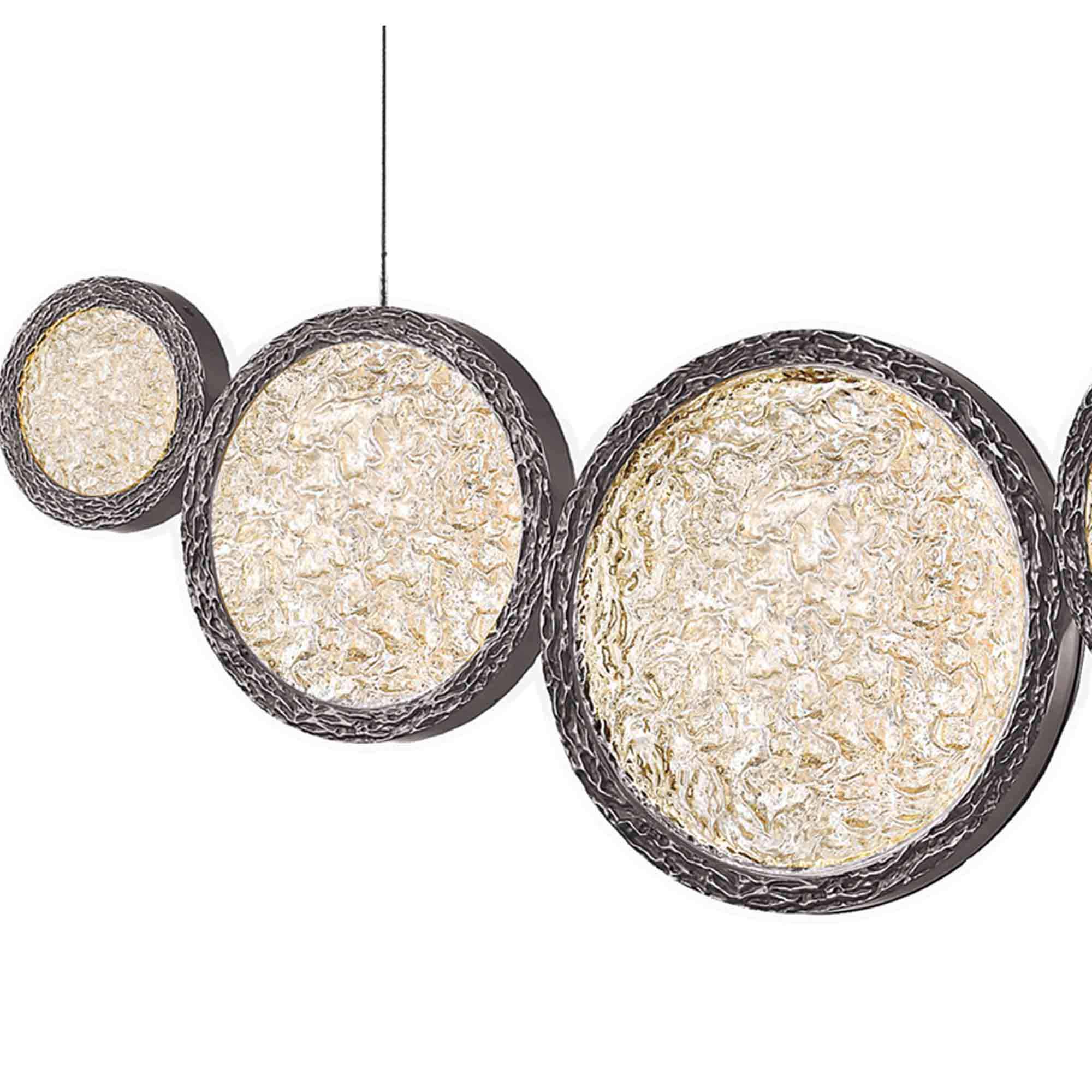 Gorgeous textured discs glow from within the five rings that create the Bottega LED Linear Pendant Light from Avenue Lighting.