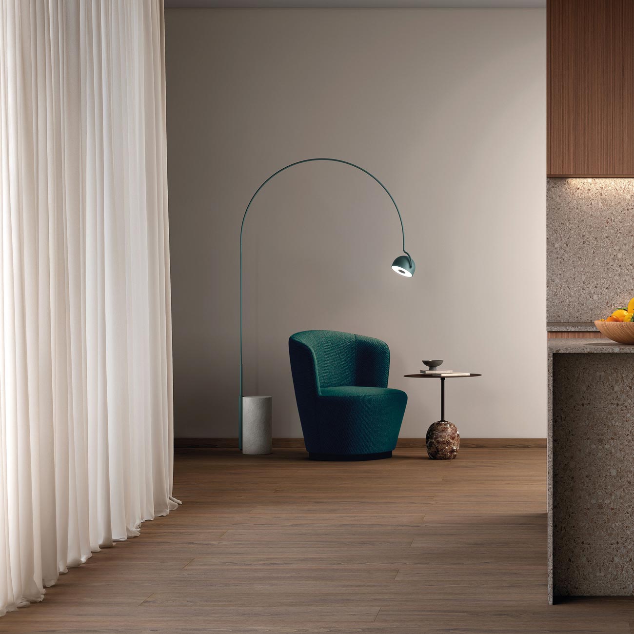 The gracefully slender lines of the Bowee F LED Floor Lamp from B.Lux transcends a space beautifully. Reminiscent of Mid-Century Modern era designs, this energy-efficient floor lamp presents a single diffuser capped half-sphere shade at the tip of a sweeping arched suspension. A grounding base allow this dramatic floor lamp to peer in on intimate seating areas and interiors magnificently.