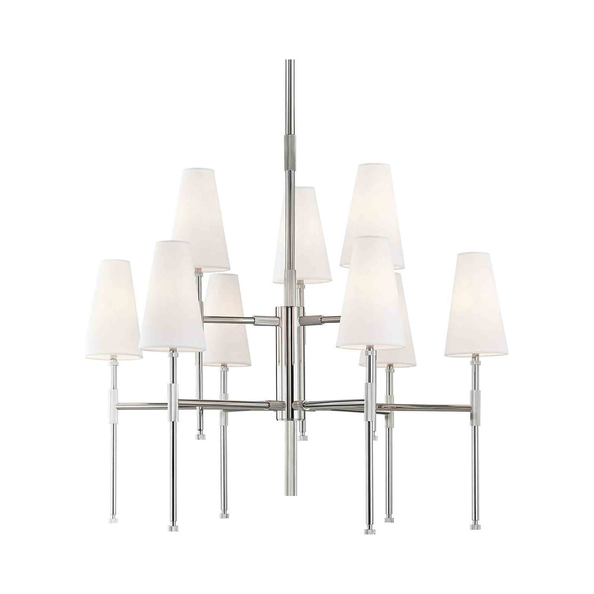 The Bowery Chandelier from Hudson Valley Lighting is sure to impress with its sleek lines and elegant arrangement of delicate, white shades.