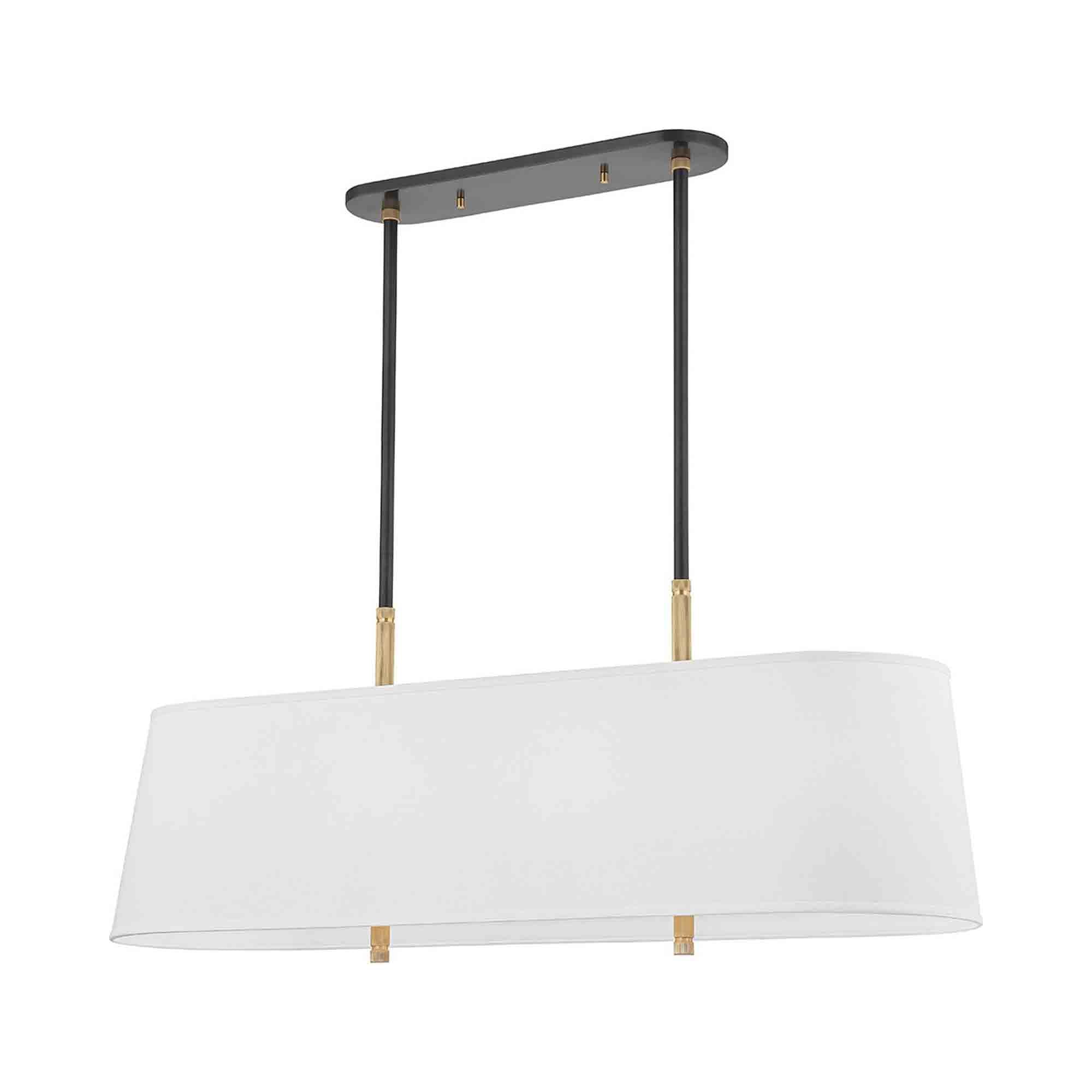 Industrial touches add character and vintage appeal to the Bowery Linear Pendant Light from Hudson Valley Lighting.