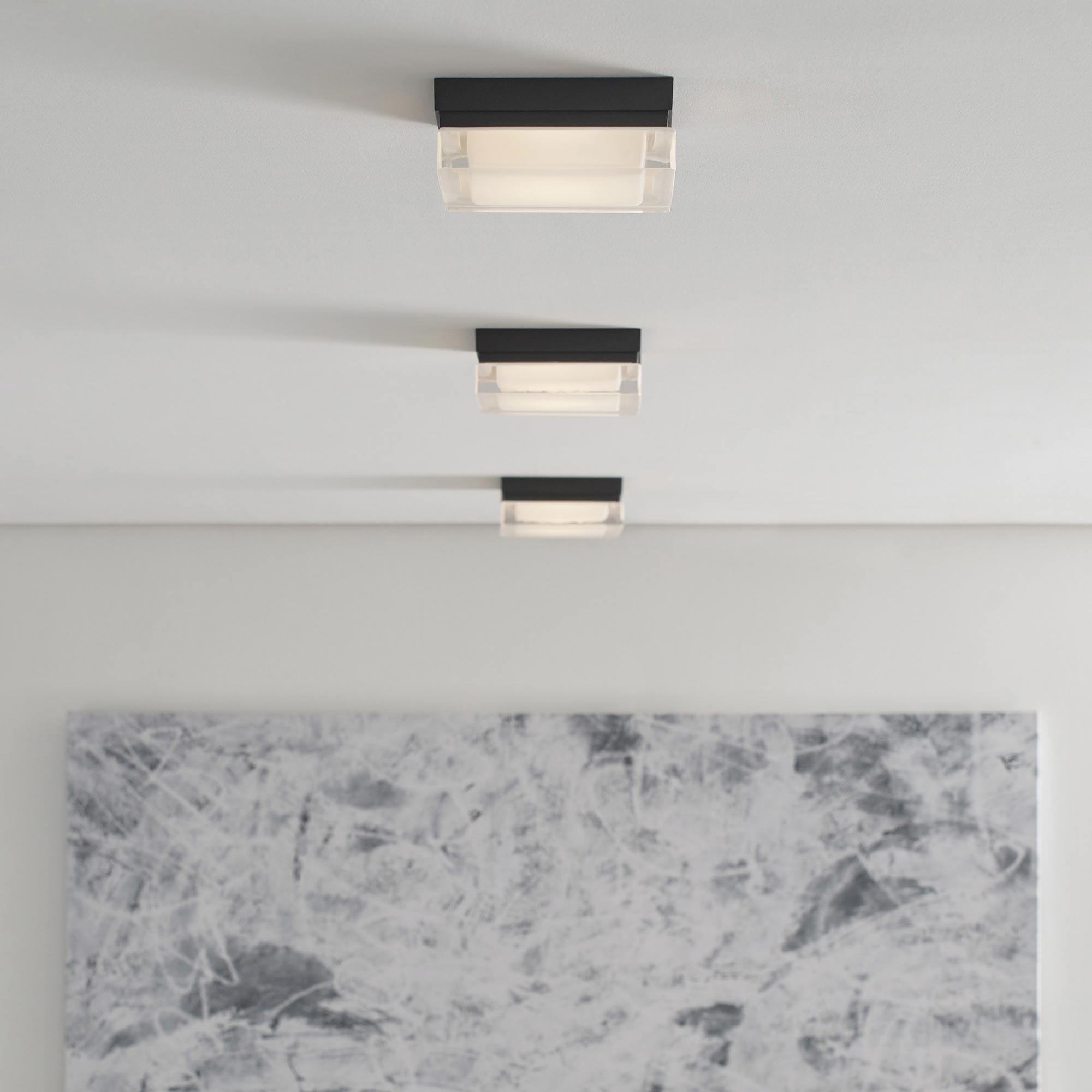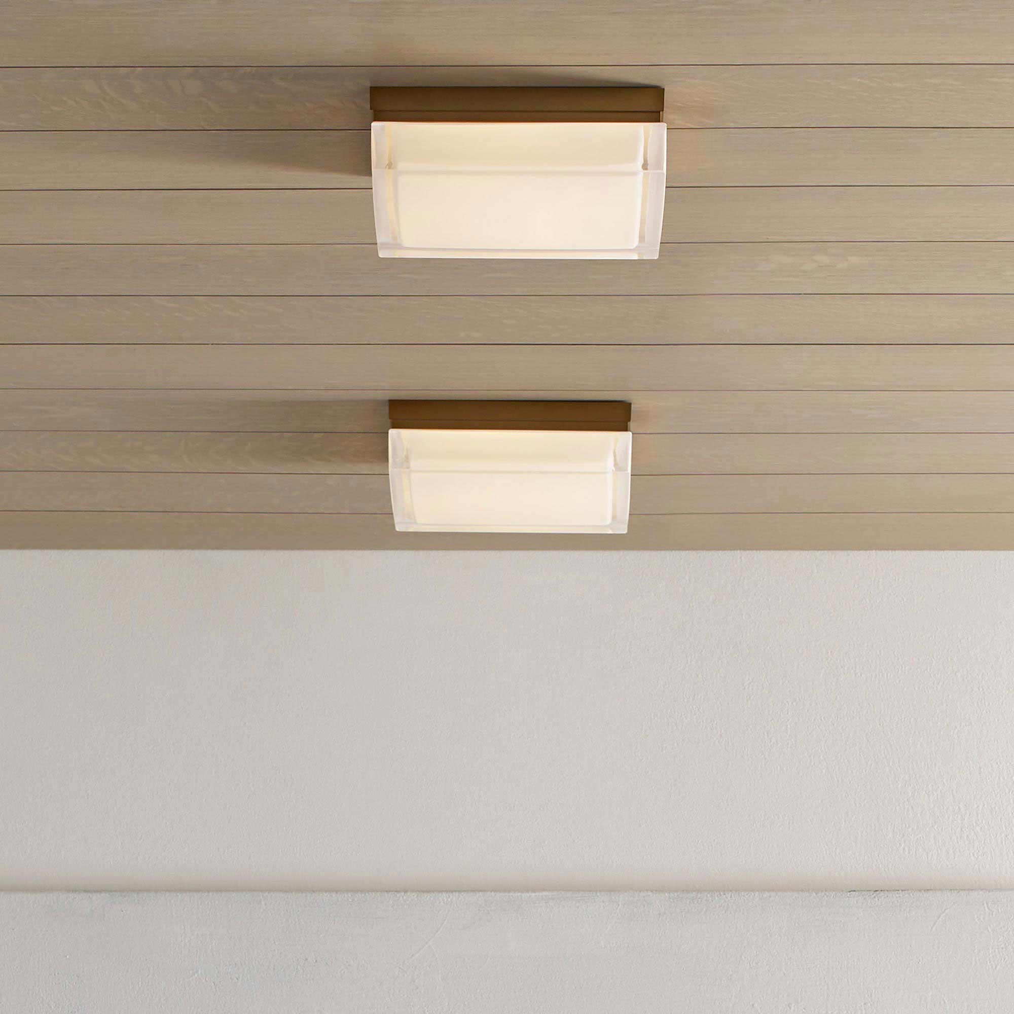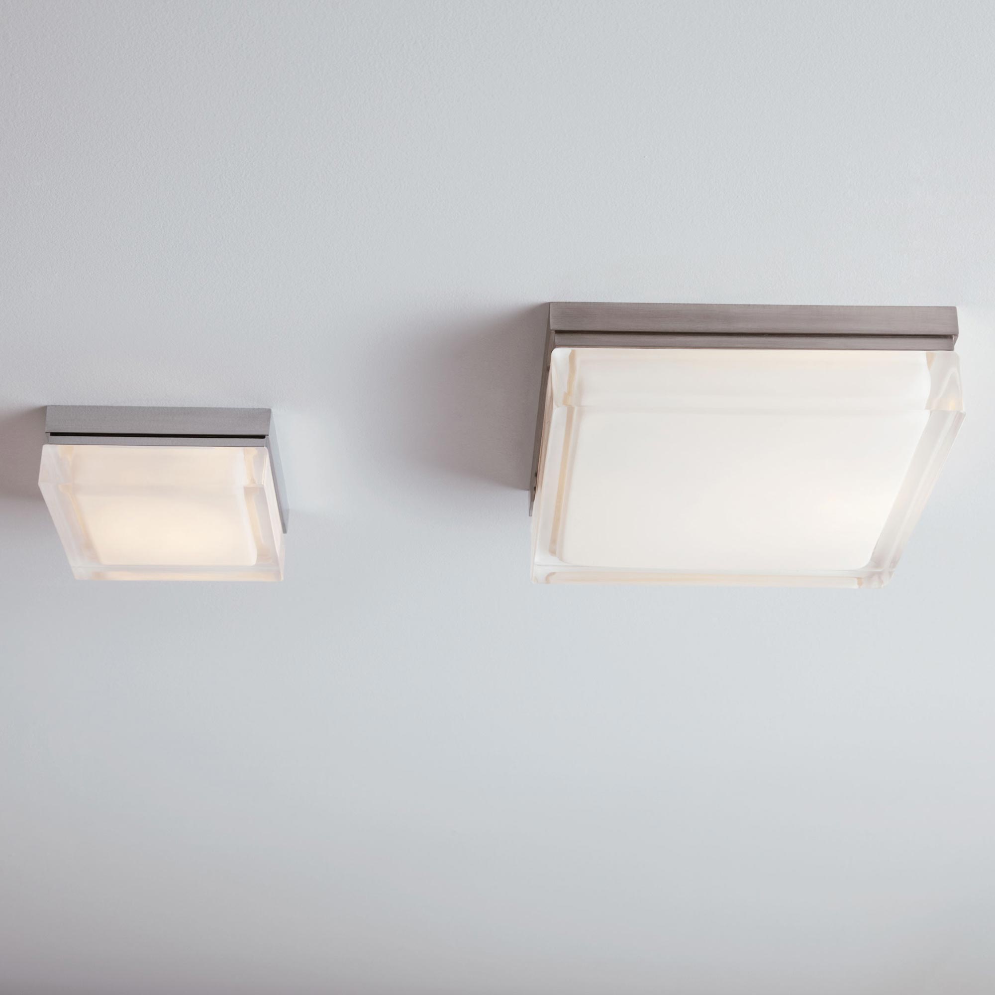 The Boxie LED Flush Mount Ceiling Light by Sean Lavin for Visual Comfort Modern is ultra-clean and ultra-modern with its square pressed glass and hand-polished surface. A sleek metal base made of die-cast metal beautifully anchors the glass below. The Boxie comes in two distinct sizes, small and large making it ideal for bathroom lighting, hallway lighting and closet lighting. Further customize the Boxie by selecting one of four finish options. Available lamping options include energy efficient LED or incandescent, both lamping options are fully dimmable to create the perfect ambiance in your special space.