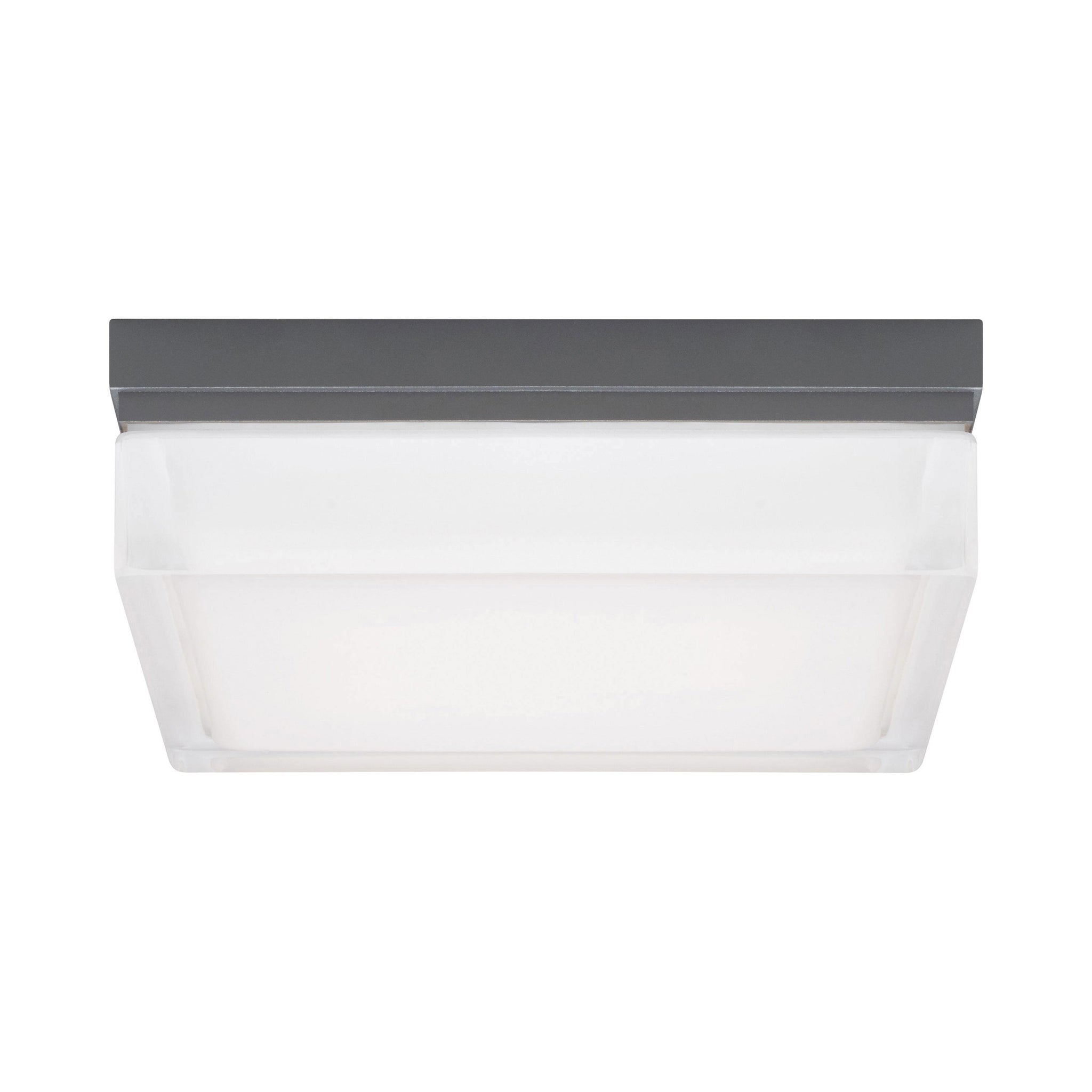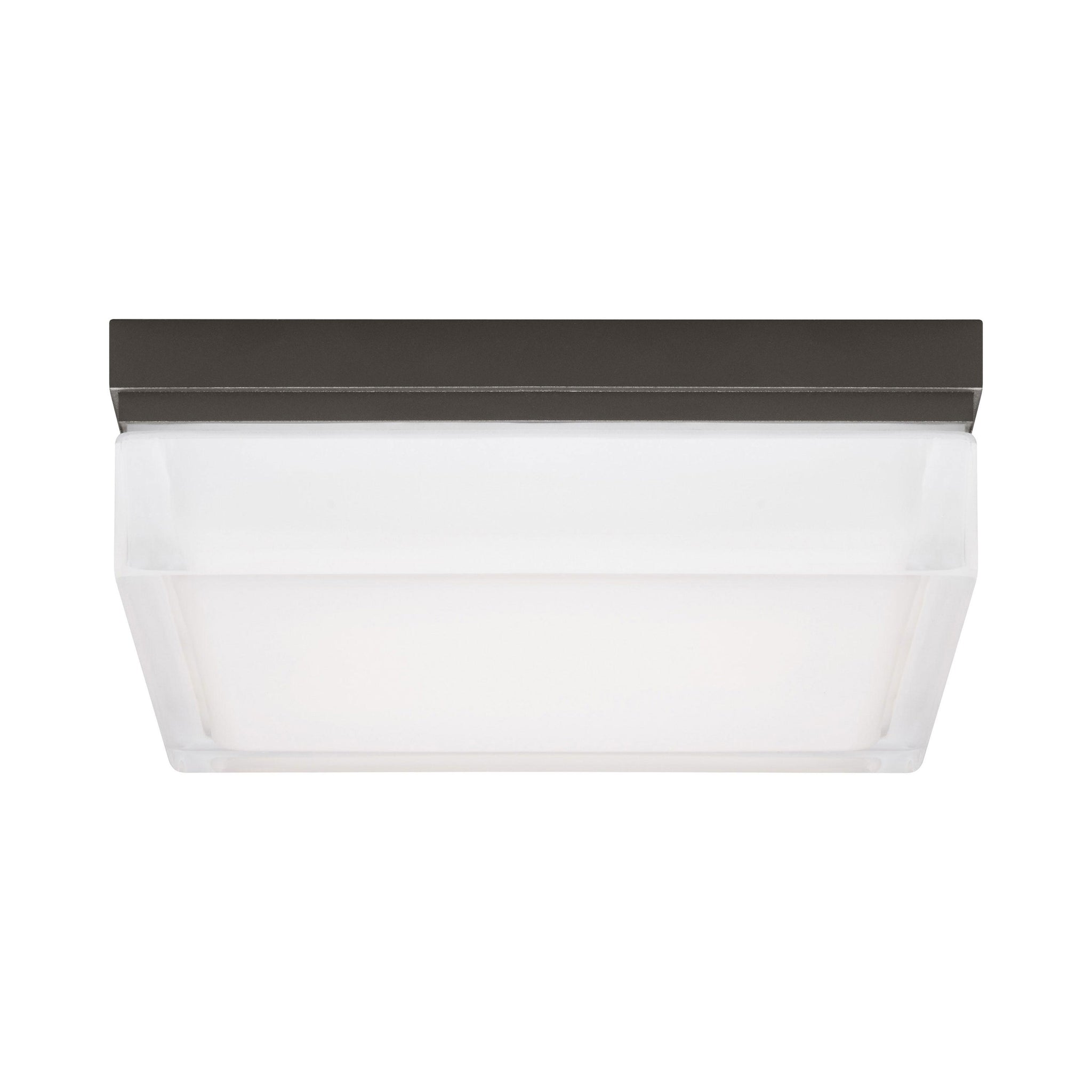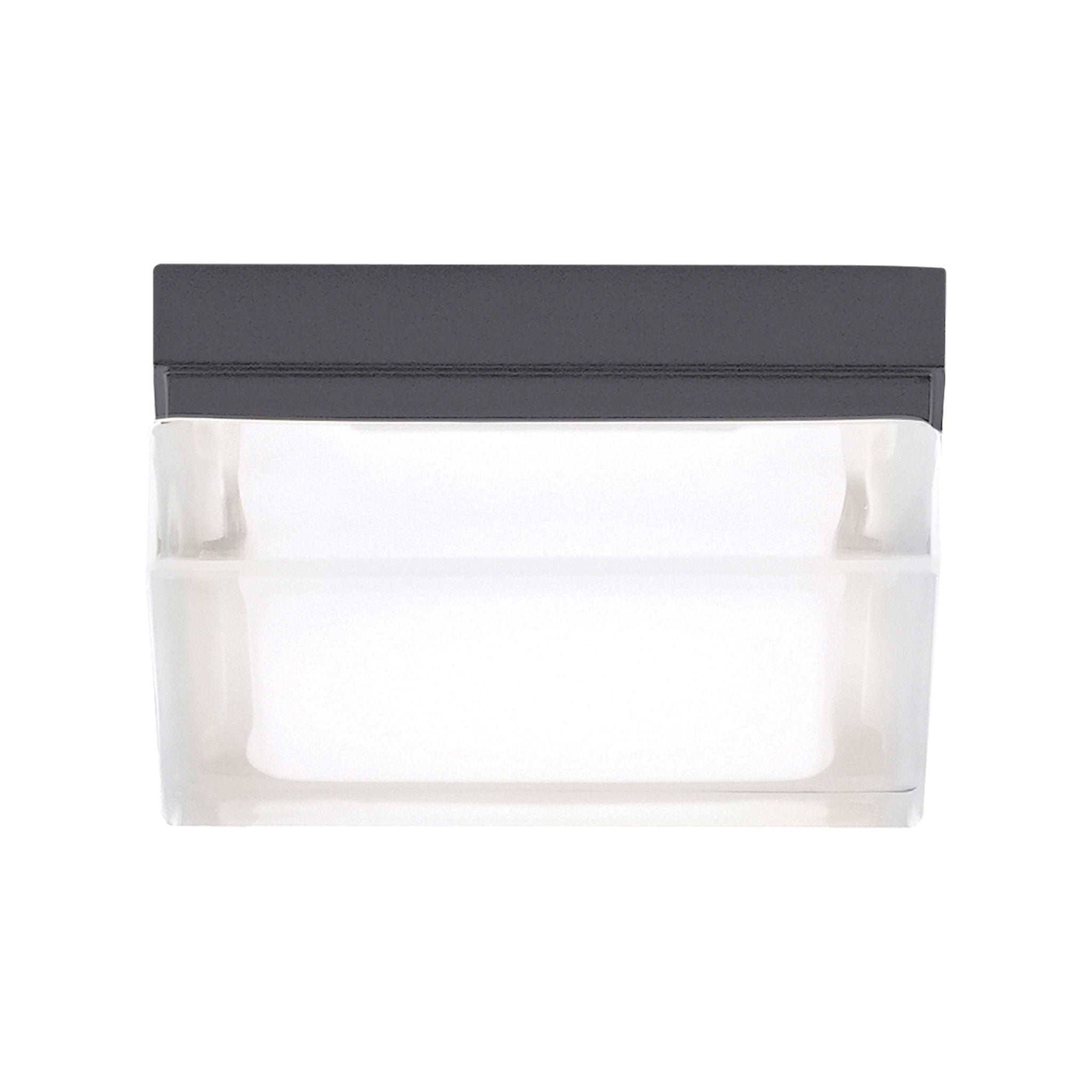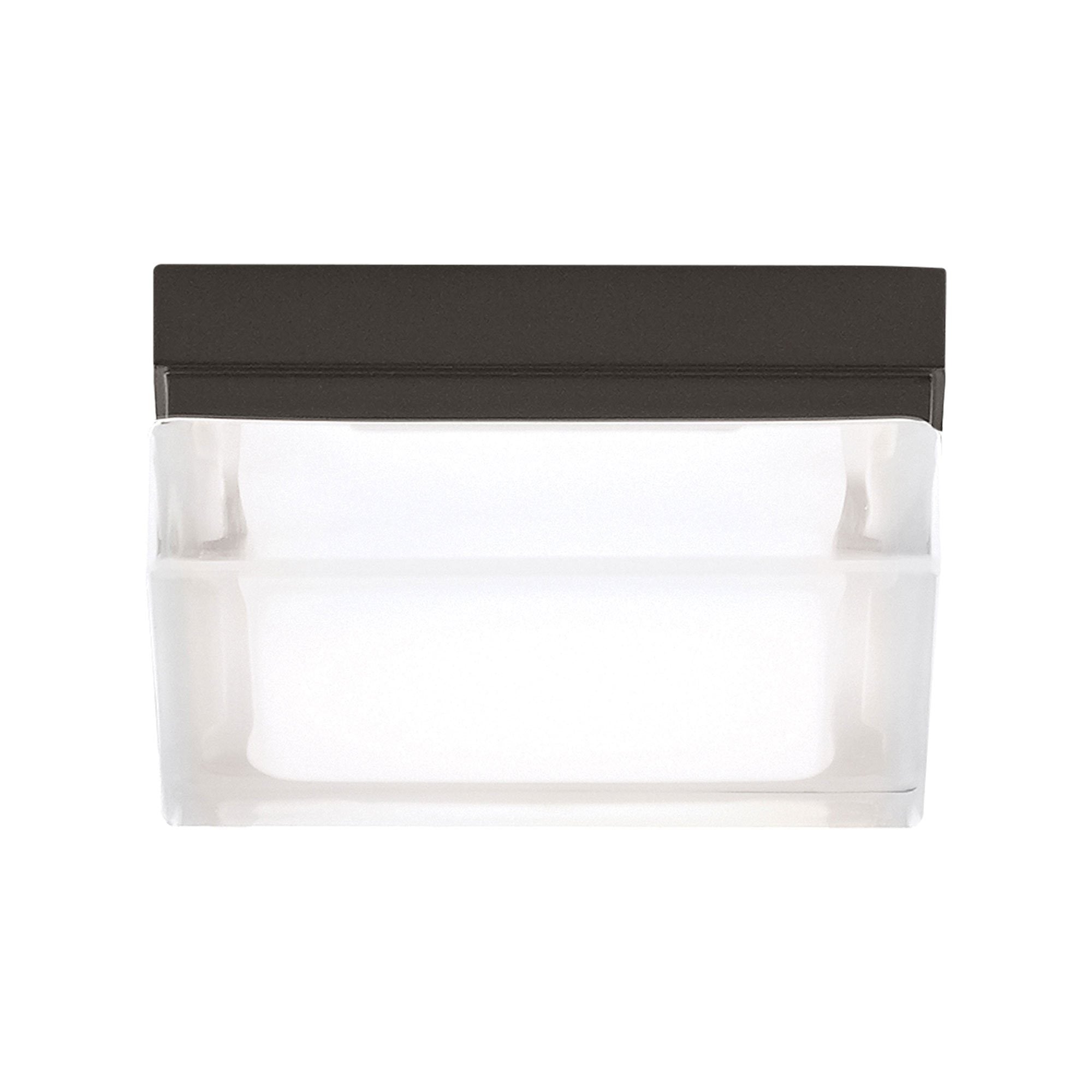 Beautiful for its simplicity, the Boxie LED Outdoor Ceiling / Wall Light by Sean Lavin for Visual Comfort Modern features a thick, square, pressed-glass shade with polished surface suspended from a die-cast base. The fixture has a sleek, modern design and offers installation versatility as a flush mount on the ceiling or as a sconce on the wall. The minimalist profile of the Boxie design is available in two sizes (6 inches or 9 inches square). This unique outdoor light fixture features a durable, powder coat finish available in either Charcoal or Bronze. Boxie also features stainless steel hardware and impact-resistant, UV stabilized acrylic lensing for added durability and stability. Incandescent option also available.