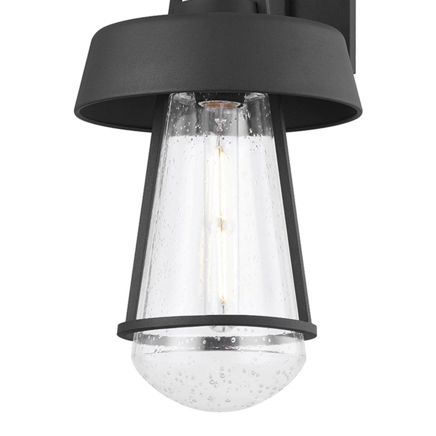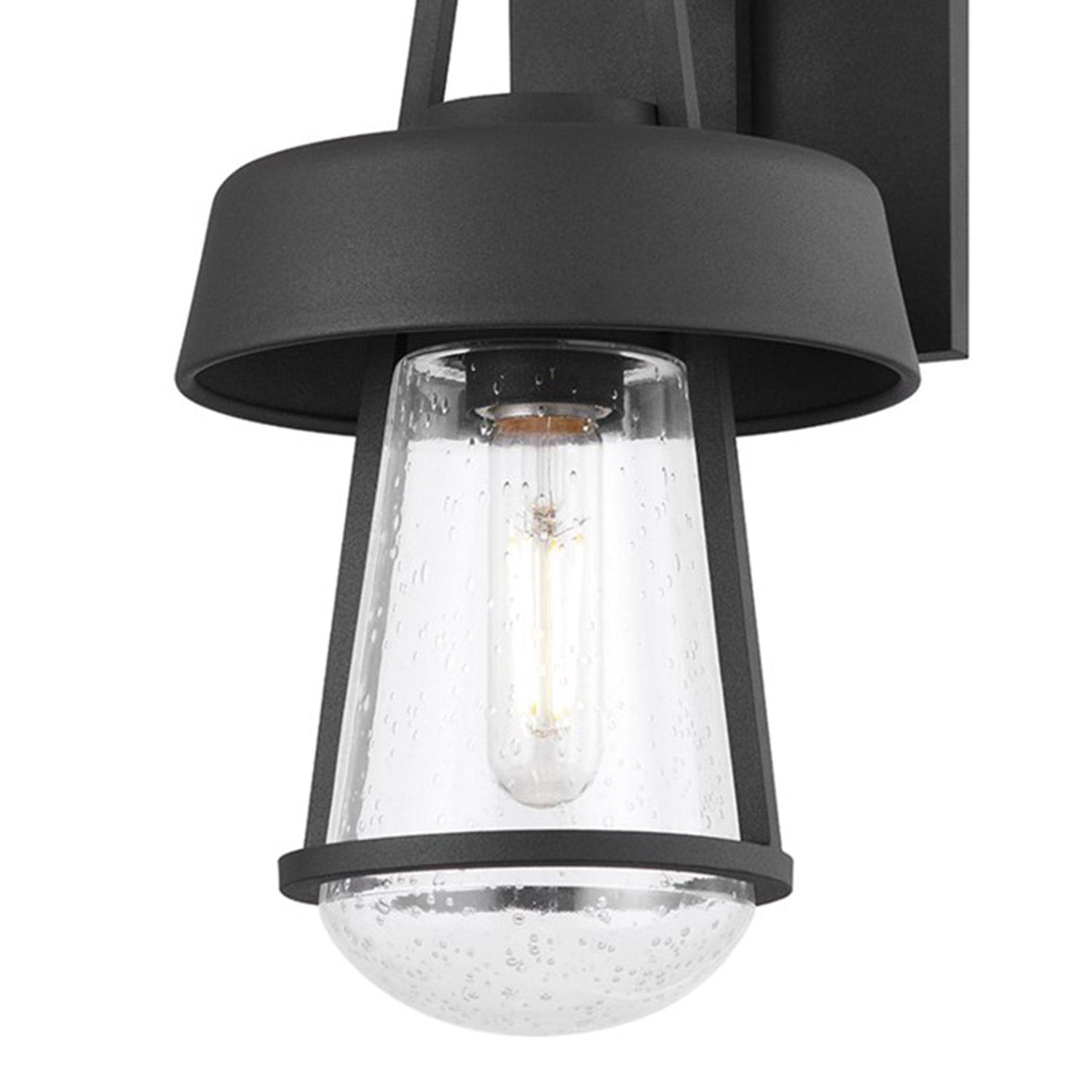 The Brady Outdoor Wall Light from Troy Lighting rekindles an indulgent blend of nautical and industrial in one storied design. Add charm to an exterior space with this eloquent lamp featuring a clear glass tapered shade and textured black finish metalwork. Careful framing enhances its dynamic silhouette and adds a boost to the spirited look of maritime fare.