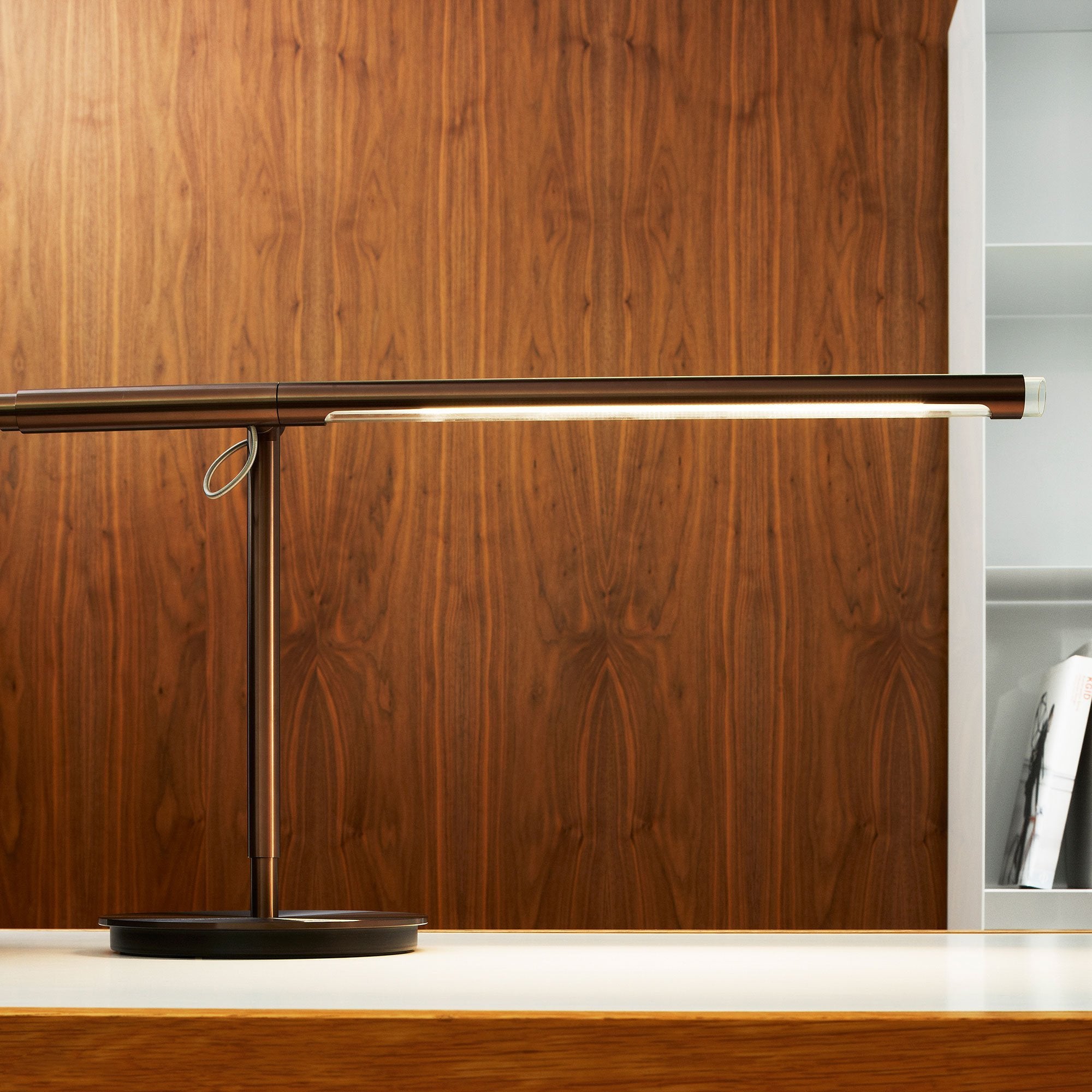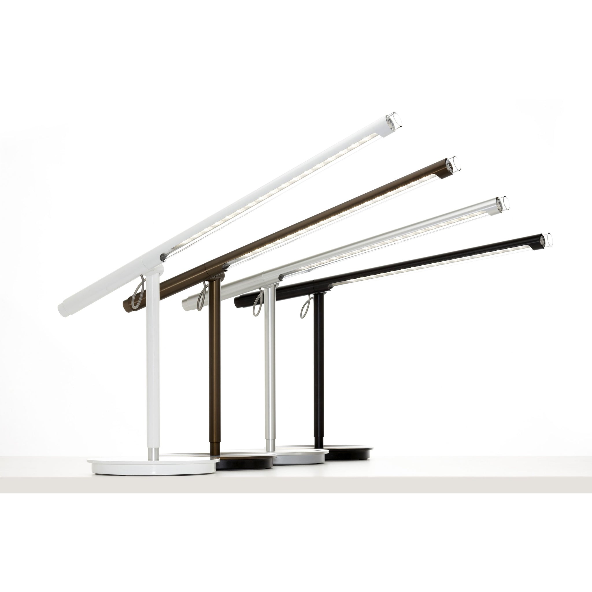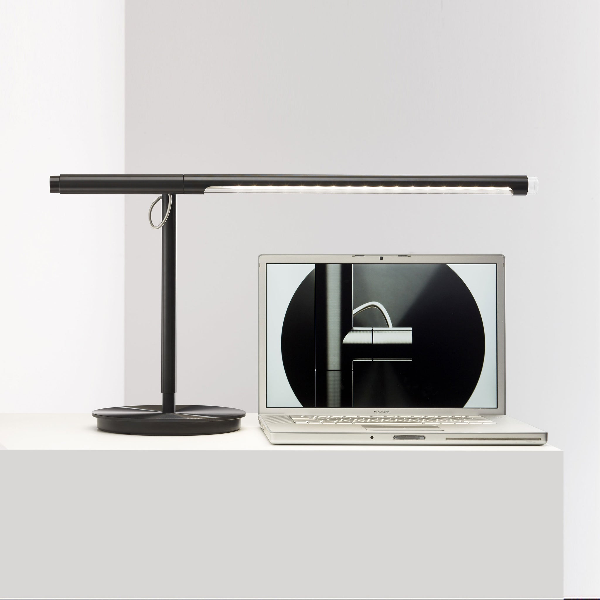 Infusing the glam effect of minimalist modern style, the Brazo LED Table Lamp from Pablo creates elegance as well as a superb source of adjustable lighting. LED technology sets up an energy-saving effect in a lamp with a streamlined design and flexible positions. For a home office desk, end table, or nightstand, this low-profile, high-class table lamp suggests a modern studio aesthetic.