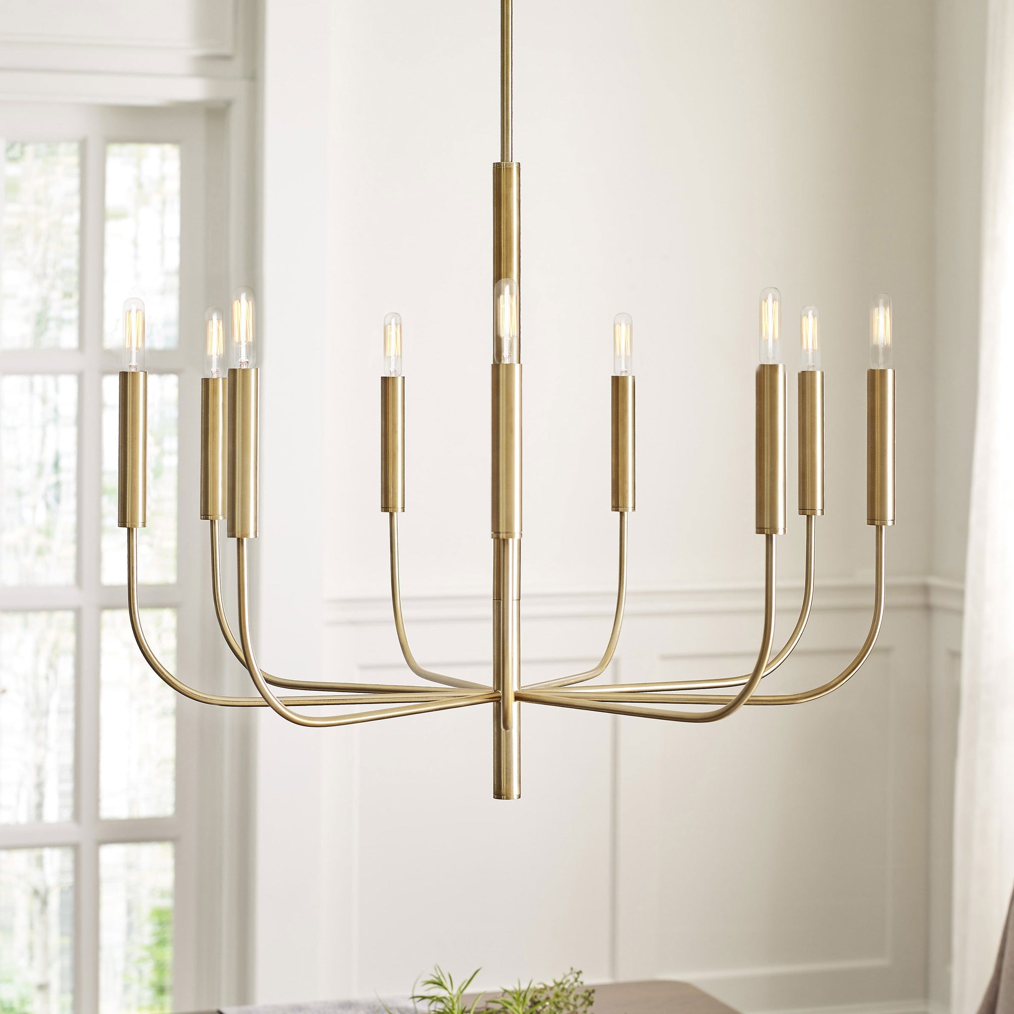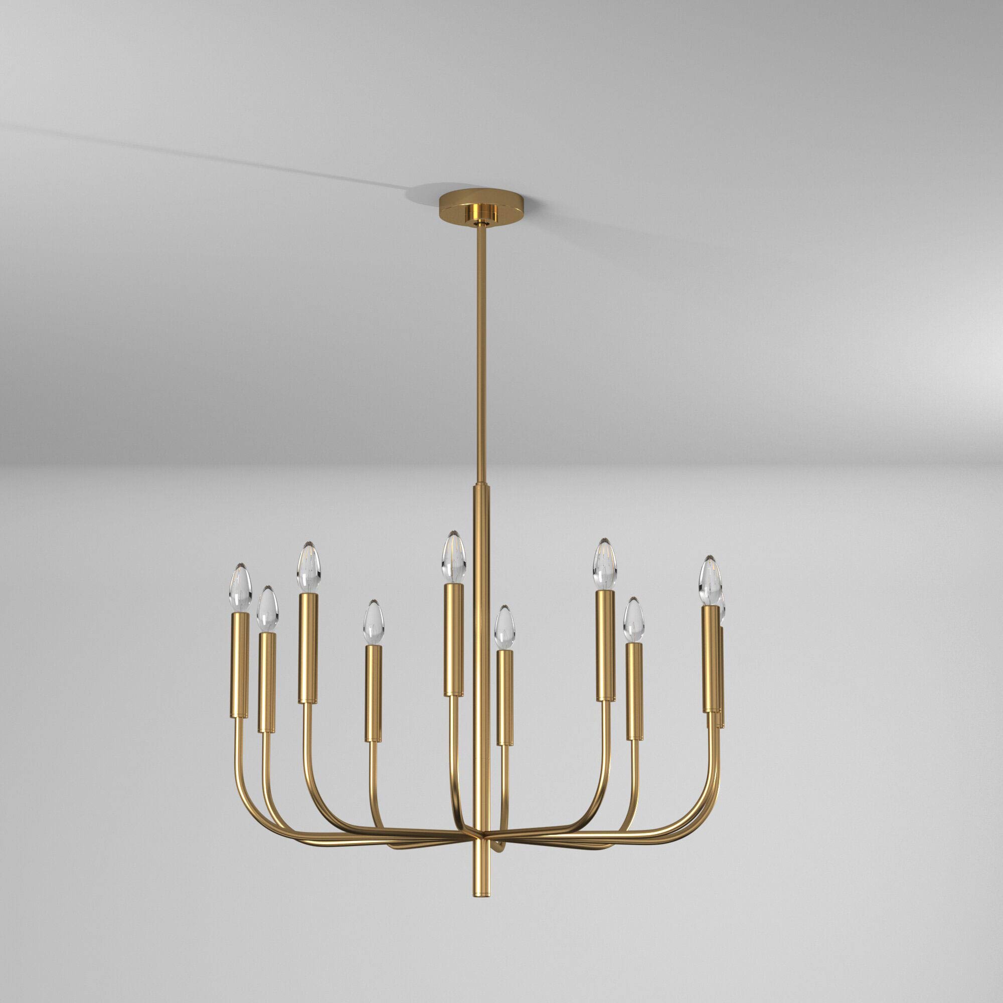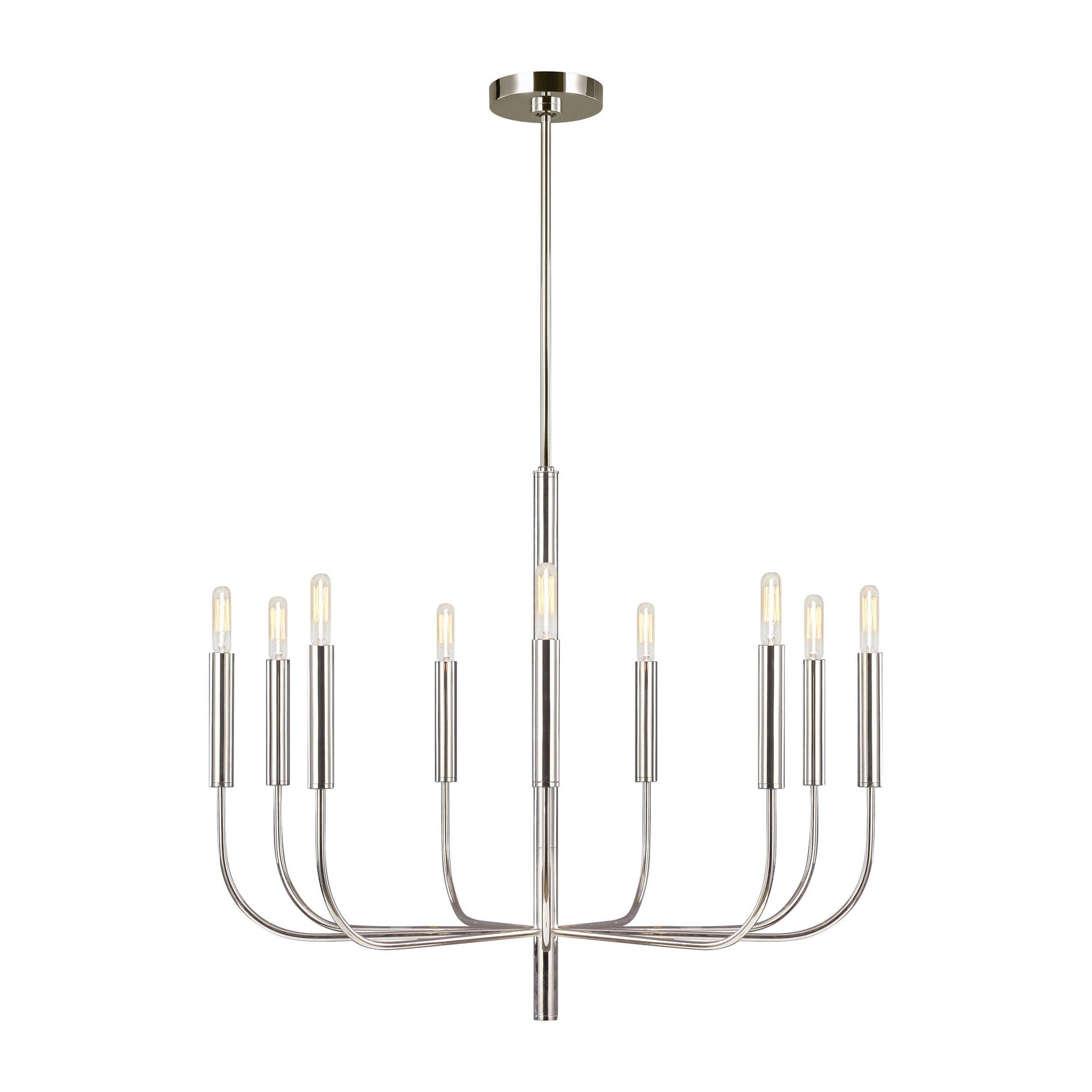Slim lights evoke the candles that decorated classic chandeliers while adding a modern update to the Brianna Chandelier from Visual Comfort Studio.