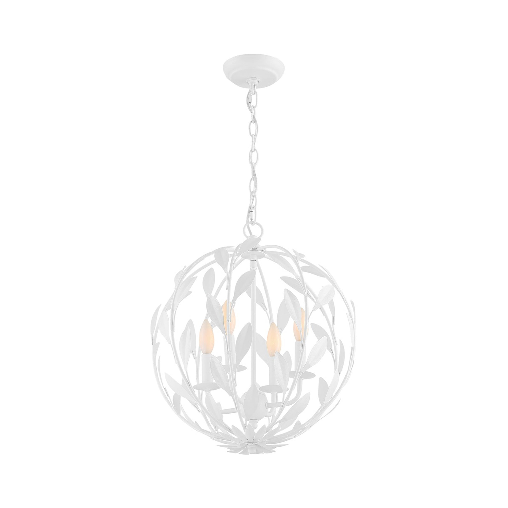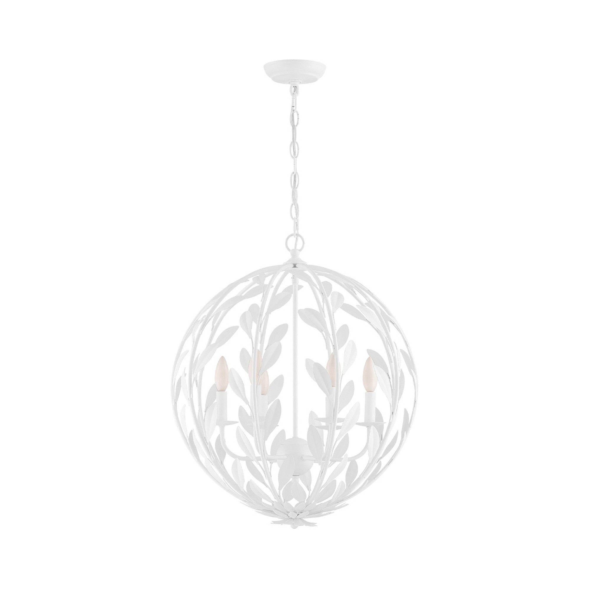 The slightest hint of retro fare offers nostalgic charm to the Broche Sphere Chandelier from Crystorama. Easy and organic framing of metal and wrought iron creates a spherical openwork shade with climbing leaf vines, articulated to add texture. Interior candelabra lights keep the romantic vintage vibe alive.