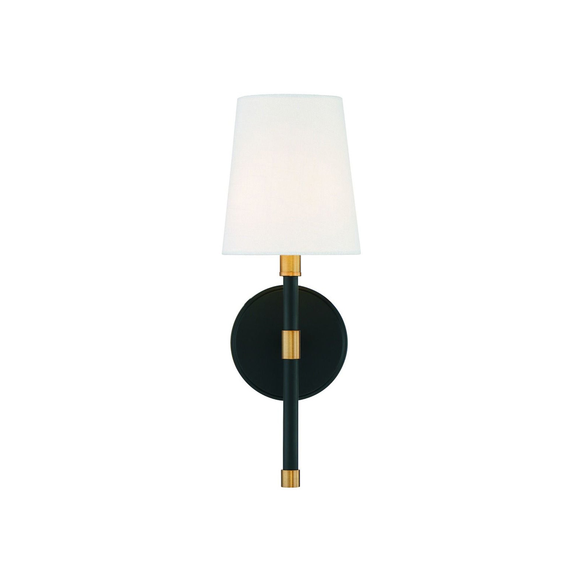 Create simple elegance in lighting with a fixture that suits both modern and transitional design schemes. The Brody Wall Light from Savoy House builds from a classic emulation of the table lamp, adding a simple metal arm and round wall plate dressed up with chic contrasting accents. A fabric shade completes the streamlined look with a special brand of fashion-forward style.