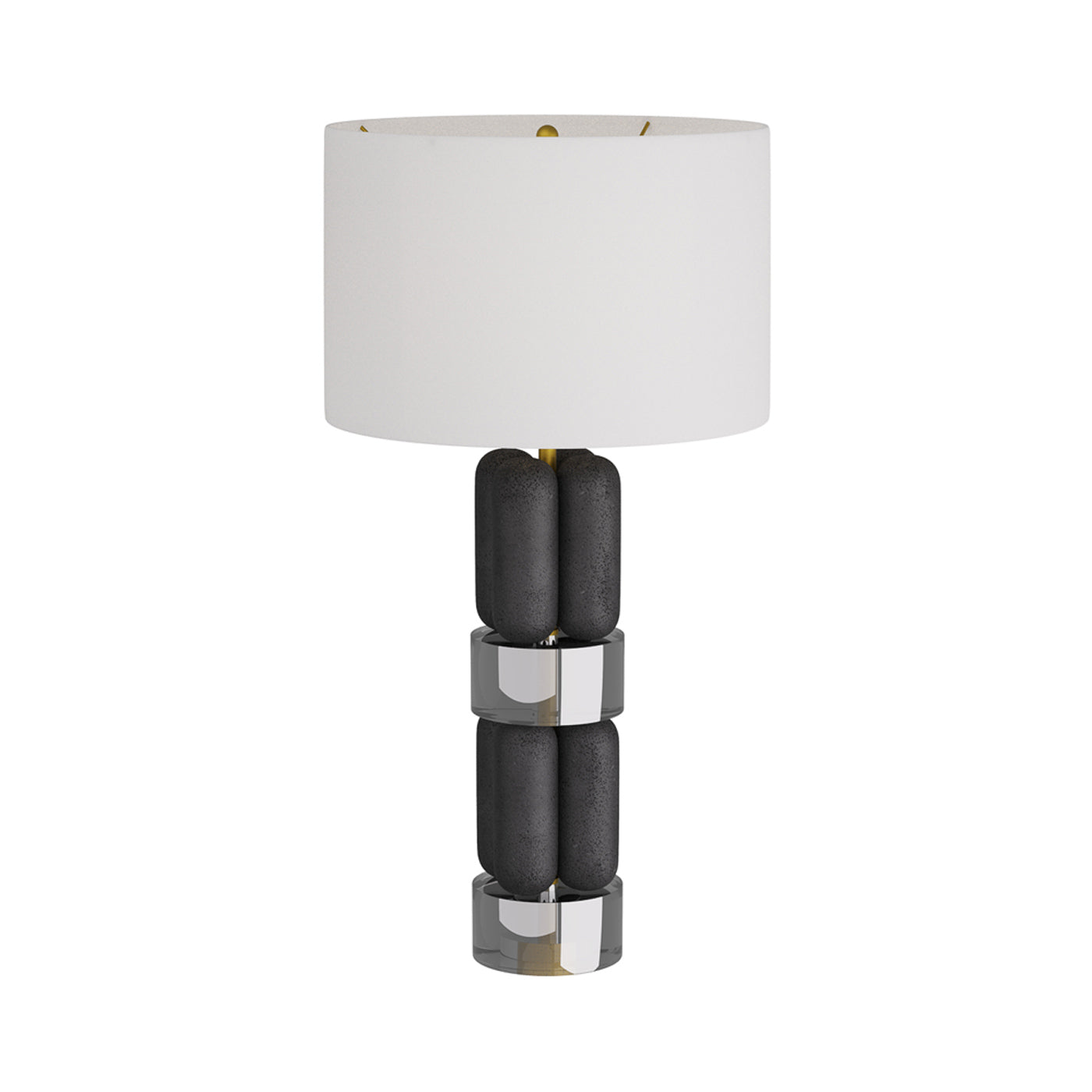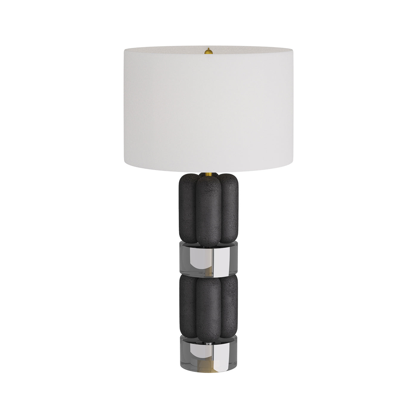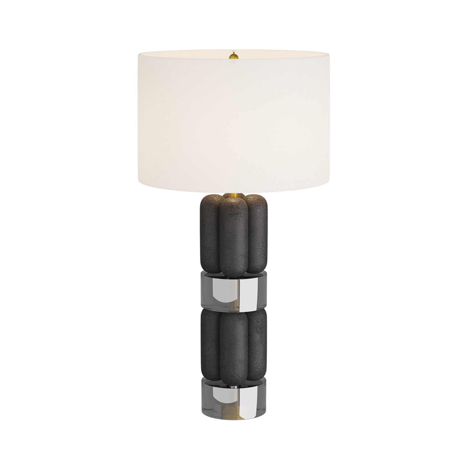 The Bronson Table Lamp from Arteriors brings into focus the powerful design creds of shaping and gritty materials. An extraordinary source of soft illumination, this lamp blends tiers of charcoal rice stone composite with smoked crystal elements, upending conventional style concepts. Refresh a living room or bedroom with a sharp, sophisticated lamp that makes a compelling statement.