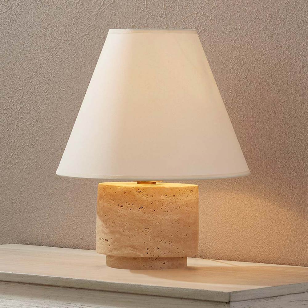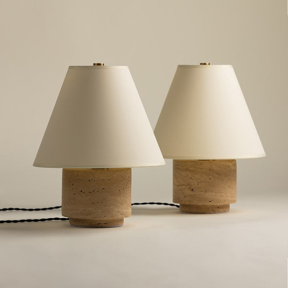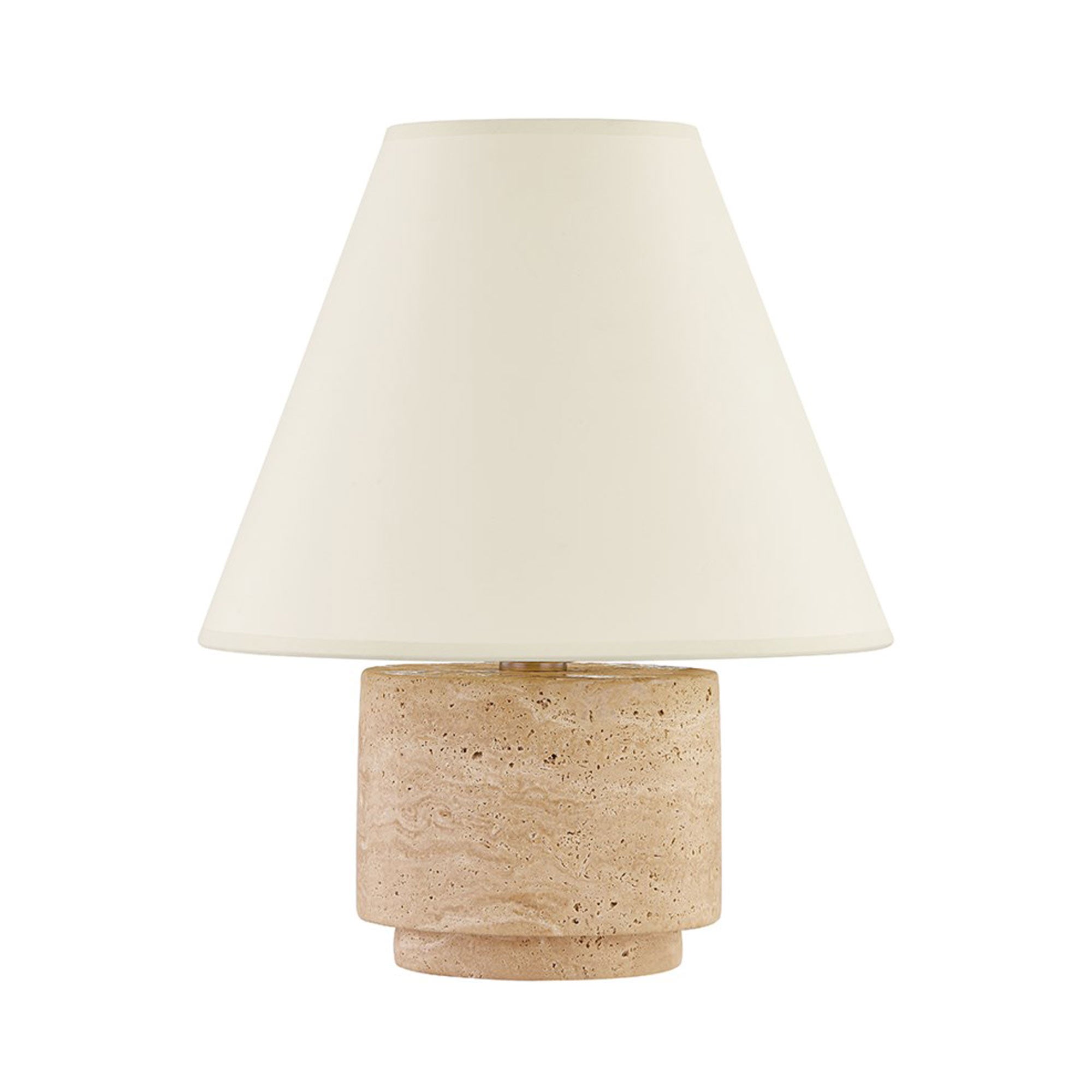 The depth of organic artistry shows through in a decadent lamp created for laid back yet stylish living spaces. With a tapered paper shade, the Bronte Table Lamp from Troy Lighting features a natural travertine base with a visually enticing stacked design. Patina brass accenting and an oversized shade deliver extra details to emphasize the crafty ambiance of a tasteful lamp.