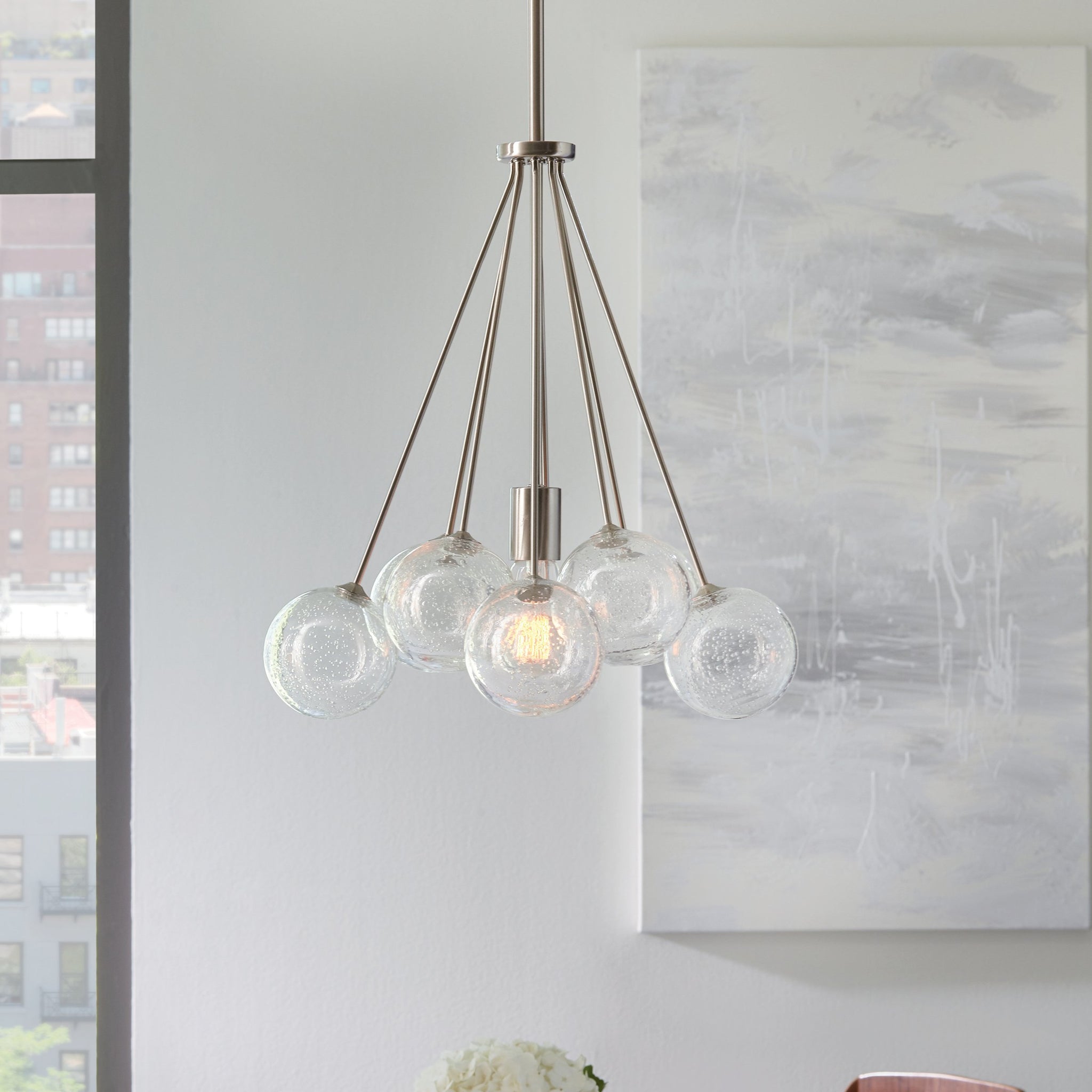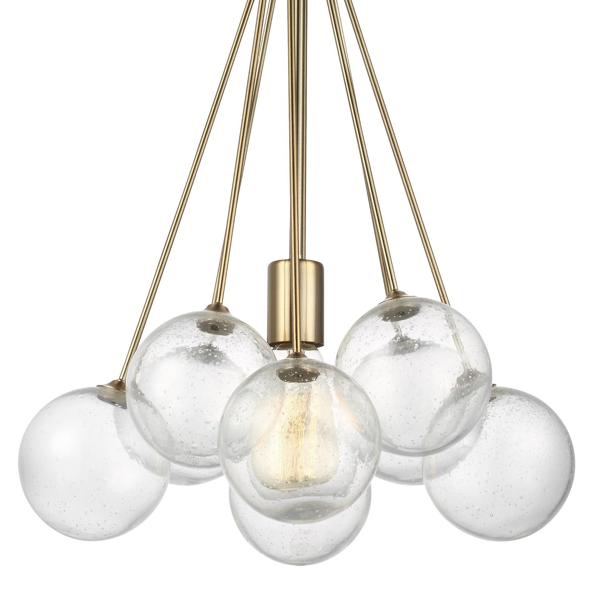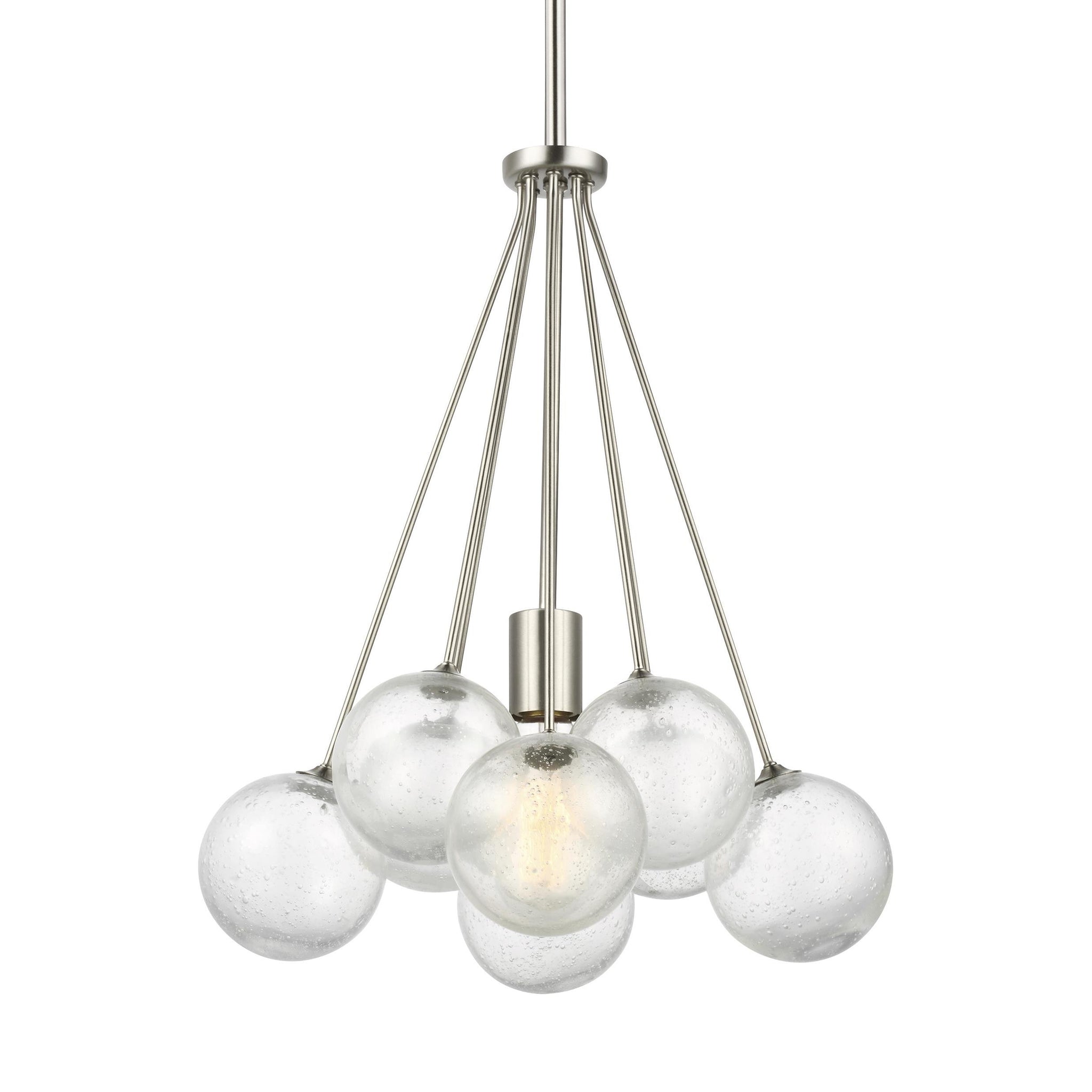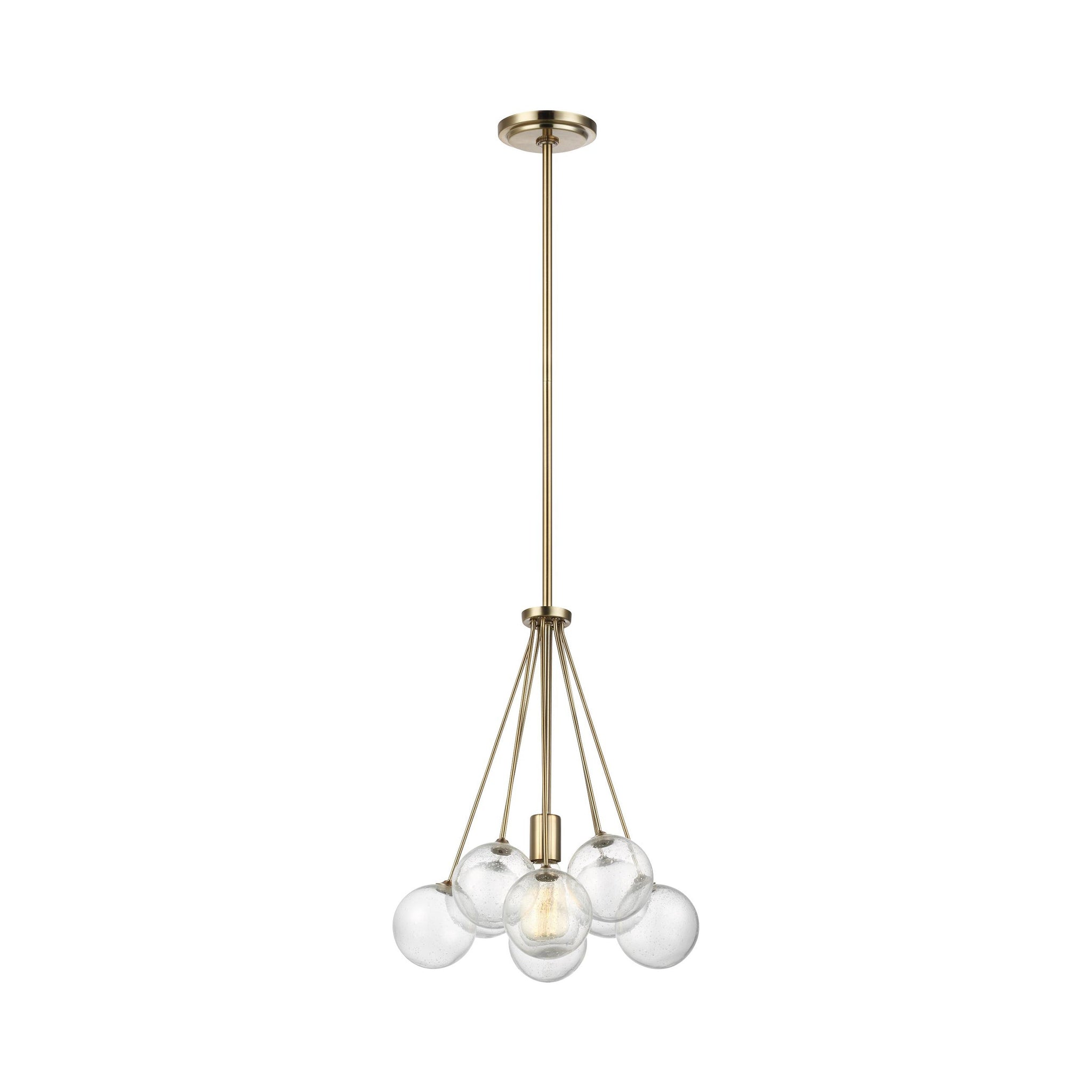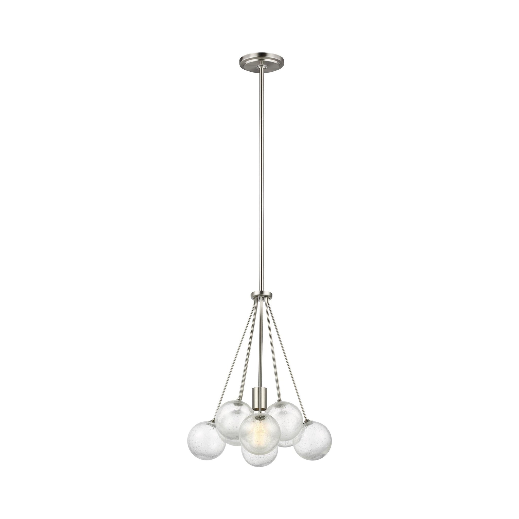 The Bronzeville Pendant Light supplies ample lighting for your daily needs, while adding a layer of today's style to your home's décor. Bronzeville brings a daring, upscale element of mid-century modern design to any space. Hand blown, Seeded Glass globes encircle warm, glowing, filament lamps, diffusing the light to create a serene ambiance of light and shadow. Available in two finishes.