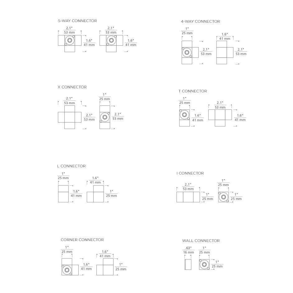 - T Connector, 4 Way Connector, 5 Way Connector: 2.1"W X 1.55"H