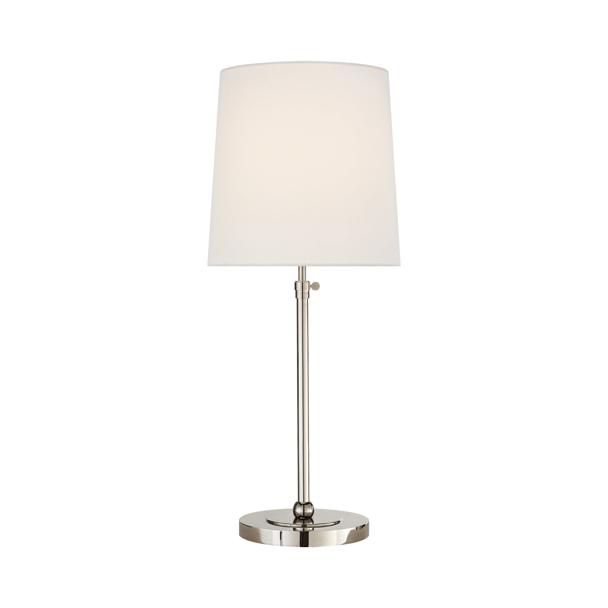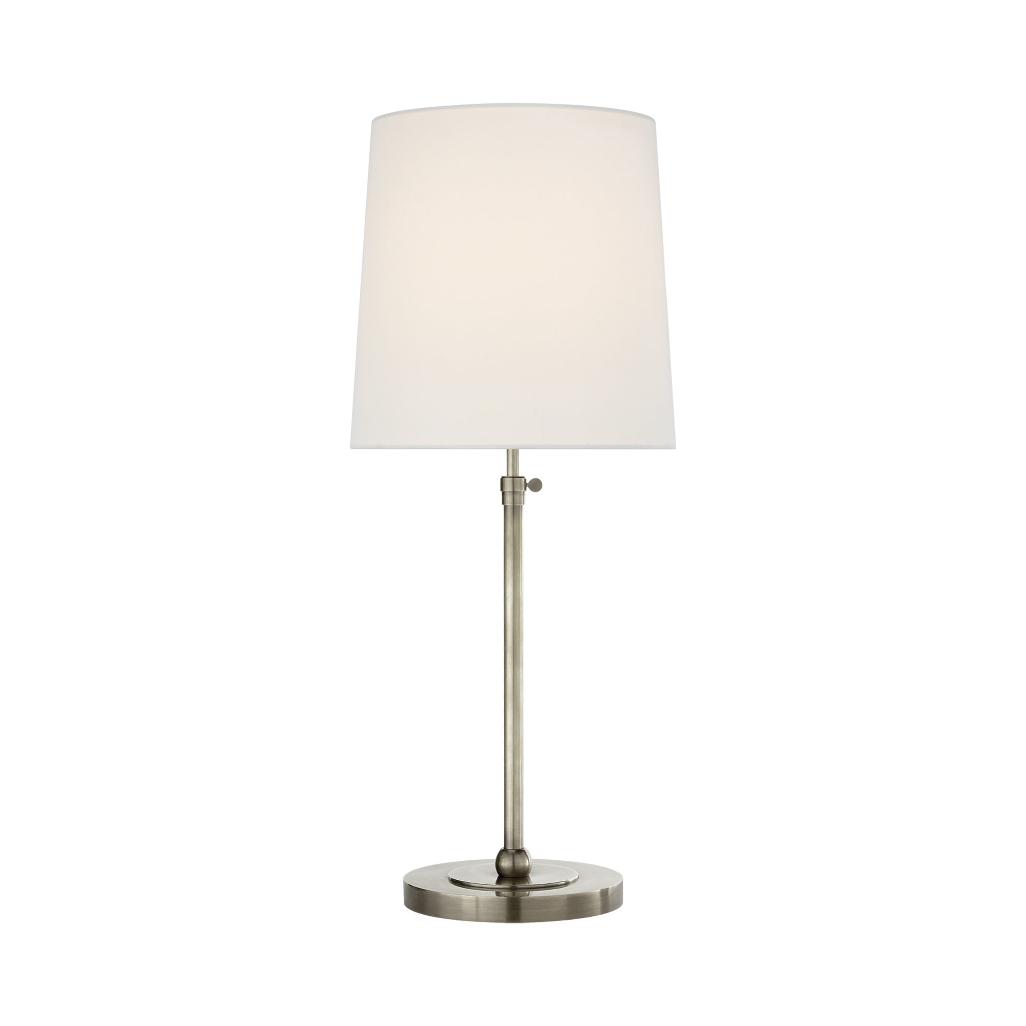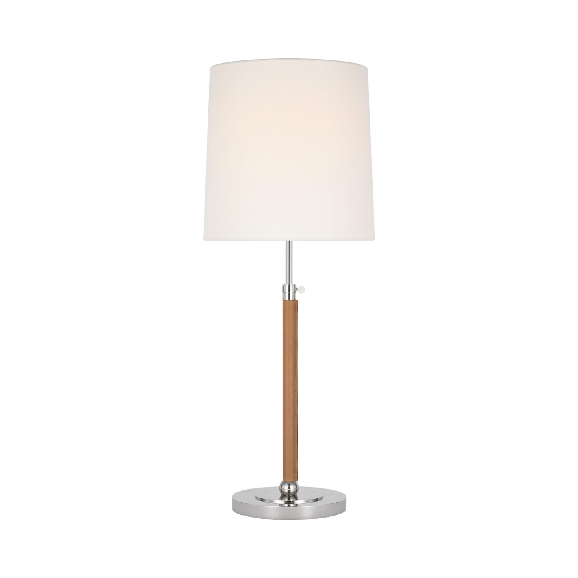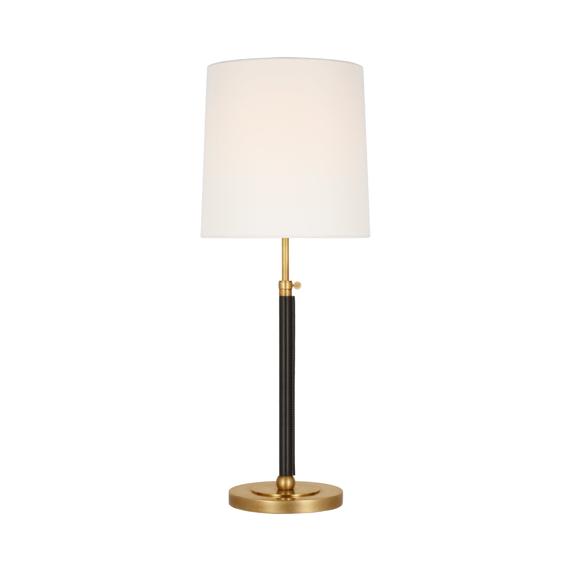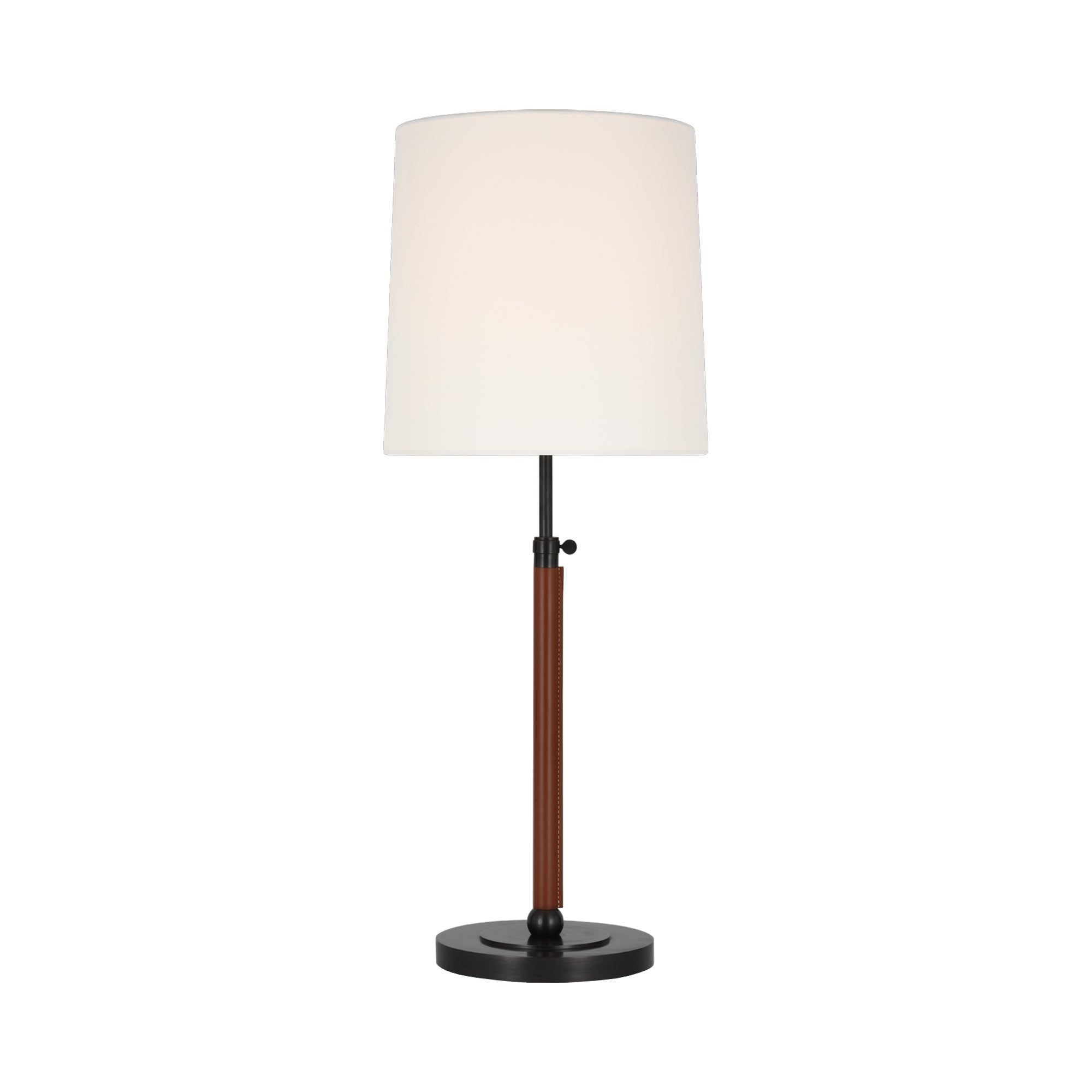 Building on simplicity in design, the Bryant Table Lamp from Visual Comfort Signature commits to a sleek style and utility combined. Metal framing with textural accents is minimalist, with adjustability to raise and lower its level of illumination glowing through a linen shade.