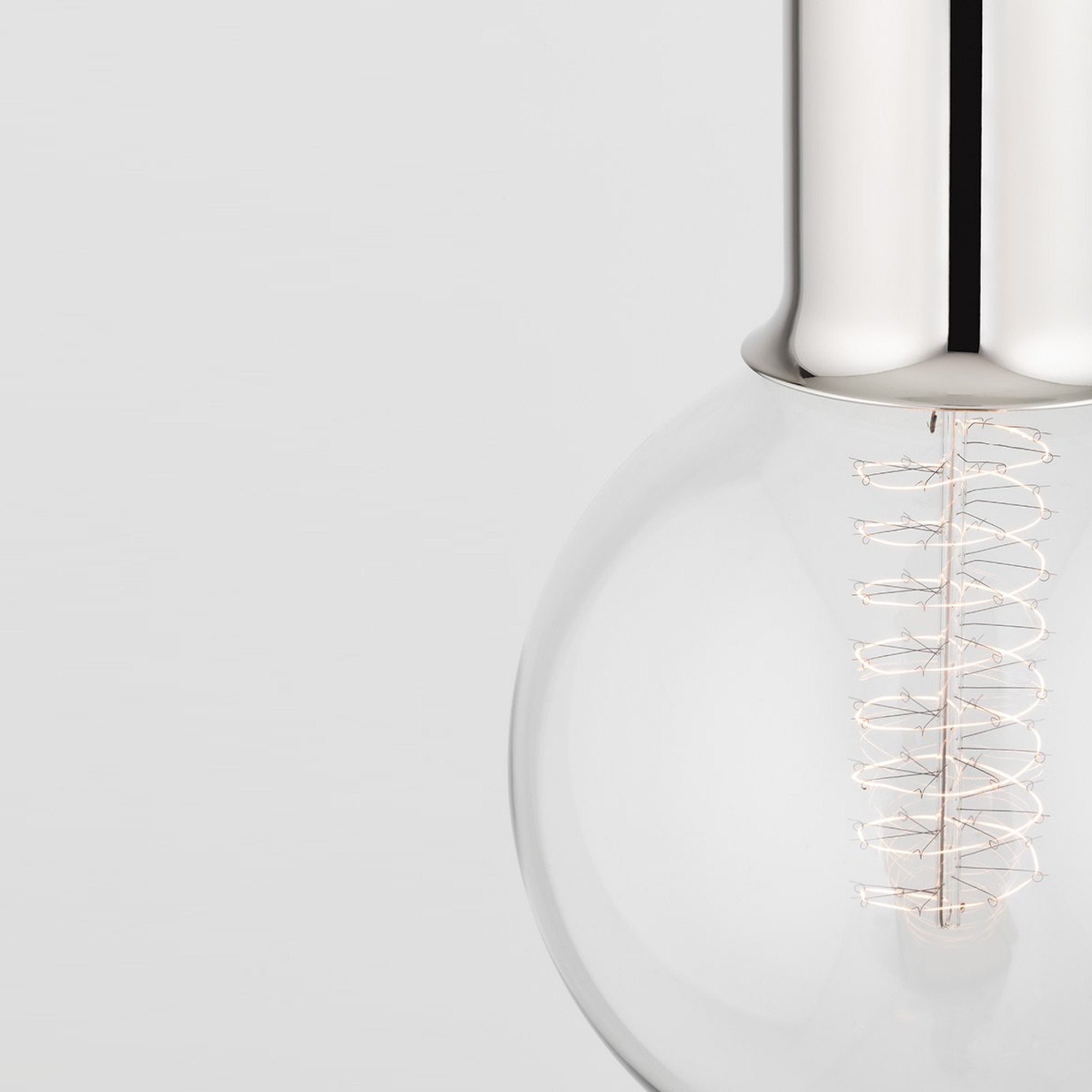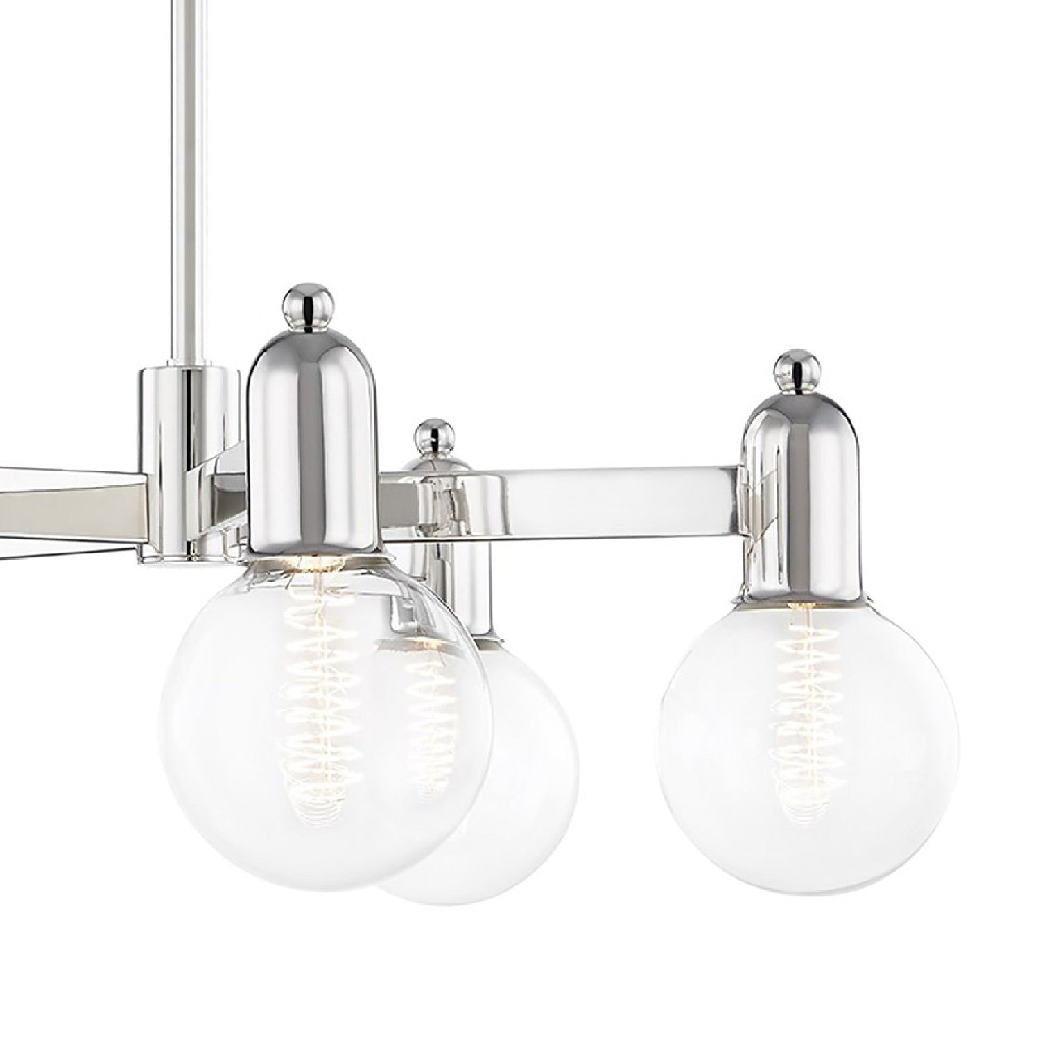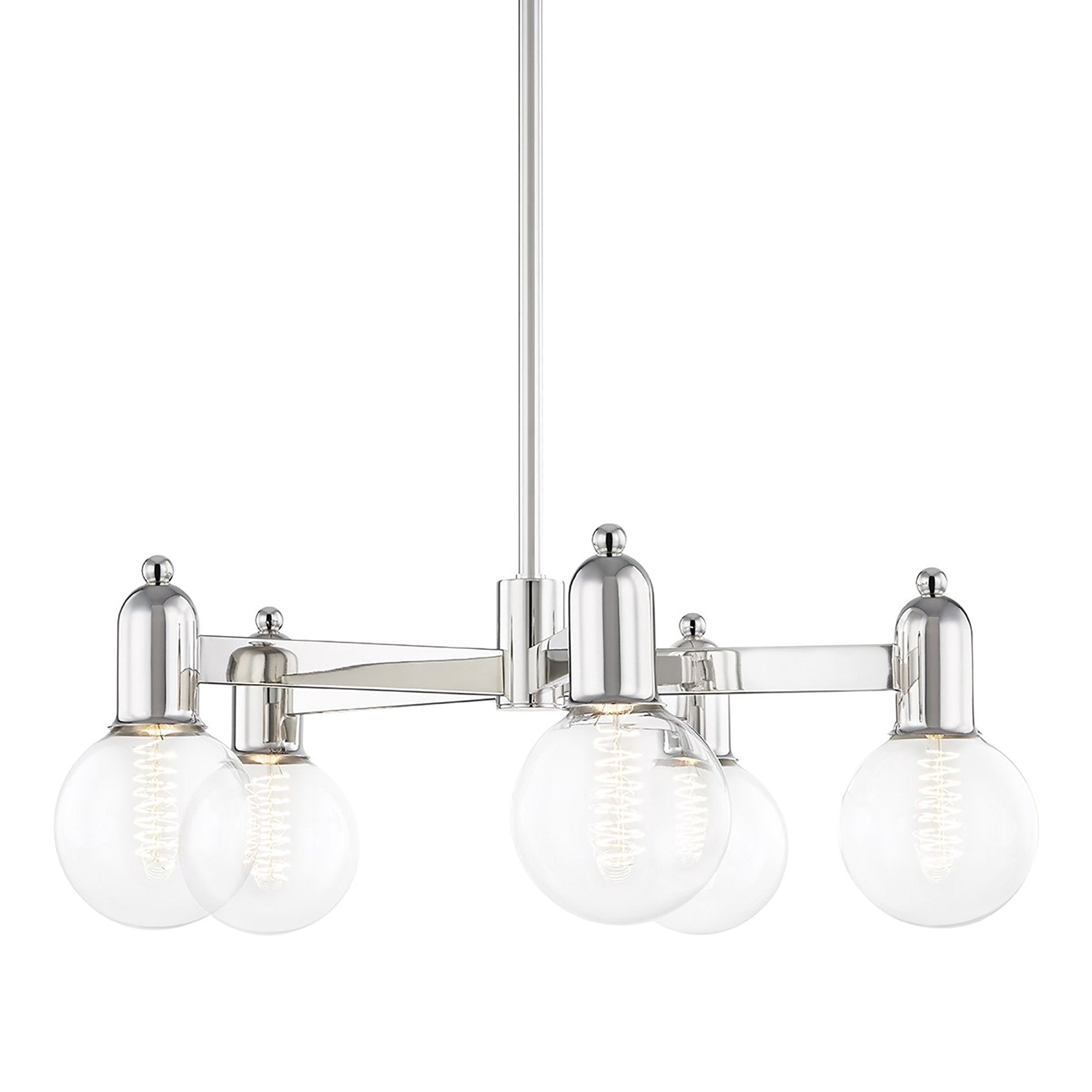 Enhance the lighting options of your home with the exposed globe-shaped bulb design of this Bryce Chandelier from Mitzi. The five bulbs from the bell-shaped arms in Polished Nickel finish lend a somewhat whimsical, soft industrial charm to any home, perfect for a front foyer, dining room, or even modern home library.