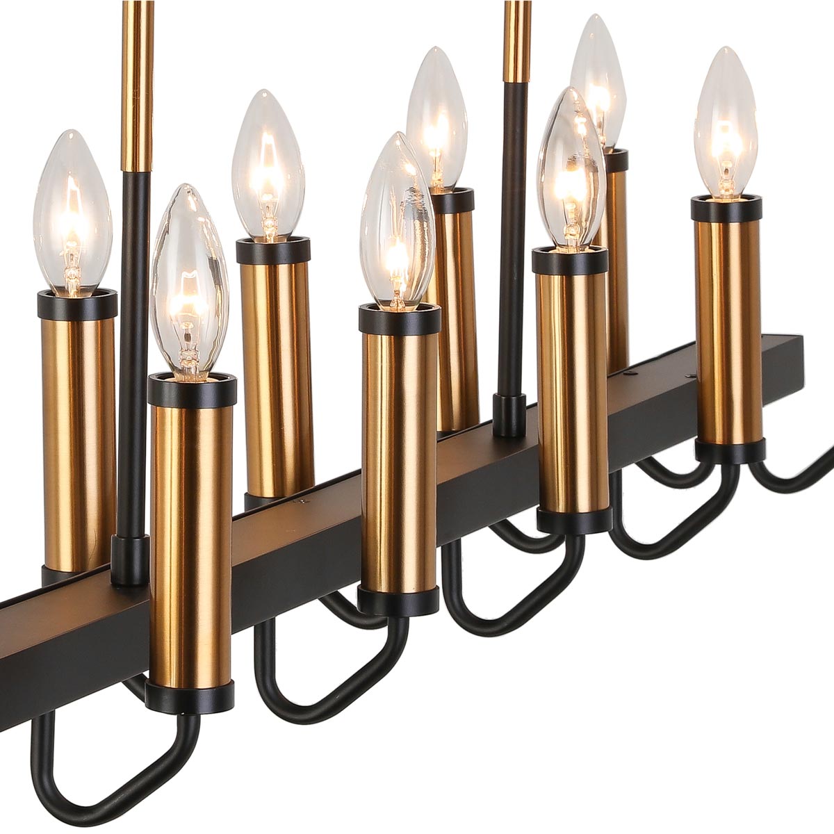 Illuminate a long formal dining space with this magnificent C2061 Linear Pendant Light from Vinci Lighting, designed in a strikingly contrasted finish combo of stark black and aged brass that presents a luxe aesthetic. Understated with a simple silhouette, a dozen candelabras uphold a brilliant illumination with exposed bulbs in a vintage industrial look and feel.