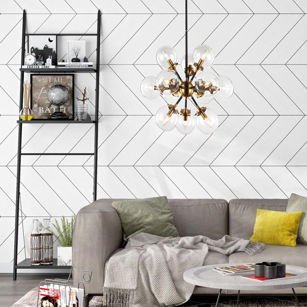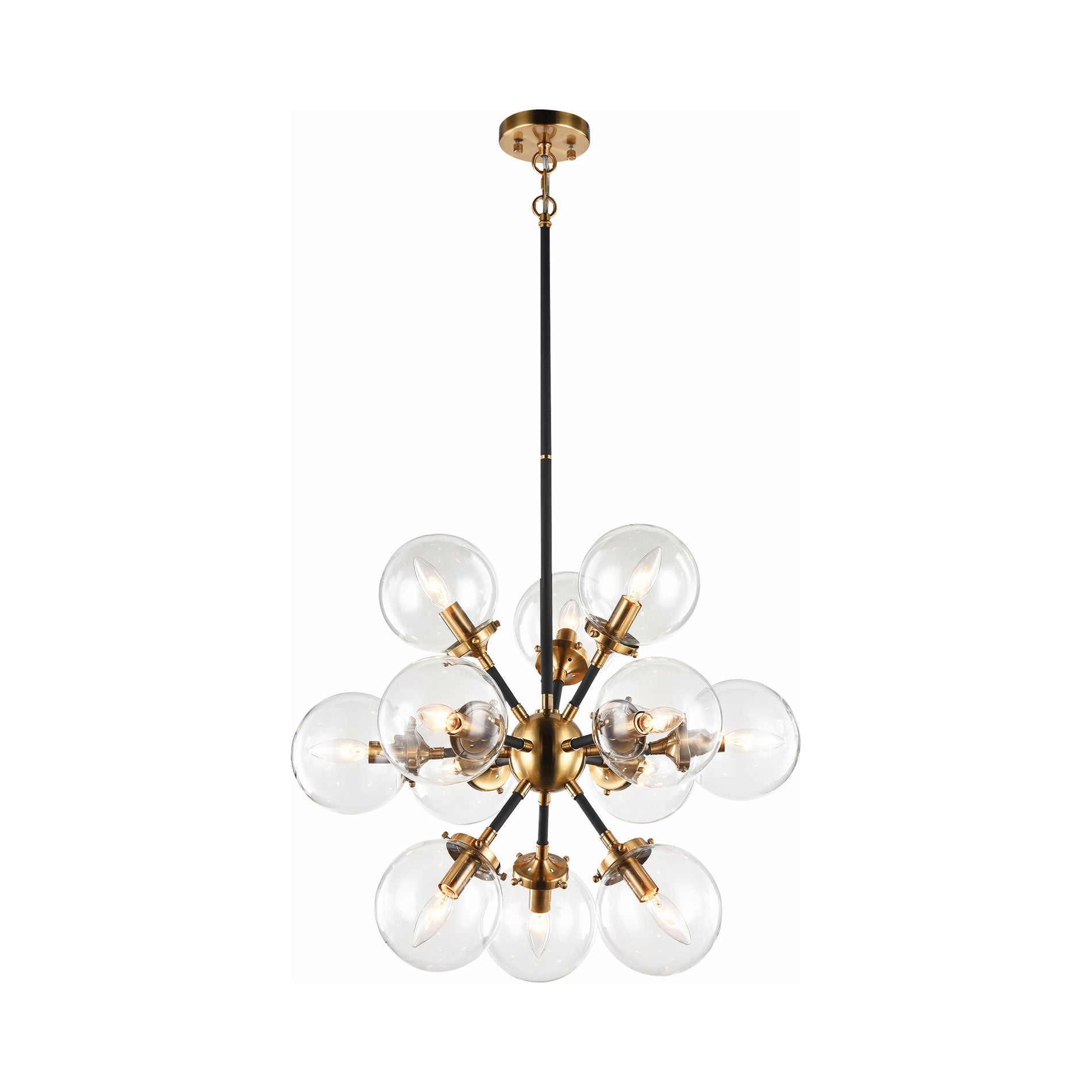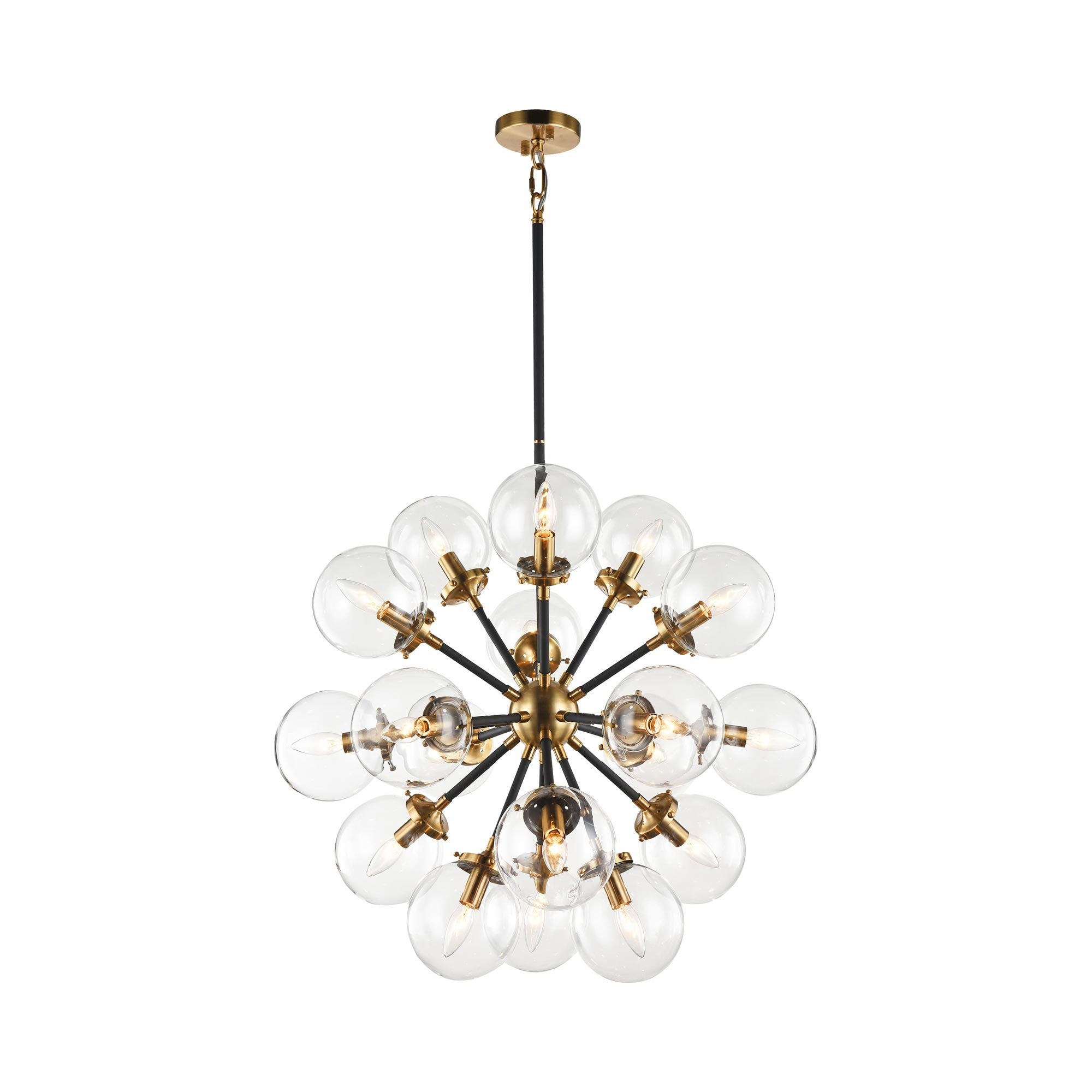 A breathtaking display brought forth in the vintage aesthetic of the energy-efficient C7070 Chandelier from Vinci Lighting offers a magnificent statement piece to maximalist dining room settings. A collection of glass globes situated on black and aged brass batons present a full, textured silhouette, enhanced by metallic accents and a gorgeous glow.