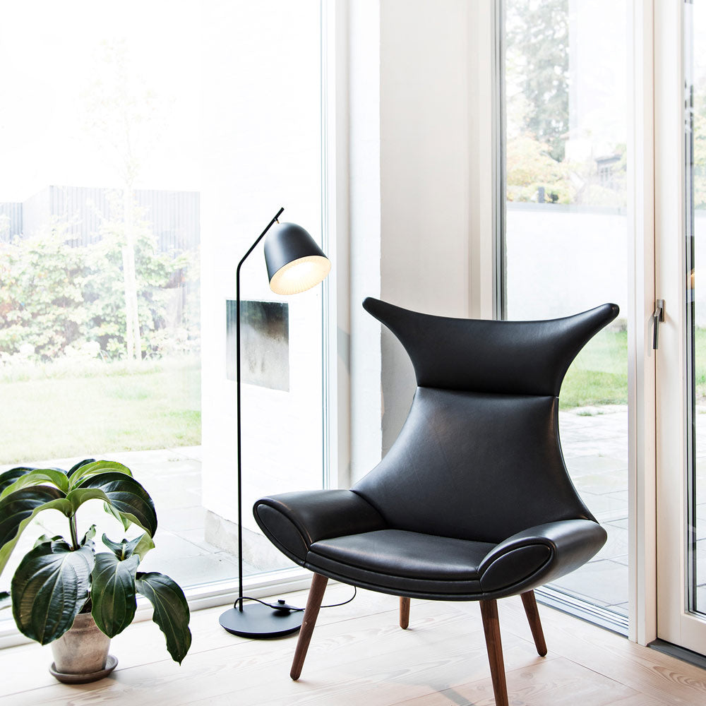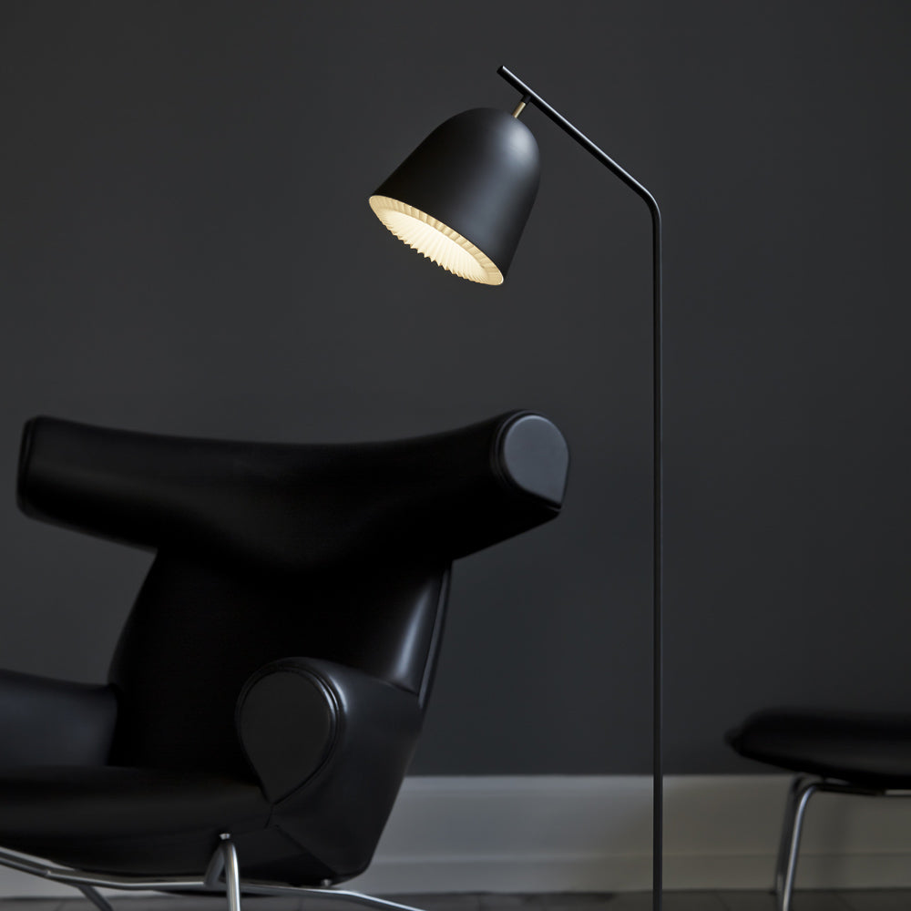 Cache Floor Lamp from Le Klint conquers the challenge of delivering low-key minimalism while infusing sheer style. A version of studio lighting dressed up for designer purposes, this lamp emits bold lighting for reading and accenting in a contemporary space. Metal construction of a sleek, shapely outer shade lined with a hand-folded inner shade offers the benefit of layering.