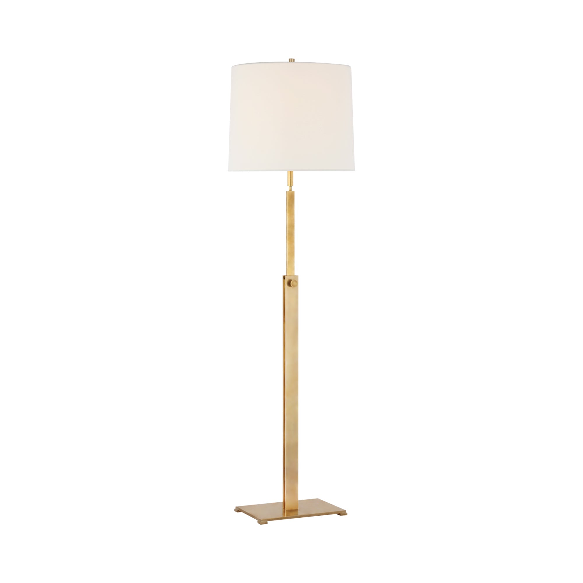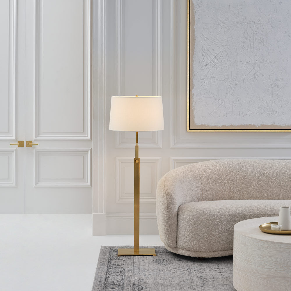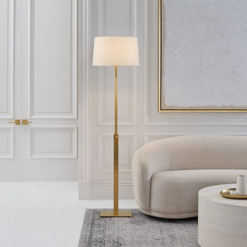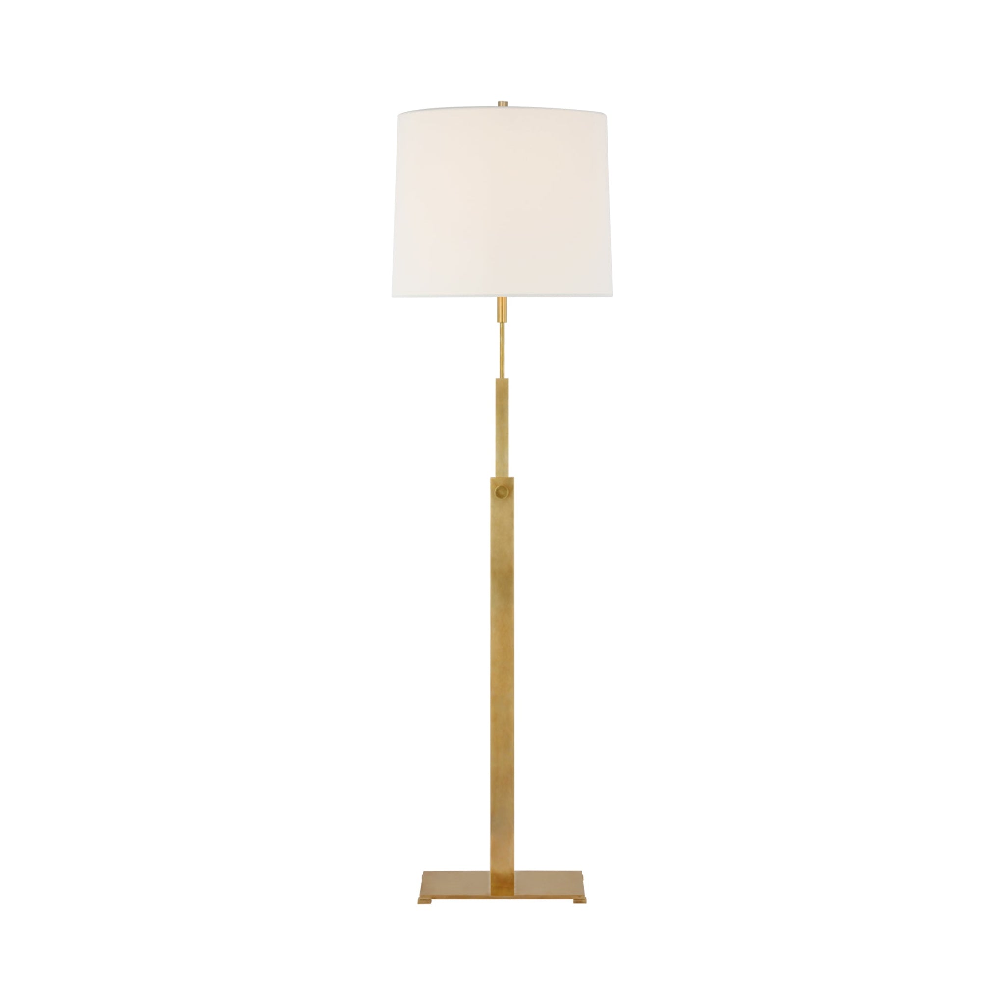 The Cadmus Floor Lamp from Visual Comfort Signature adopts simplicity with a linear aesthetic, employing a machined feature to metal framing. Take advantage of adjustable height settings to deliver illumination at custom levels as it glows through a soft linen shade.