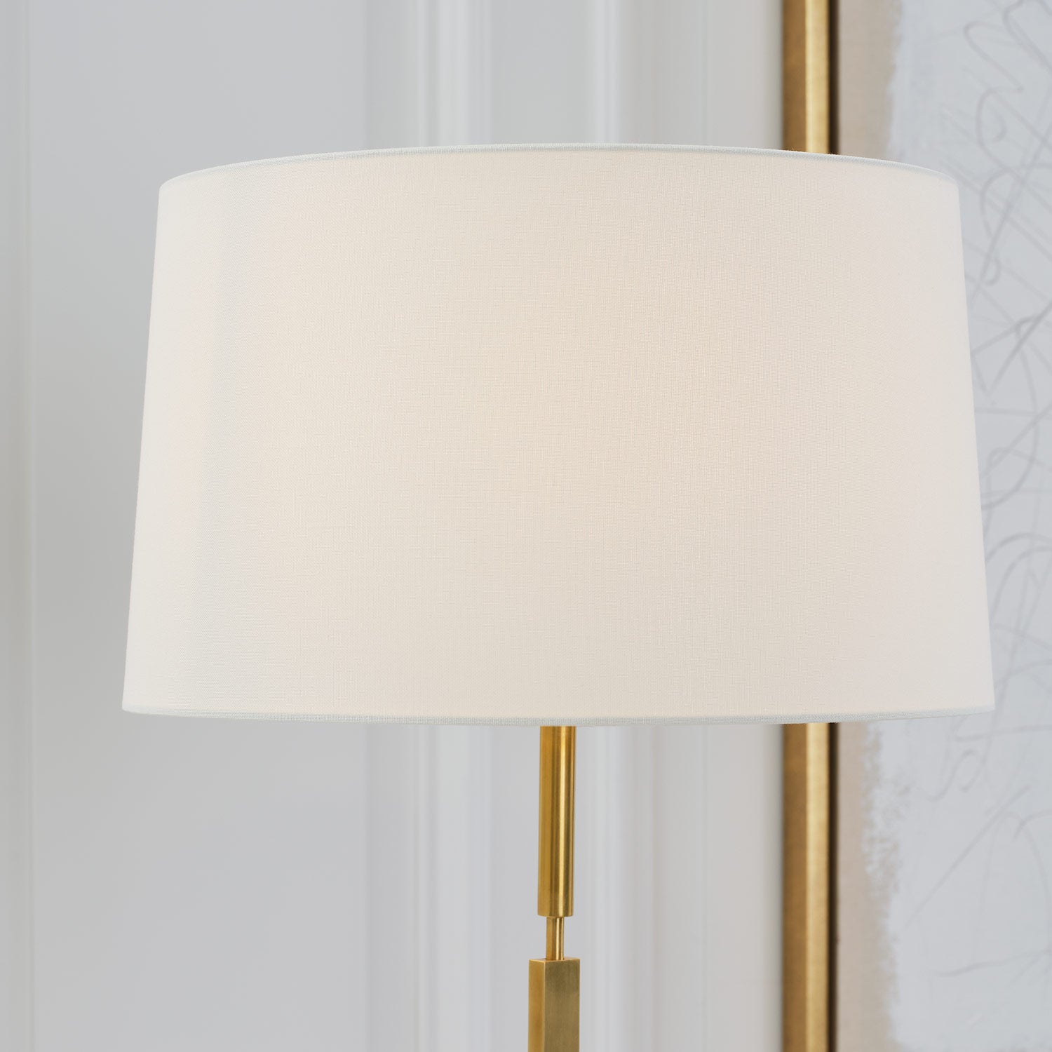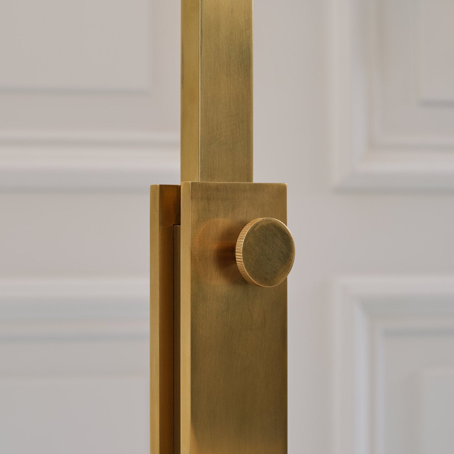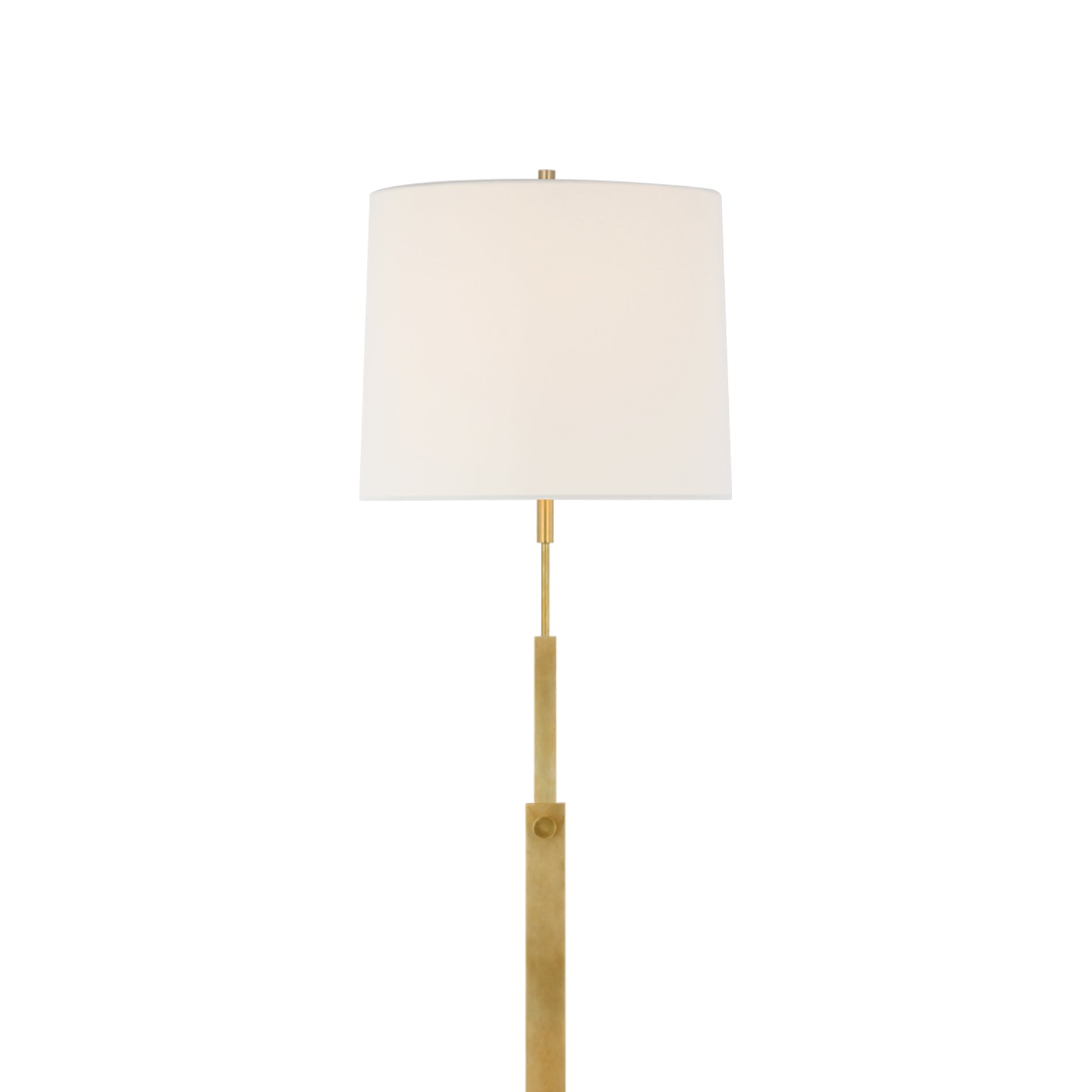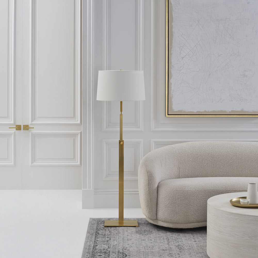 The Cadmus Floor Lamp from Visual Comfort Signature adopts simplicity with a linear aesthetic, employing a machined feature to metal framing. Take advantage of adjustable height settings to deliver illumination at custom levels as it glows through a soft linen shade.