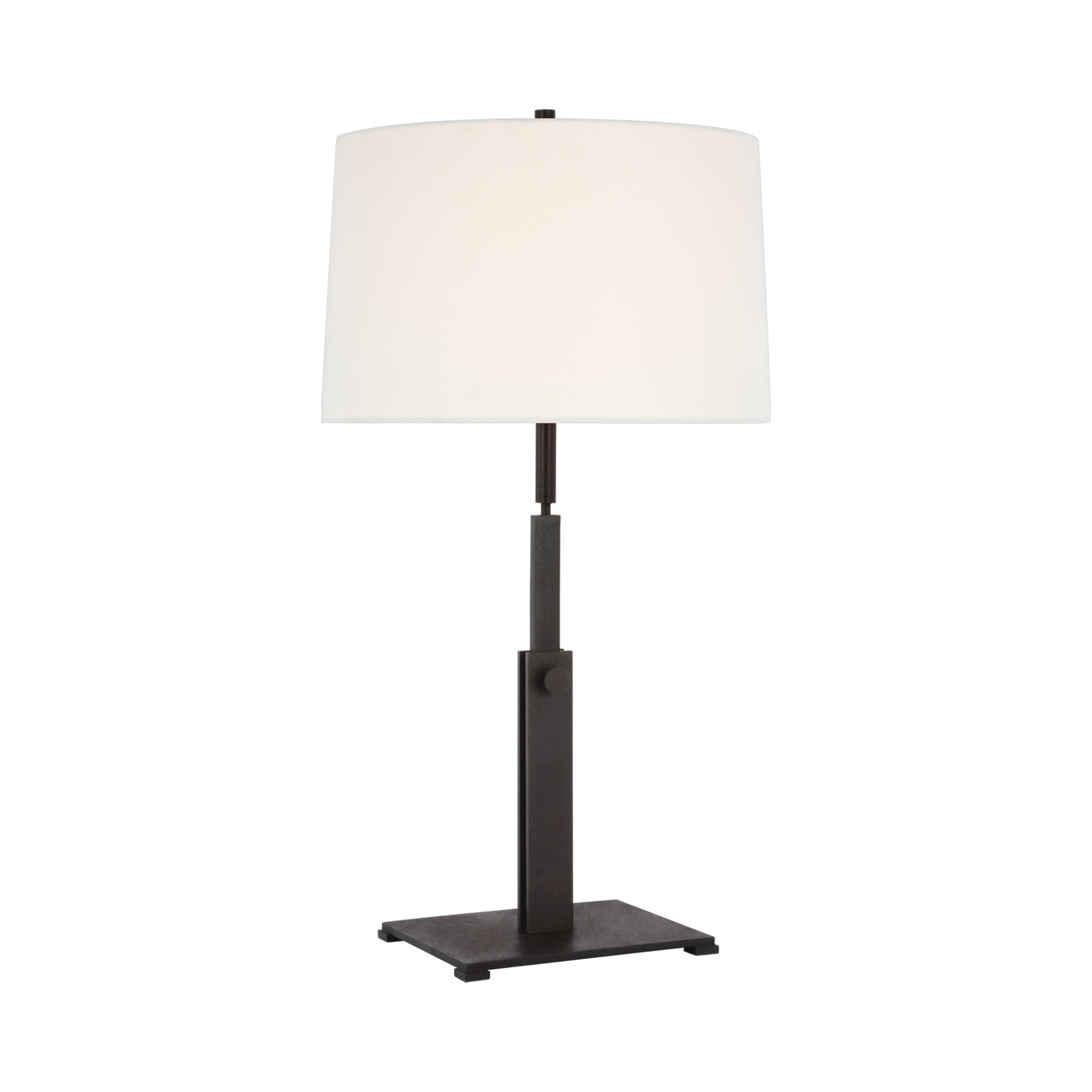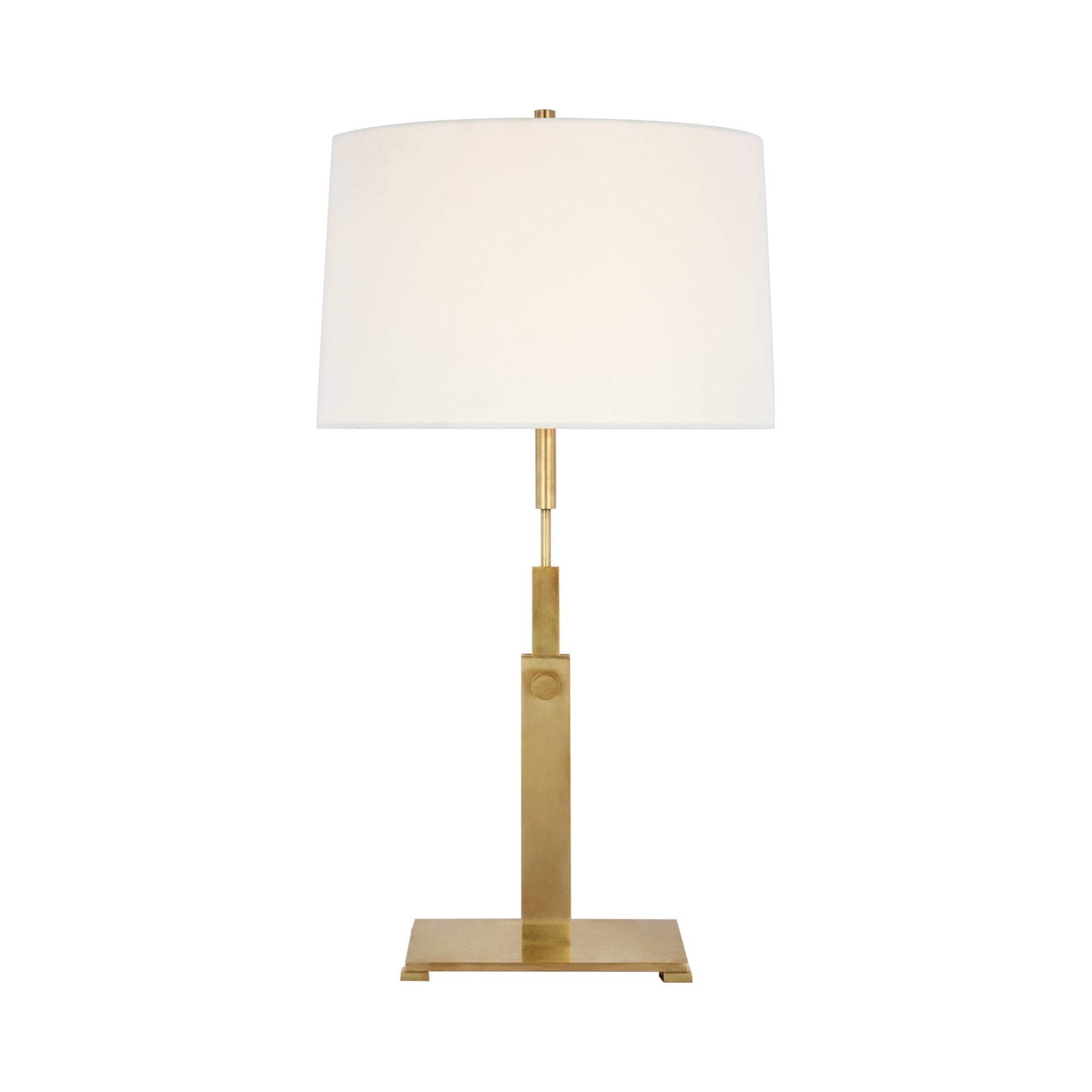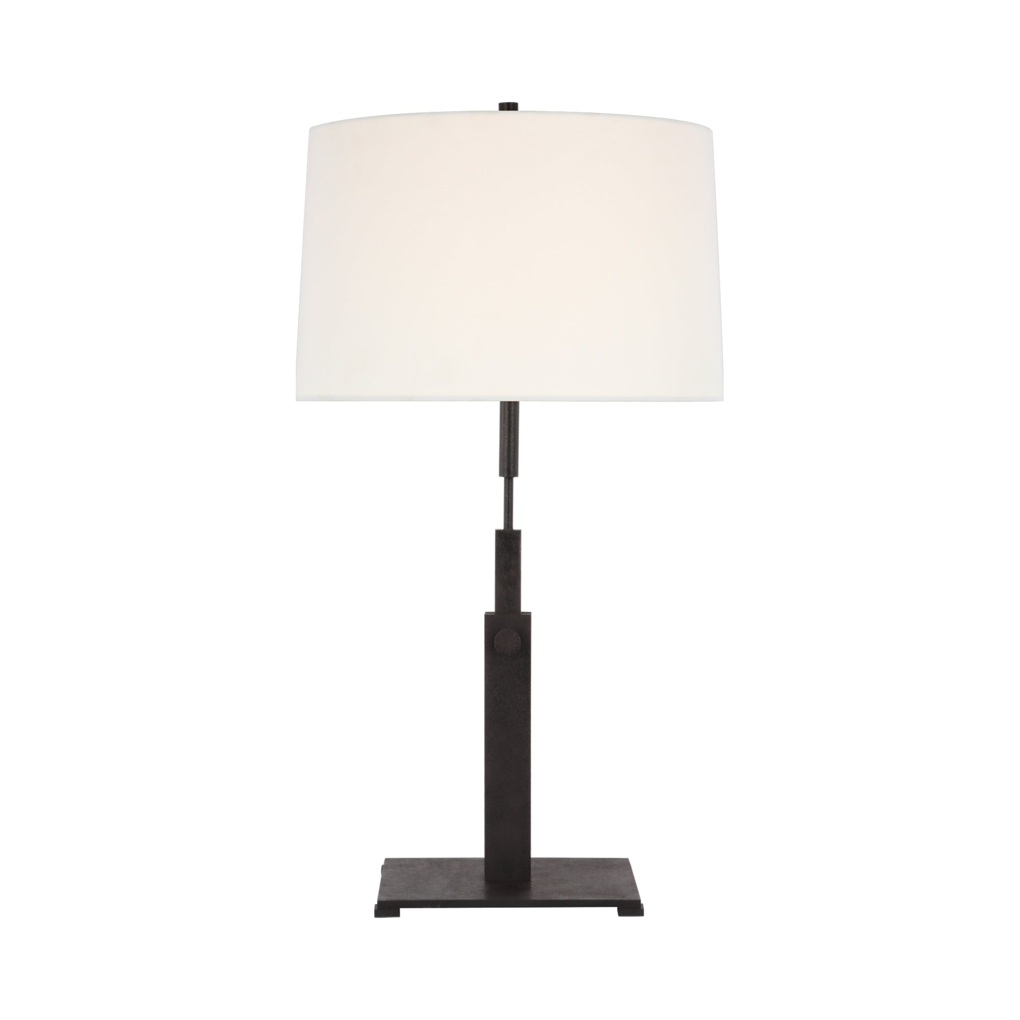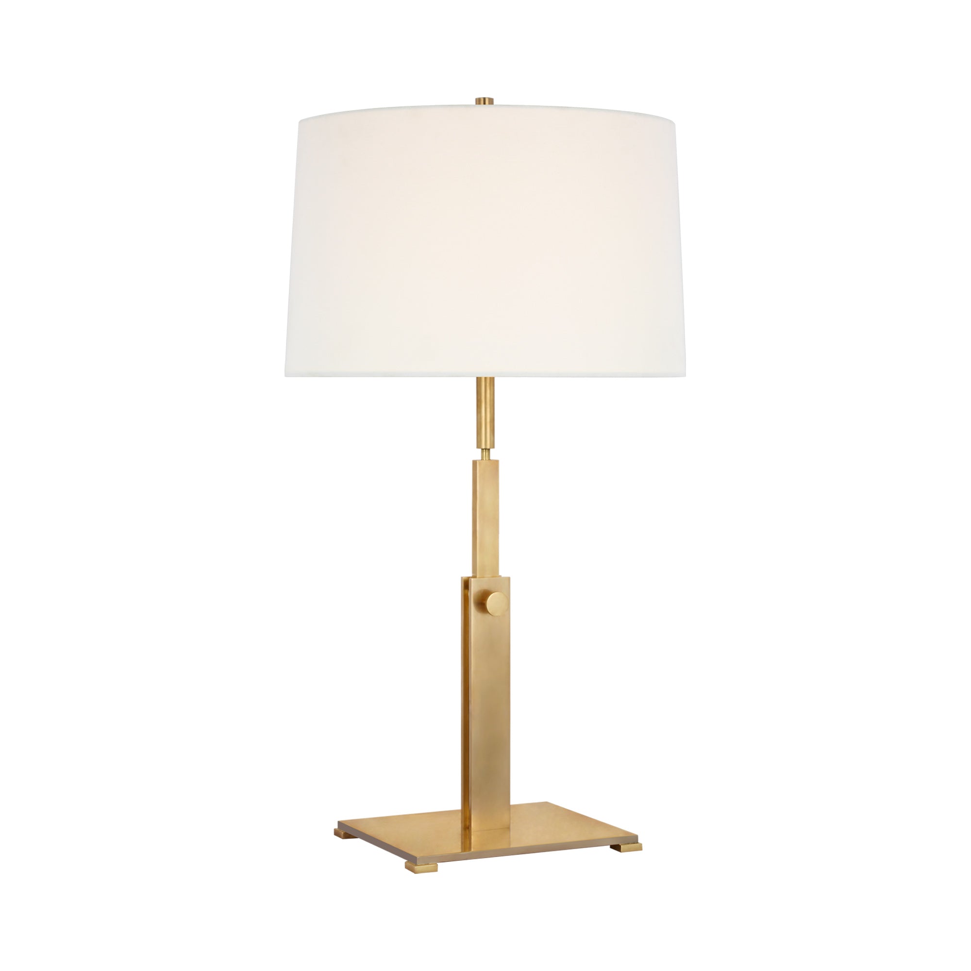 Subtle details move the needle on a basic minimalist design in a lamp with surprising elegance. Metal construction embellishes the Cadmus Table Lamp from Visual Comfort Signature, creating low-key tapered silhouetting and a conventional yet beautiful linen shade. Adjustable height settings allow a customized lighting level, perfecting the function of this fashionable lamp.