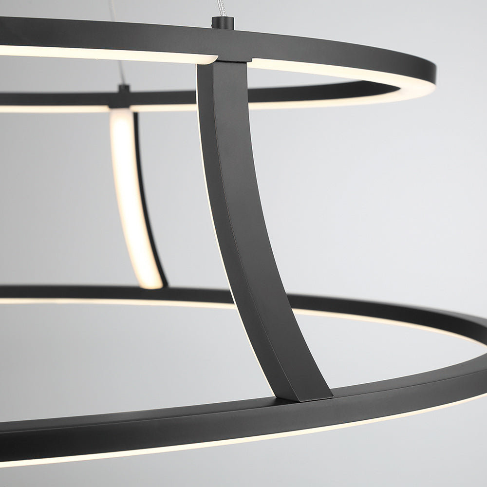 The Cadoux LED Chandelier from Eurofase illustrates how basic shaping takes on a new function in design. Integrated LED strips align the edges of an open metalwork frame with a chic fine art aesthetic. Keep it simple with a decadent fixture that emits energy-efficient lighting in a dining room, living area, or entryway.