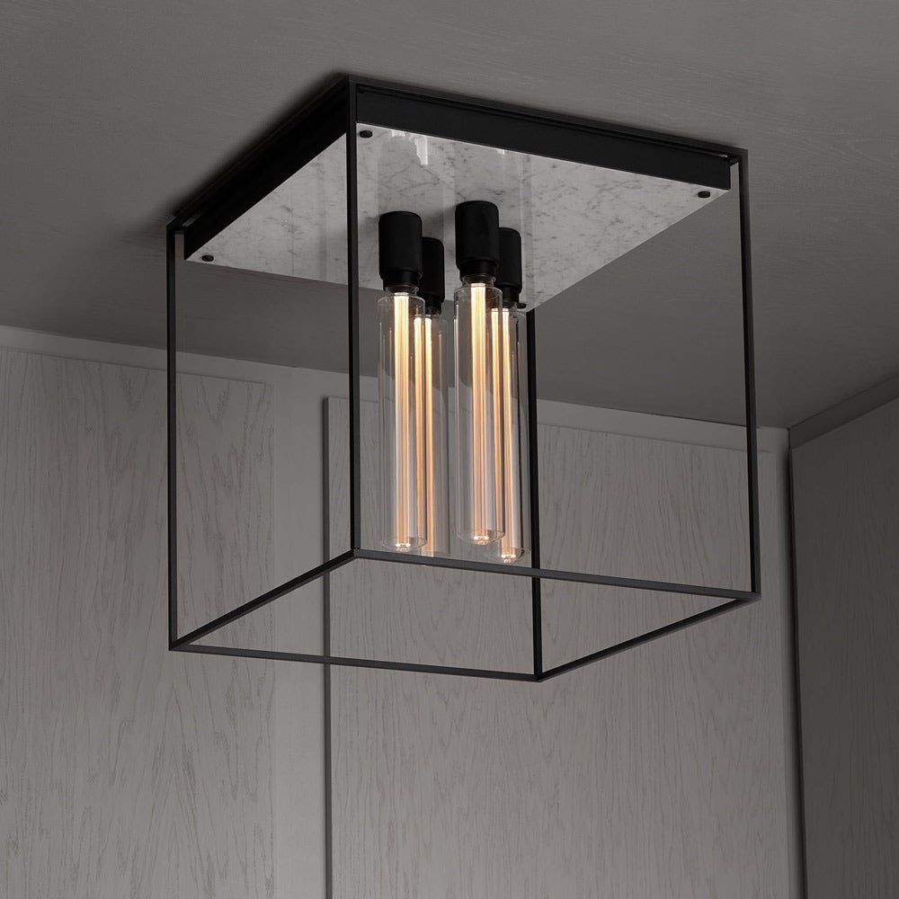 The glam influence of conventional style is evident in a light fixture with bold personality. Openwork metal framing creates the Caged Multi Light Flush Mount Ceiling Light from Buster + Punch, a captivating twist on tradition and a source of energy-efficient lighting.