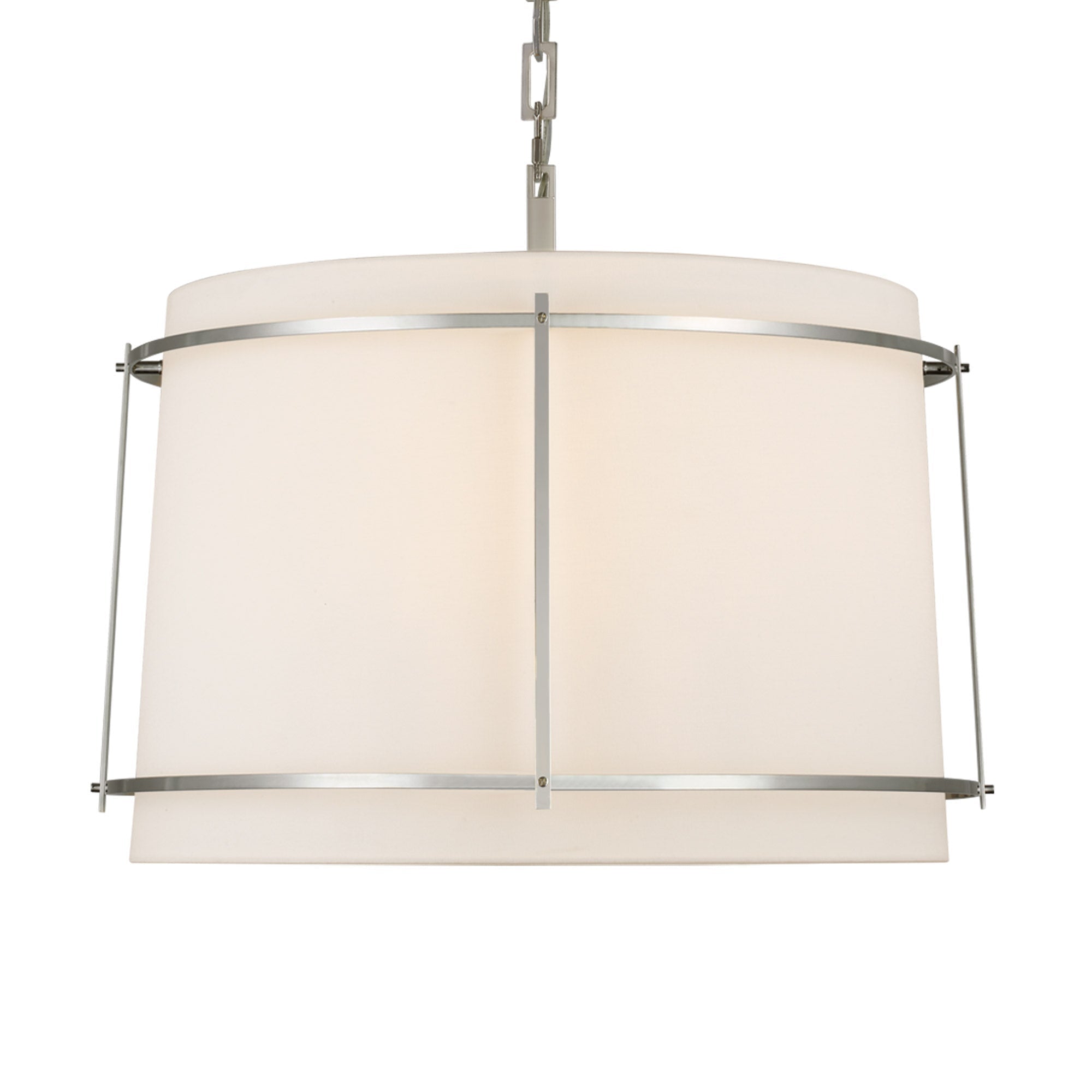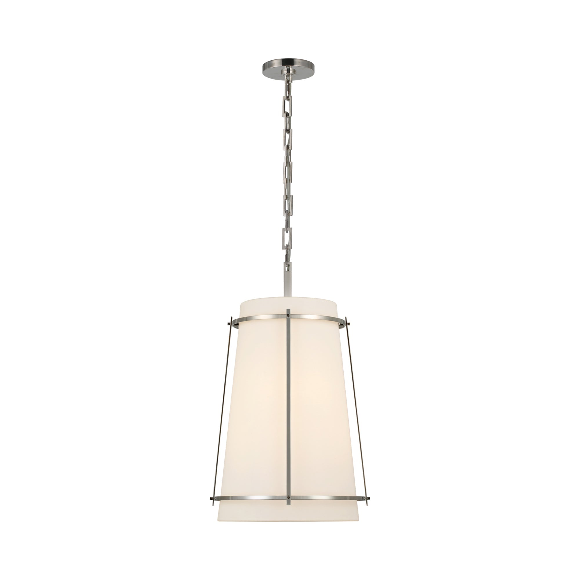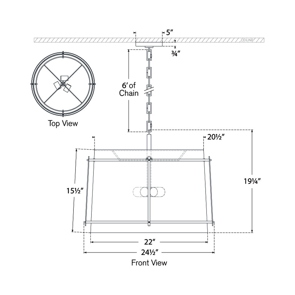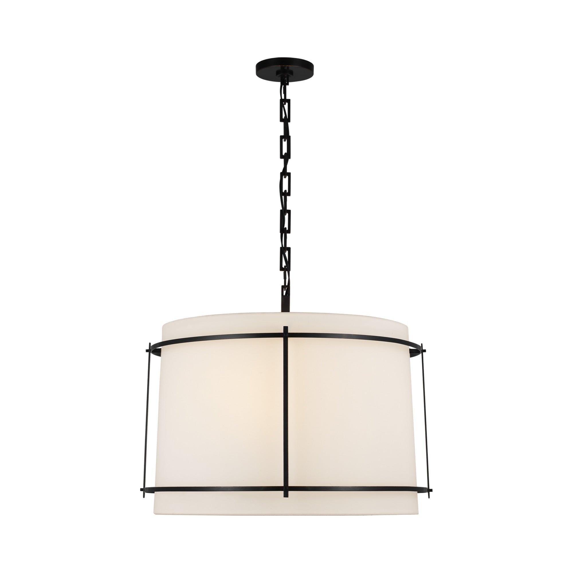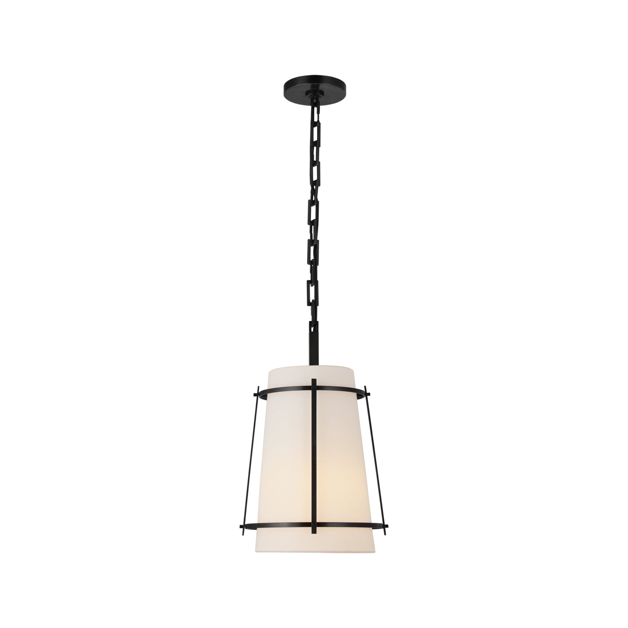 Pairing an industrial style cage and a modern silhouette, the Callaway Pendant Light from Visual Comfort Signature is an enchanting addition. The contrast created with a linen shade and metal cage delivers understated dimensionality over an entry or dining table.