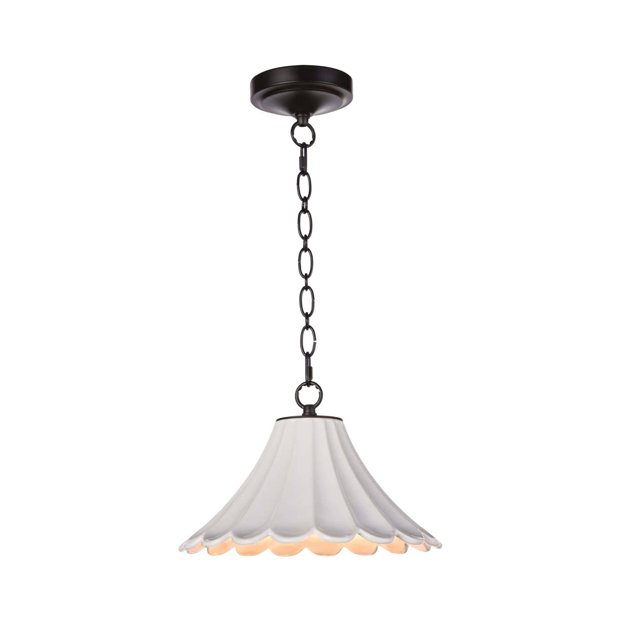 Juxtapositional motif choice results in a delightful light fixture as the Cally Pendant Light from Regina Andrew showcases timeless ceramic construction. Its fluted shade features soft white ceramic, versatile and inspired. A style change comes in rugged black finish metal accents, including a suspension chain adding character.