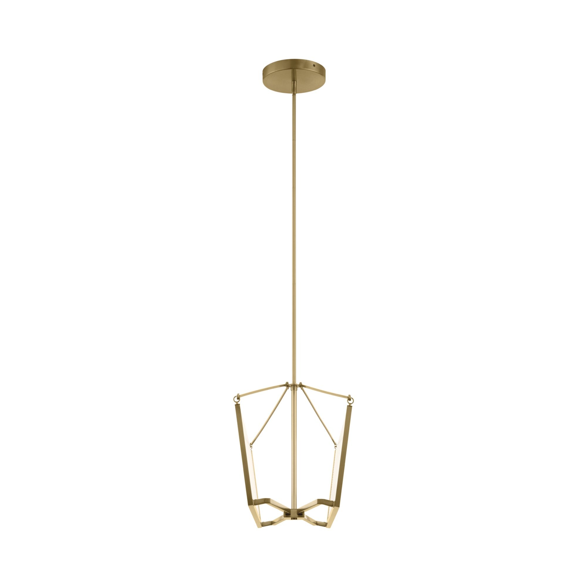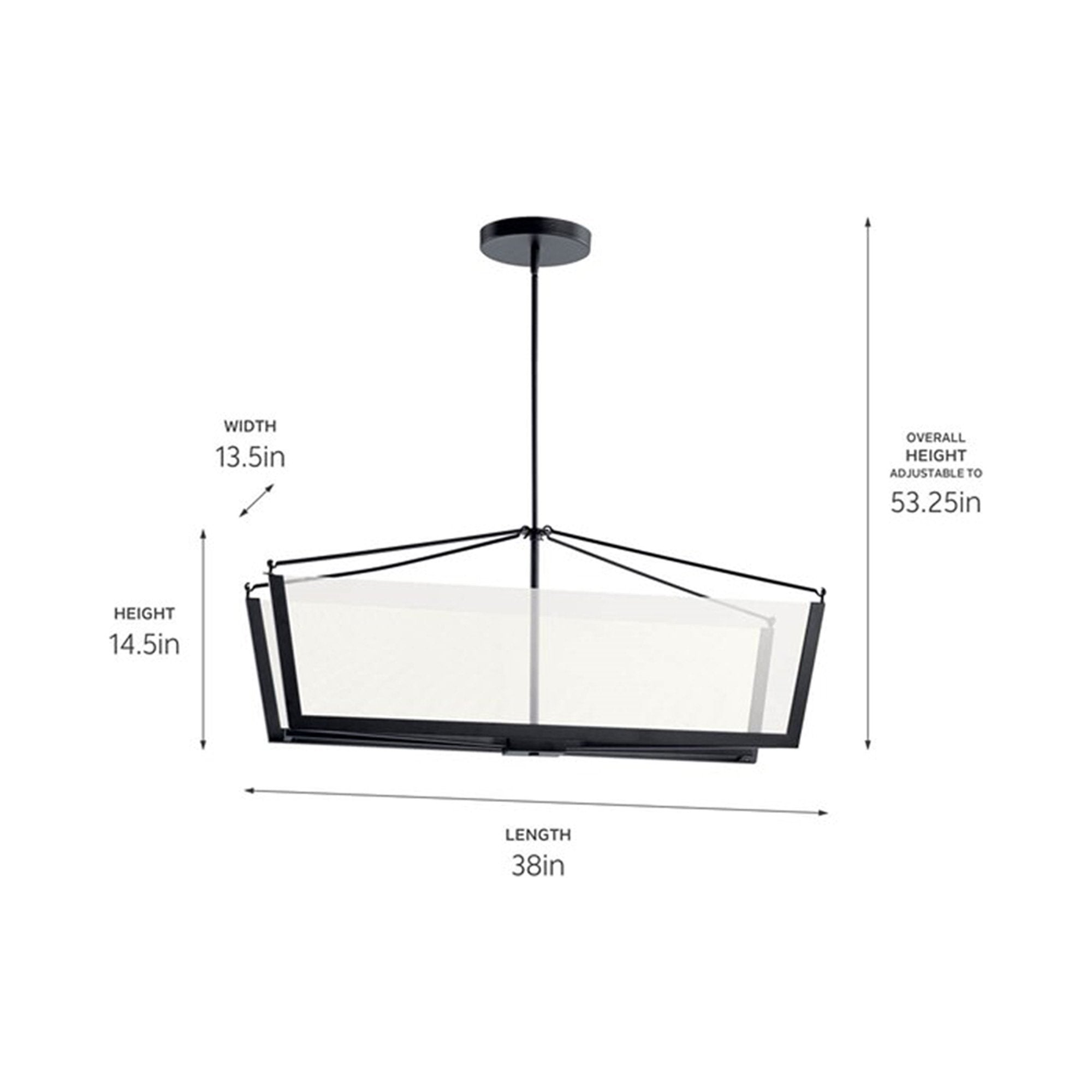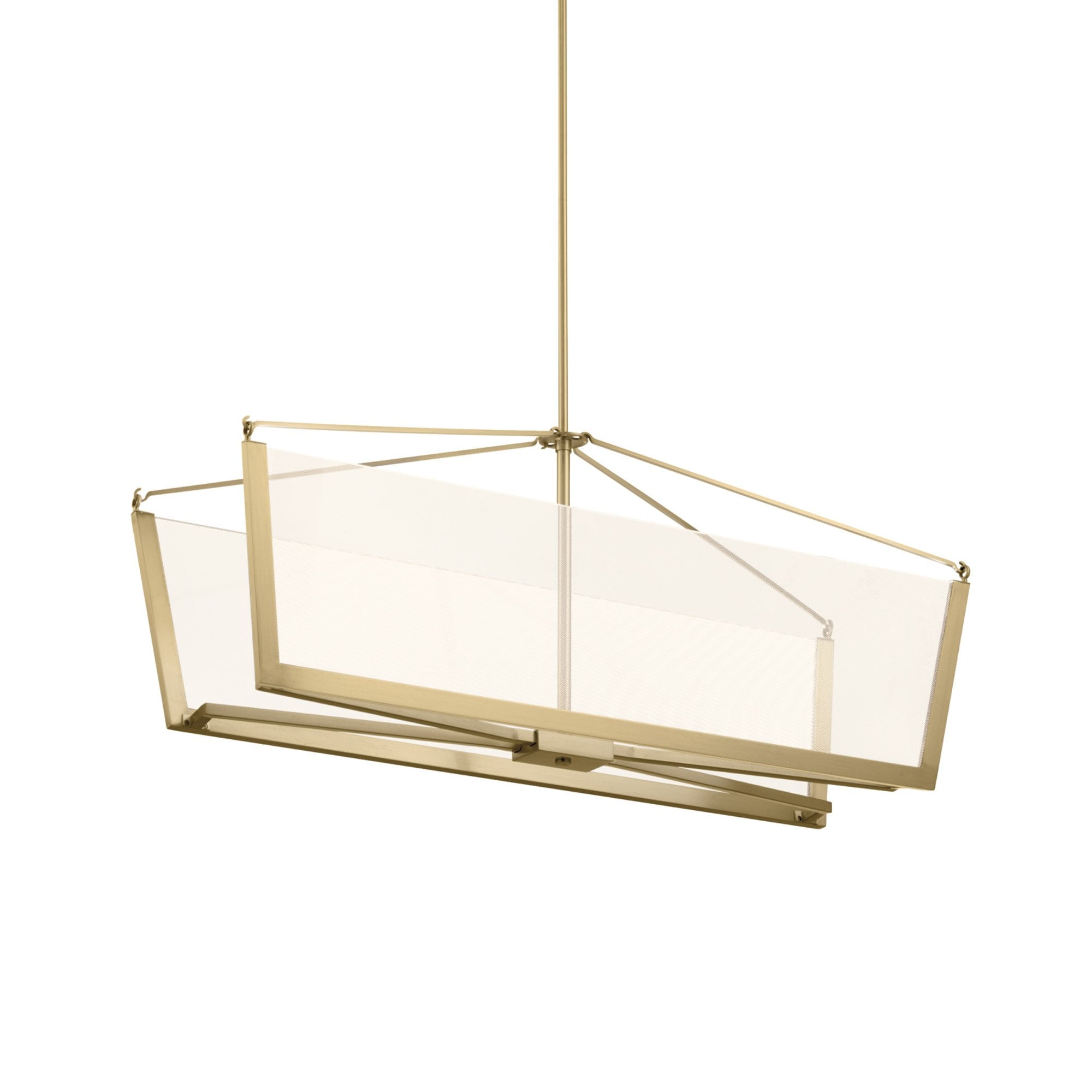 The Calters LED Linear Pendant Light features a tapered lantern design with Black and Champagne Gold finishes and clear acrylic light-guide panels fearing a dotted pattern for a classic, modern design.