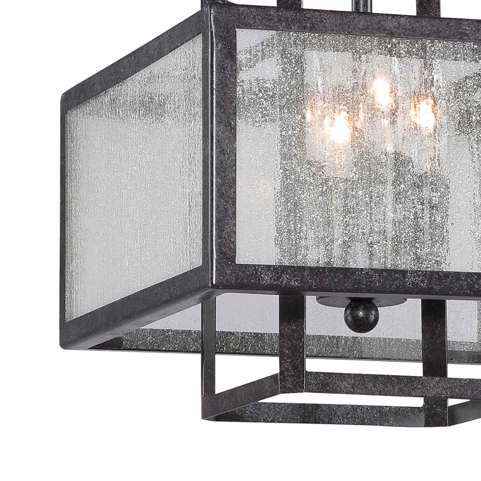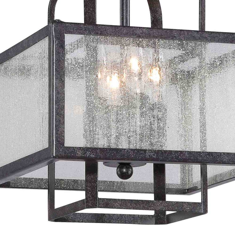 Dramatic aged charcoal finish metal borrows a layered design to create intrigue as the Camden Semi Flush Mount Ceiling Light from Minka Lavery turns up the dial on style. Inspire a reading corner or nook with this timeless pendant featuring openwork metal with a boxy outer shade adding clear seeded glass for a soft inspiration.