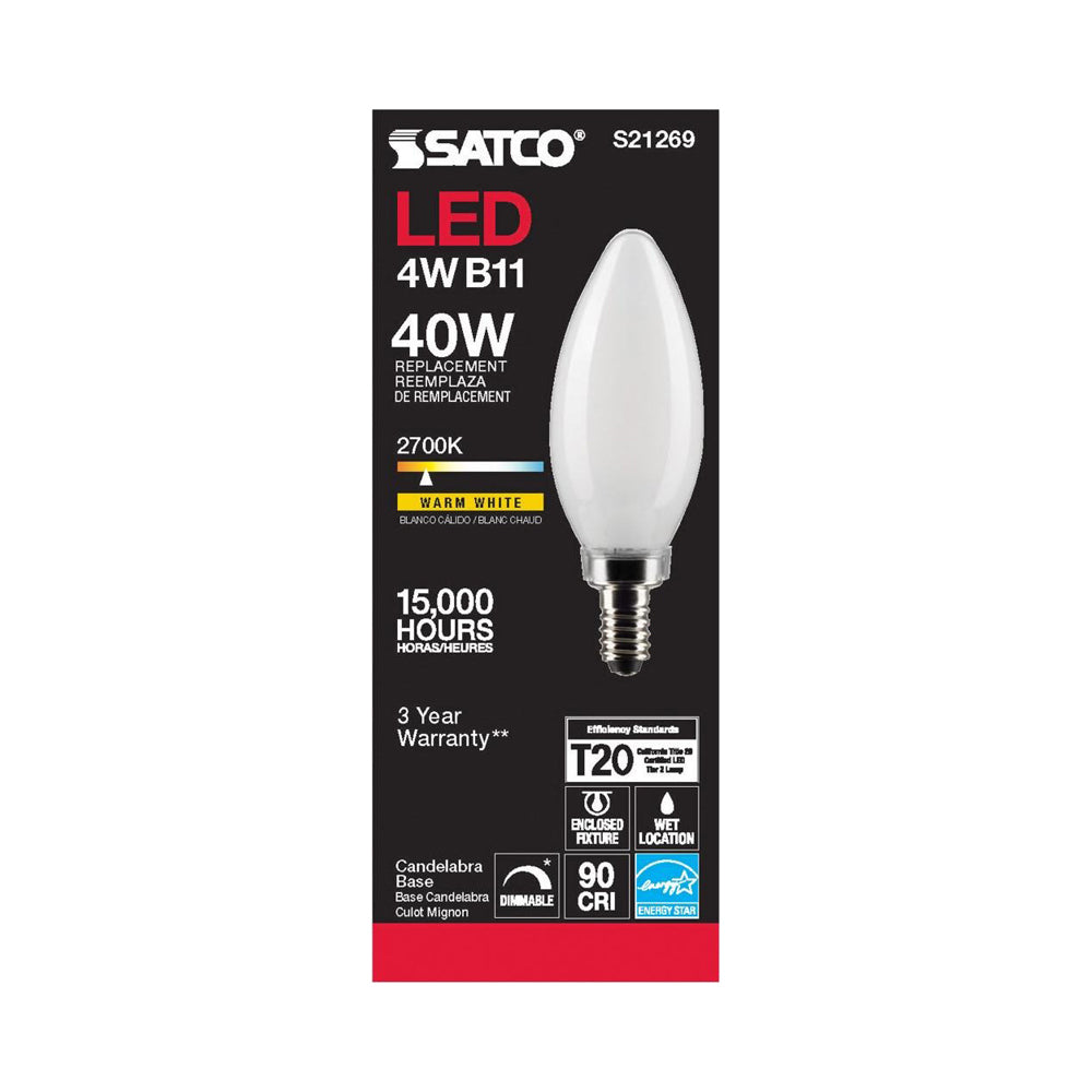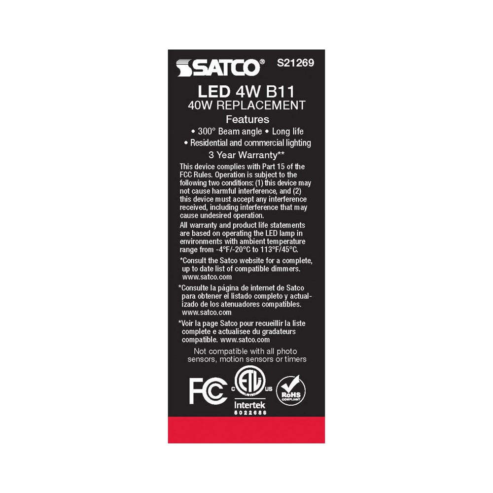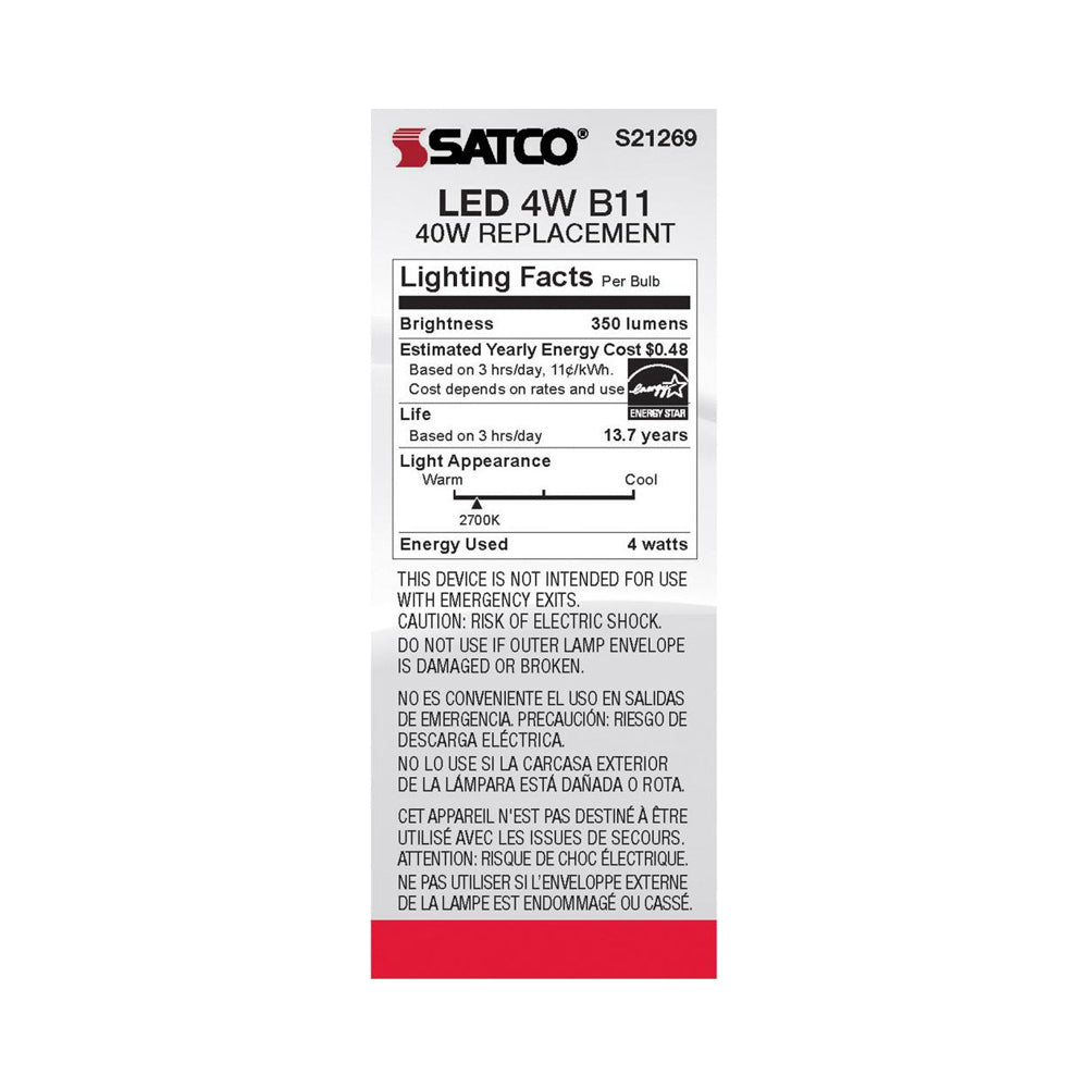 - 1 X 4W 120V E12(candelabra base) B11 LED lamp; 350 lumens, 90 CRI, 2700K