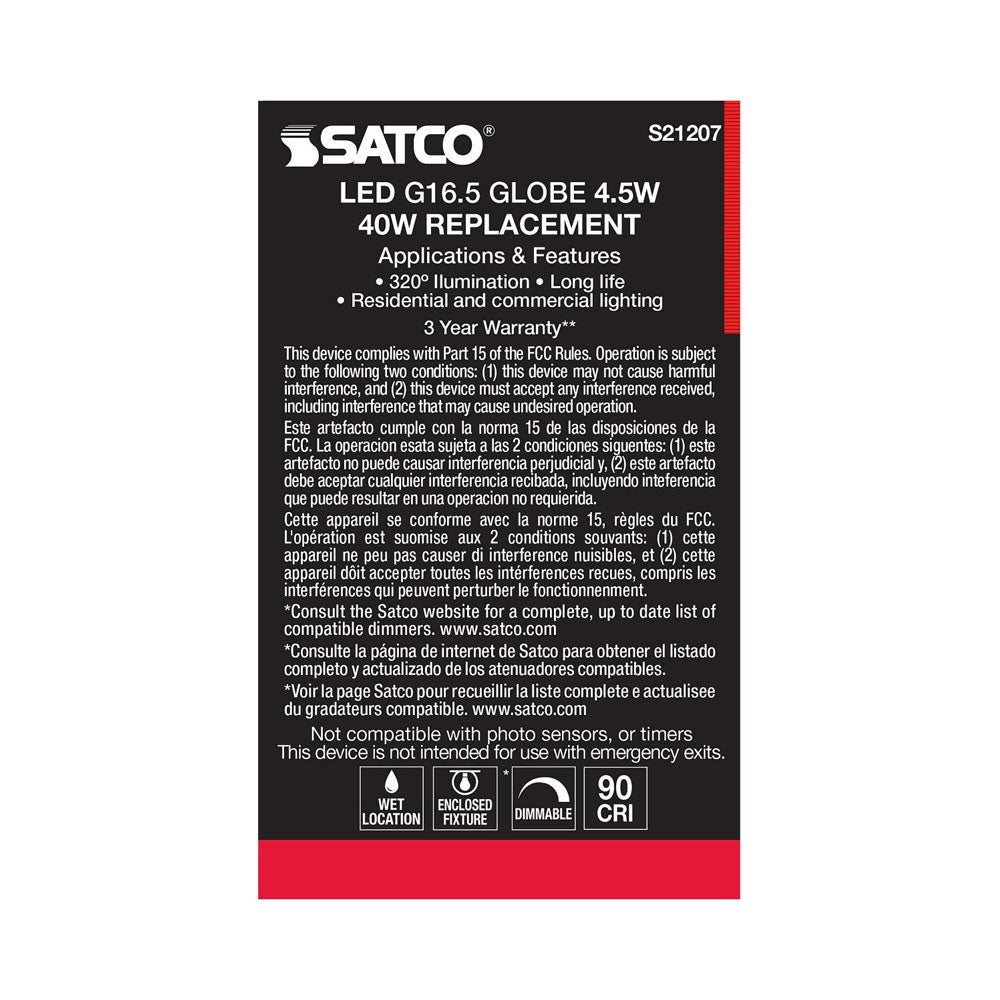 - 1 X 4.5W 120V E12(candelabra base) G16.5 LED lamp; 350 lumens, 90 CRI, 2700K