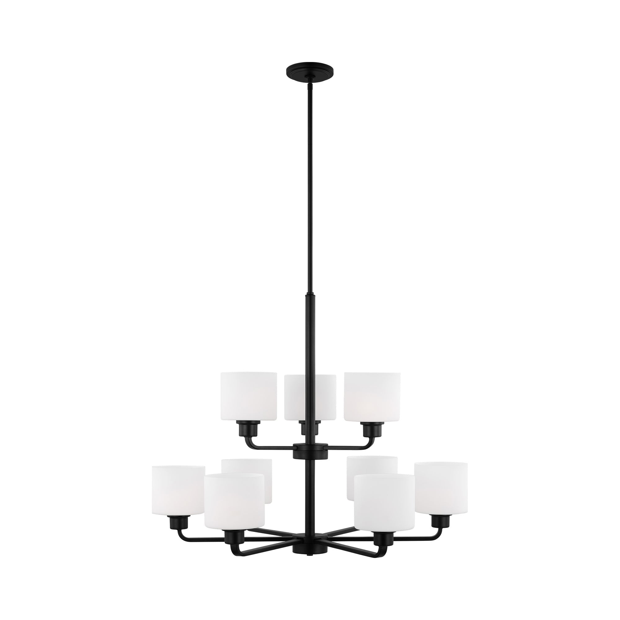 Sleek visual impact creates a signature statement in a modern space with the Canfield Multi Tier Chandelier from Generation Lighting. Embrace the geometric silhouette of layered tiers showcasing delicate cylinder shades mounted to metal bases stemming from a matching metal down rod, adding a uniform feel of low-profile artistry perfect for a dining or living space.