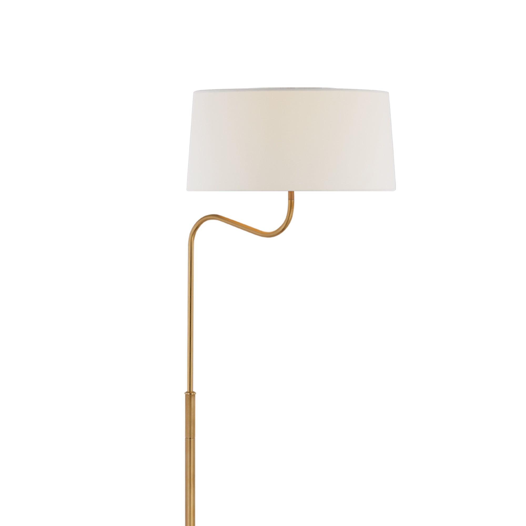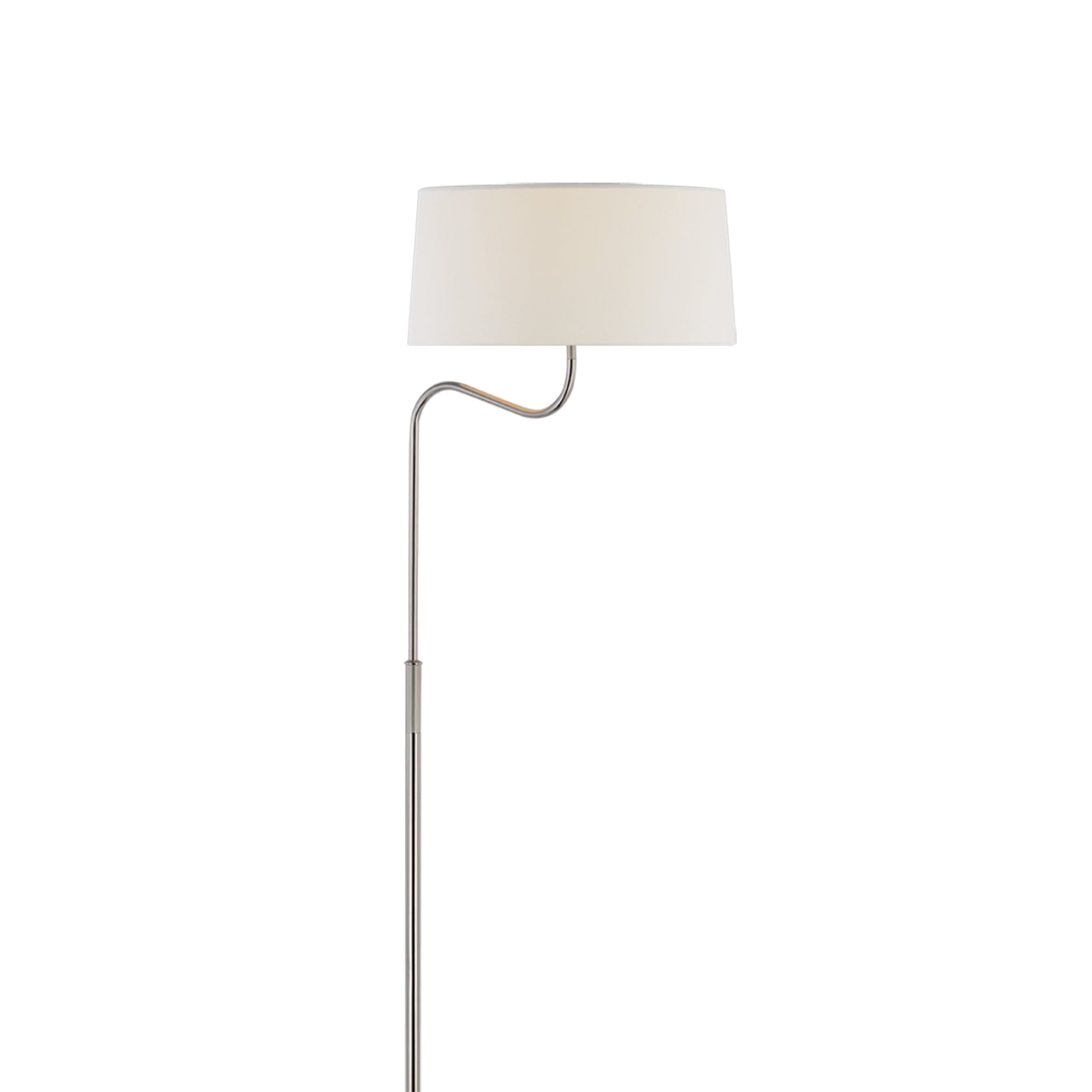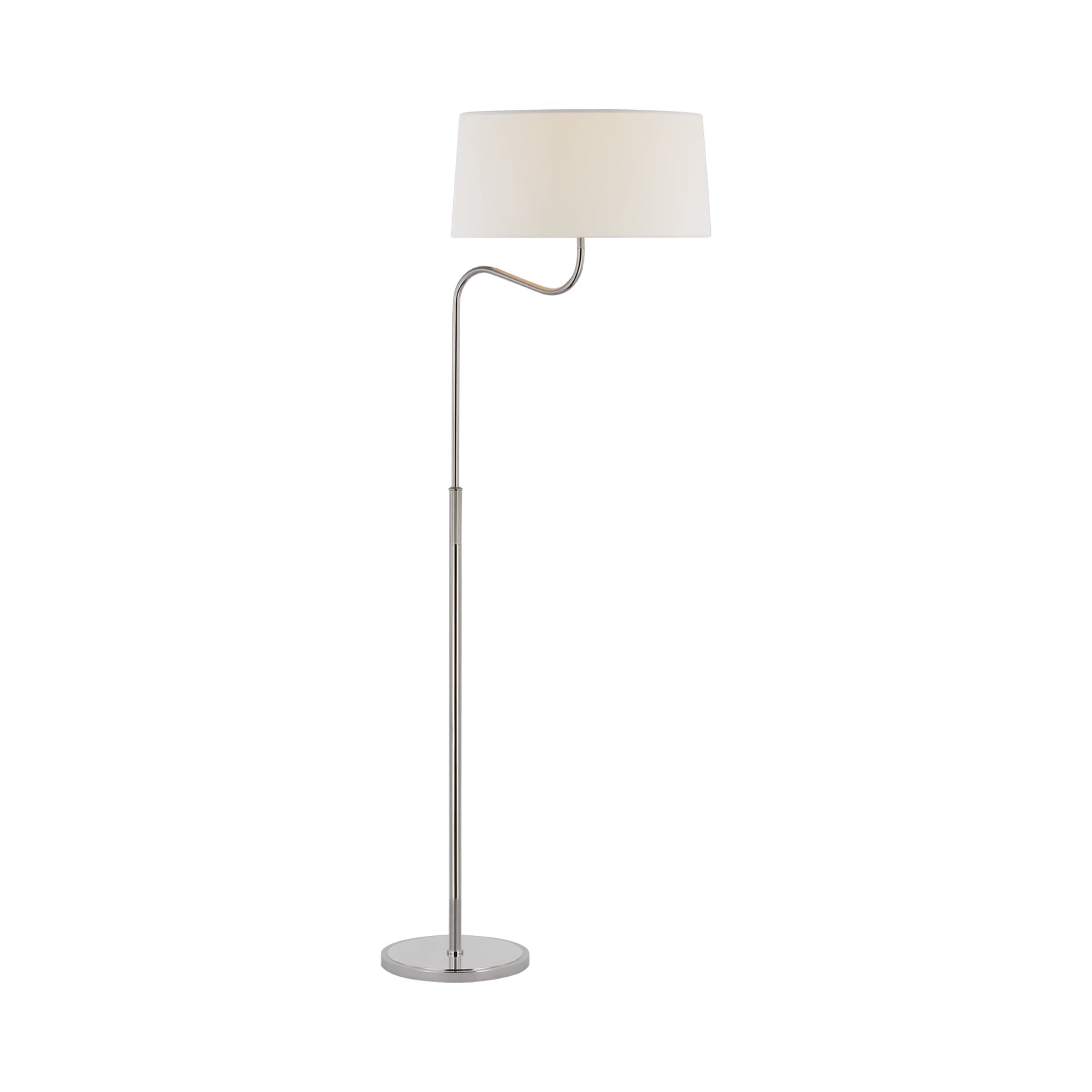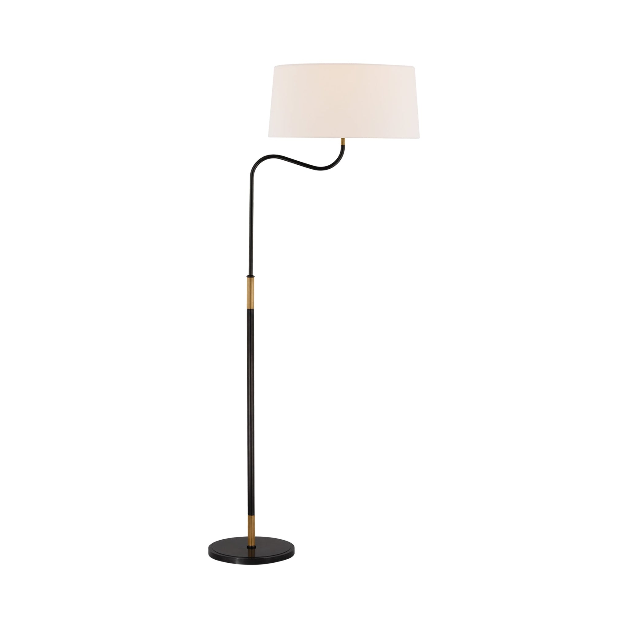 The Canto Floor Lamp from Visual Comfort Signature moves sleek to sensational in one hooked curve and a tempting blend of finishes. Metal framing extends upward to a gracefully curved arm, presenting enticing asymmetry as its creamy linen shade offers a softening look. This floor lamp adjusts to accommodate height requirements.