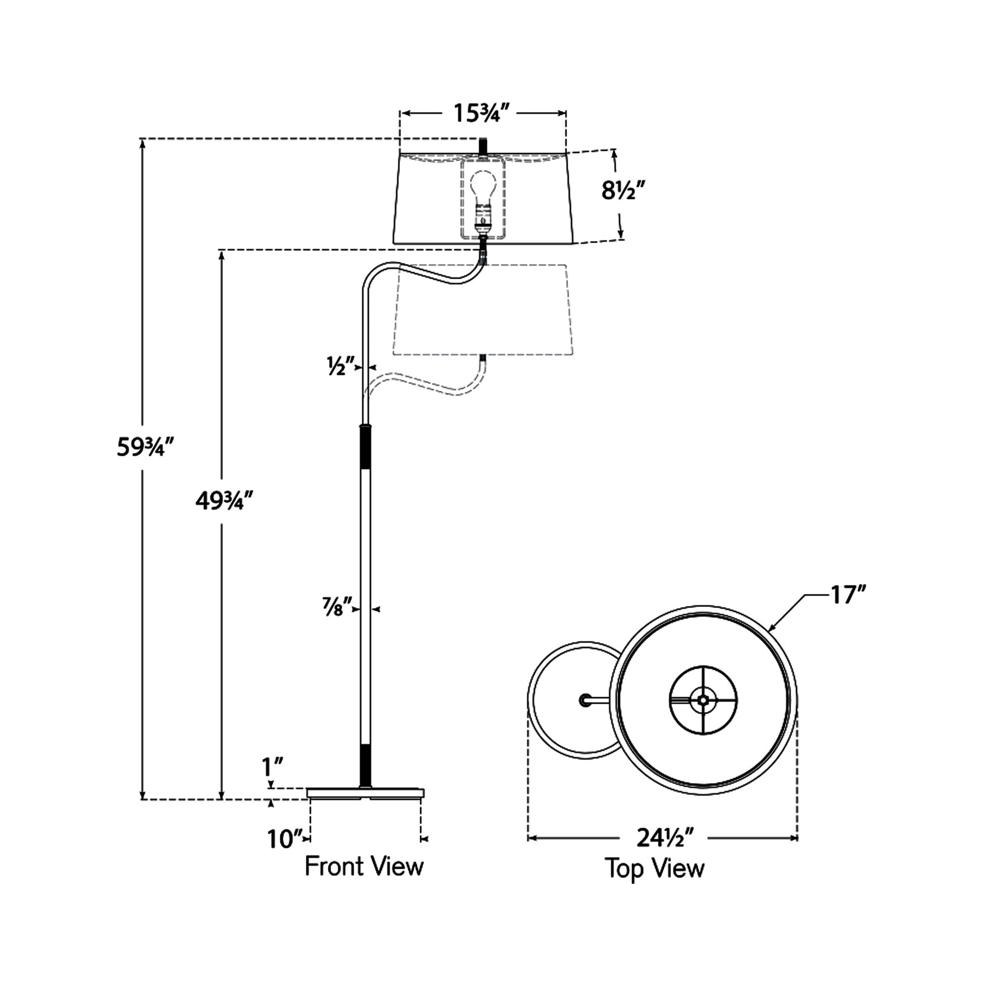 - Dimensions: 17"D X 49.75" - 59.75"H; 144" Cord Length