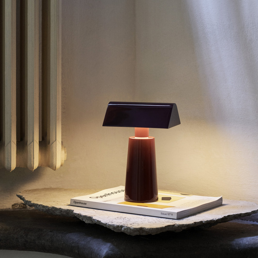 Visual impact is clear and dramatic as the Caret MF1 Table Lamp from &Tradition makes itself a staple in a casual setting. This portable lamp travels from living room to bedroom to workspace, shedding soft lighting through a lacquered steel shade. A glossy lacquered body delivers a chic elegance to a retro-style light.