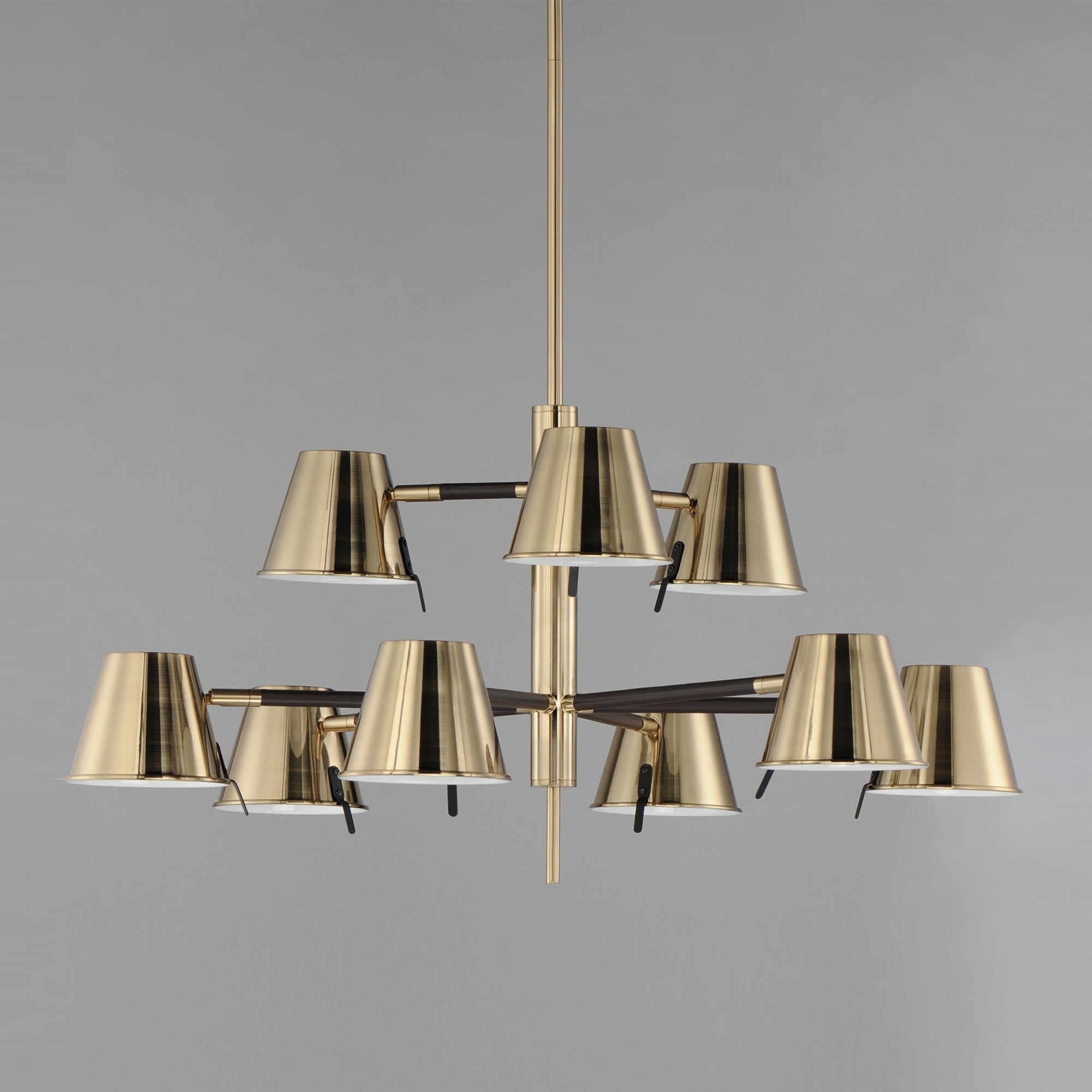 The extraordinary gleam of shining metal captures ambient light and magnifies its radiance, creating a stylish and compelling attitude ideal for a living or dining space. Choose the Carlo LED Chandelier from Maxim Lighting and its cluster of tapered metal drum shades placed carefully to form a web of illumination. Frosted glass diffusers on each shade emit measured lighting that suits the occasion.