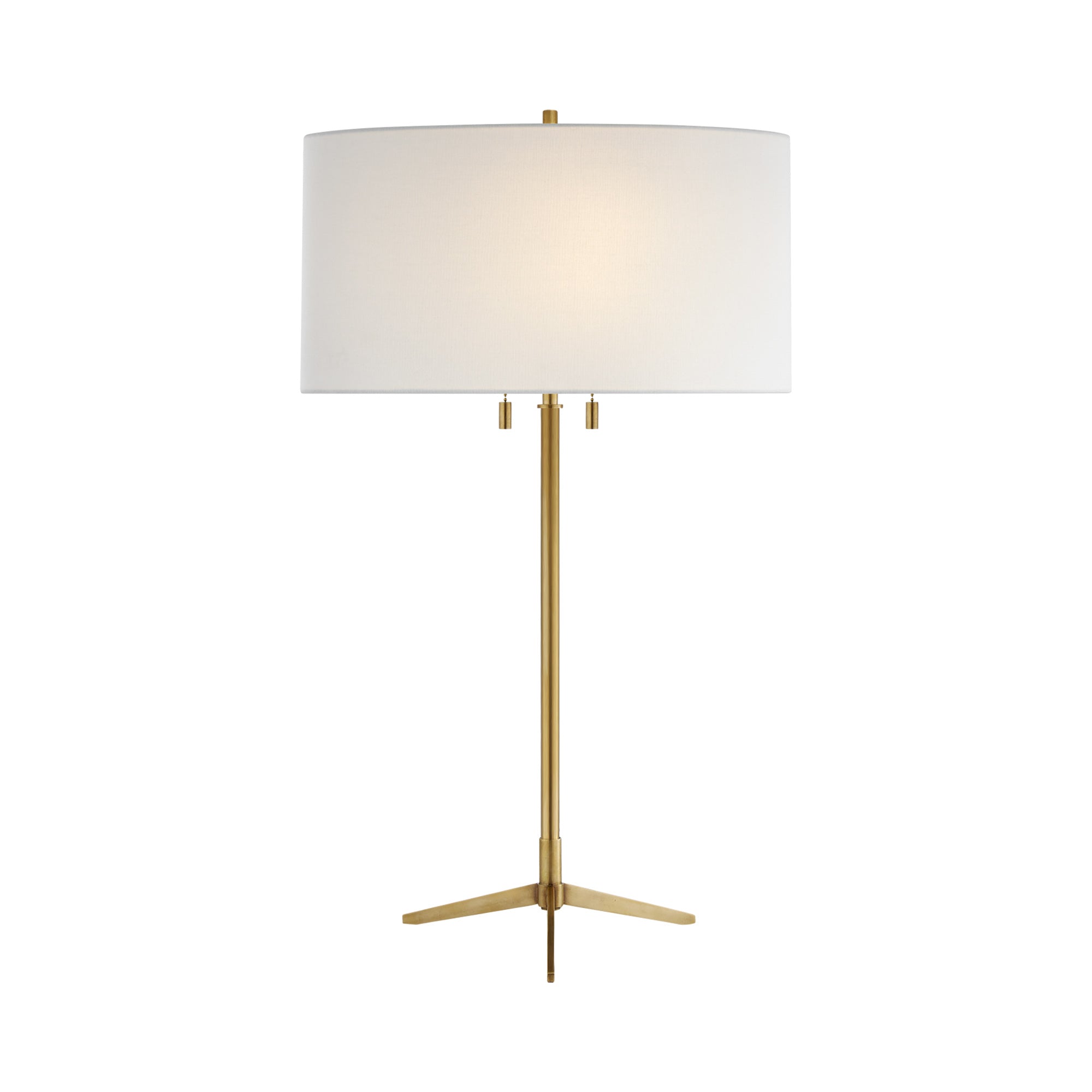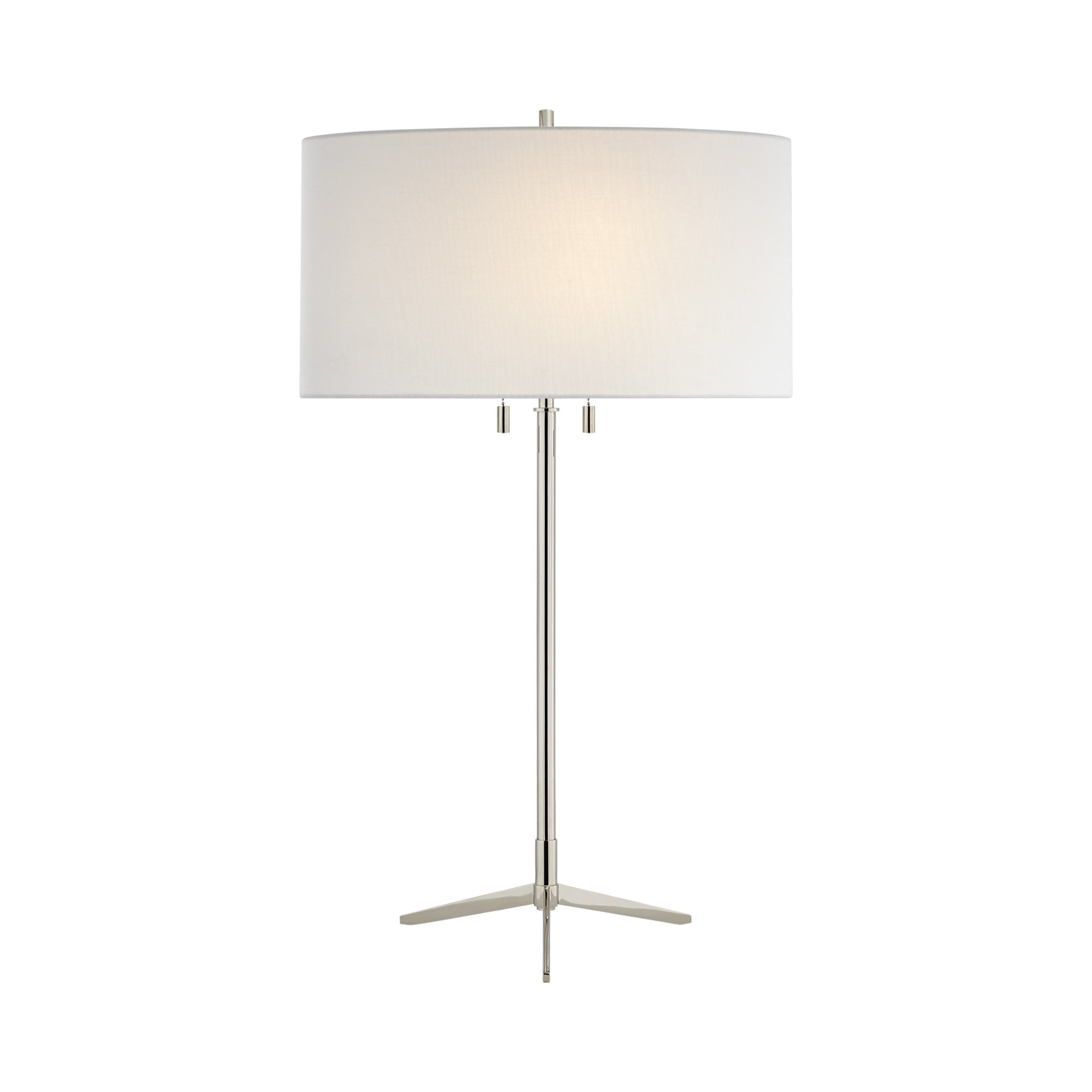 The Caron Table Lamp from Visual Comfort Signature reignites a thirst for uncomplicated Mid-Century Modern style. Its slender body and tripod base deliver retro influence to a lamp that makes itself at home in a living room, foyer, or bedroom. A double-pull chain activates two lights, infusing soft illumination through a tempting drum shade.