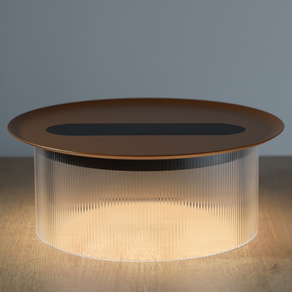 Delicate fluting creates a warm, inviting glow for the Carousel LED Table Lamp from Pablo. Impeccably designed for a sleek, modern interior, the lamp is a perfect addition to minimalist decor as its simplified silhouette maintains minimalist allure. Built-in tech features include wireless charging and a USB-C port, perfect for virtually any room in the home.